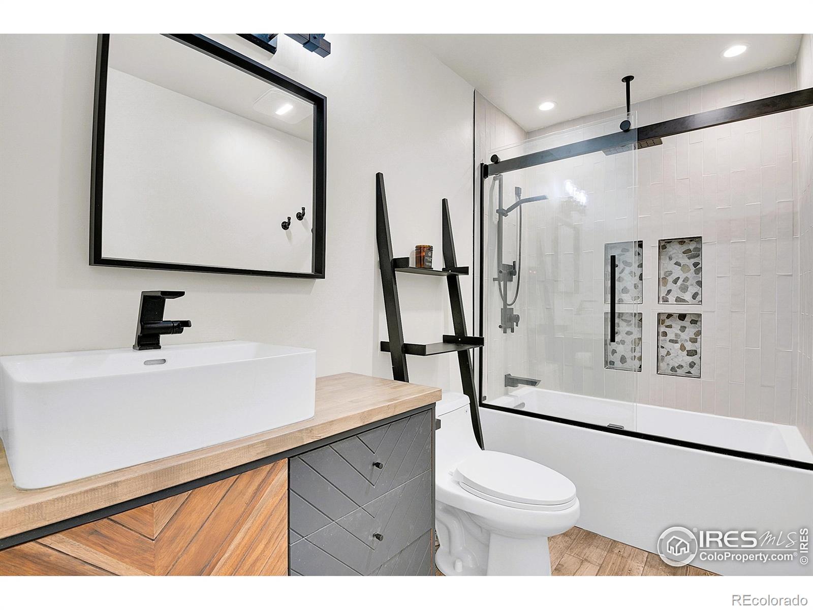 Nestled among aspens and evergreens, this beautifully updated condo offers modern comfort with a true mountain feel. Located in a peaceful Evergreen setting, Unit 305 combines stylish interior finishes, thoughtful updates, and serene outdoor spaces making the condo perfect as a full-time residence or mountain retreat. The open-concept kitchen features dark sage cabinetry, stainless steel appliances, a smooth cooktop range, built-in microwave, and clean quartz countertops, flowing seamlessly into the living area for easy entertaining. Contemporary finishes are balanced by warm wood tones, creating a welcoming yet refined atmosphere. The spacious bedroom is a calming retreat with ample natural light, rich wood accents, and generous storage, including a large closet area. The remodeled bathroom showcases a modern vanity with vessel sink, designer lighting, and a glass-enclosed tub/shower with stylish tile and built-in niches. Step outside to your private covered balcony and enjoy peaceful forest views-an ideal spot for morning coffee or unwinding after a day in the mountains. The surrounding landscape offers privacy, mature trees, and a true sense of tranquility. Additional highlights include durable flooring throughout, updated lighting, tasteful decor, and a well-maintained building set against a stunning Evergreen backdrop. Conveniently located near hiking trails, downtown Evergreen, dining, shopping, and easy access to Denver, this condo delivers the perfect blend of mountain living and modern convenience. Experience comfortable, low maintenance living in one of Evergreen's most desirable settings. Reserved underground parking space plus extra parking space along the roadway wall.