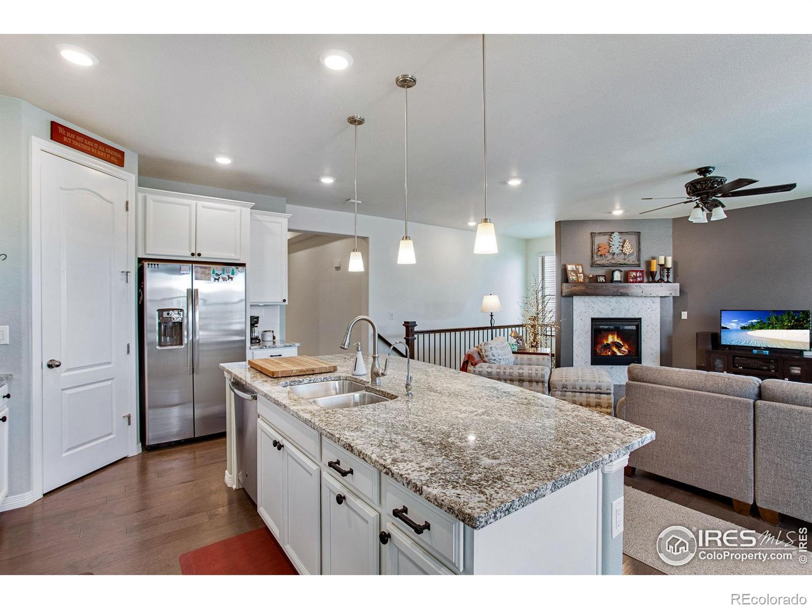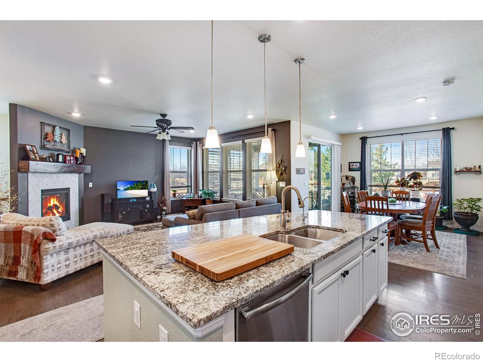 This beautifully cared-for, one-owner ranch-style home offers 3 bedrooms, 2 bathrooms, open-concept living, and an attached garage, thoughtfully designed for comfortable everyday living. The home has been meticulously maintained over the years, reflecting consistent care and attention to detail throughout. Luxury vinyl plank flooring enhances the main living areas, while tile in all wet areas adds both durability and style.The inviting kitchen features granite countertops, stainless steel appliances, ample cabinetry, and generous workspace, making it ideal for both daily use and entertaining. A cozy fireplace anchors the living area, creating a warm and inviting atmosphere. The spacious primary suite provides a private retreat with an en-suite bathroom and walk-in closet, while the additional bedrooms are well-sized and versatile for guests, a home office, or hobbies. An energy-efficient furnace and central air keep the home comfortable and the many windows allow natural light to fill the space, creating a bright and welcoming feel. Step outside to enjoy the covered patio-perfect for relaxing or entertaining! A new roof installed in 2023 adds peace of mind. Close to shopping, dining, trails and parks! Easy access to I25, Hwy 119, Hwy 287 and Hwy 66!