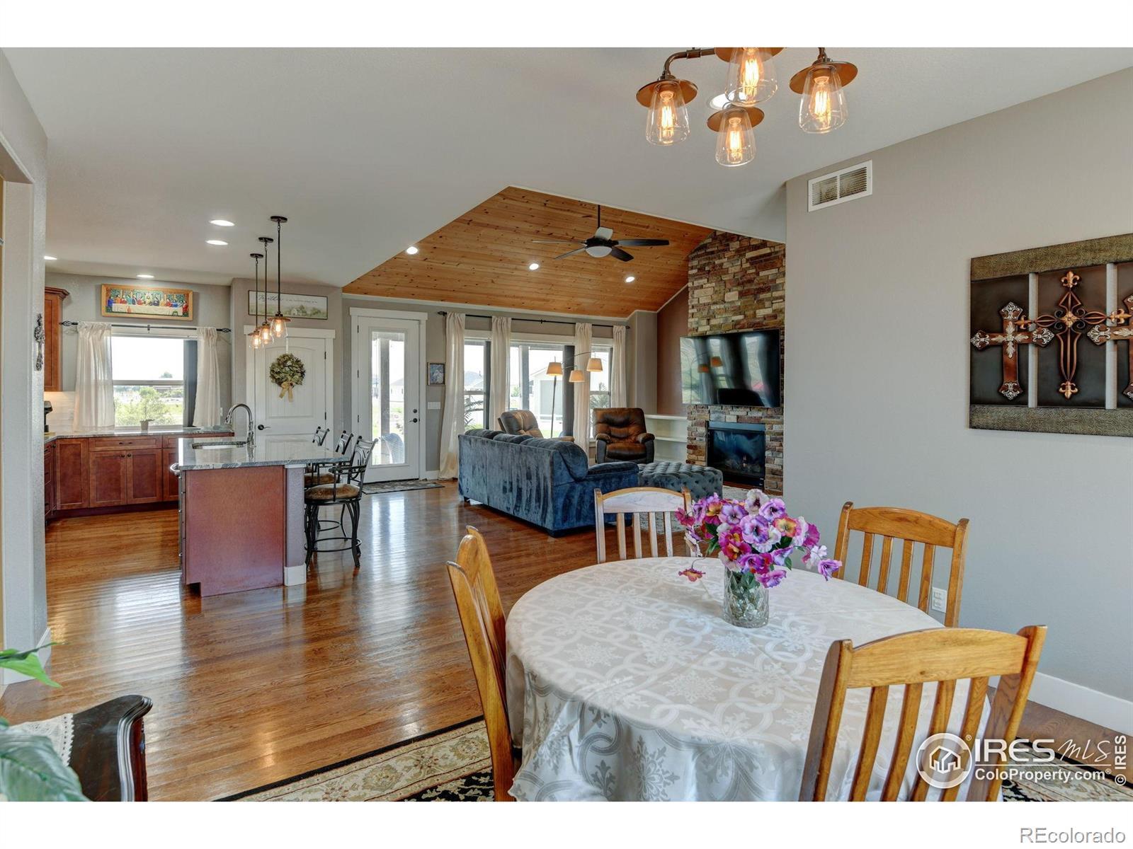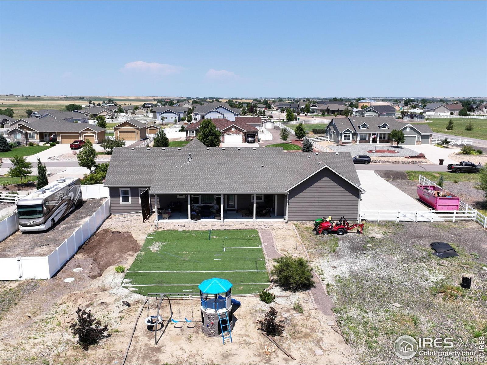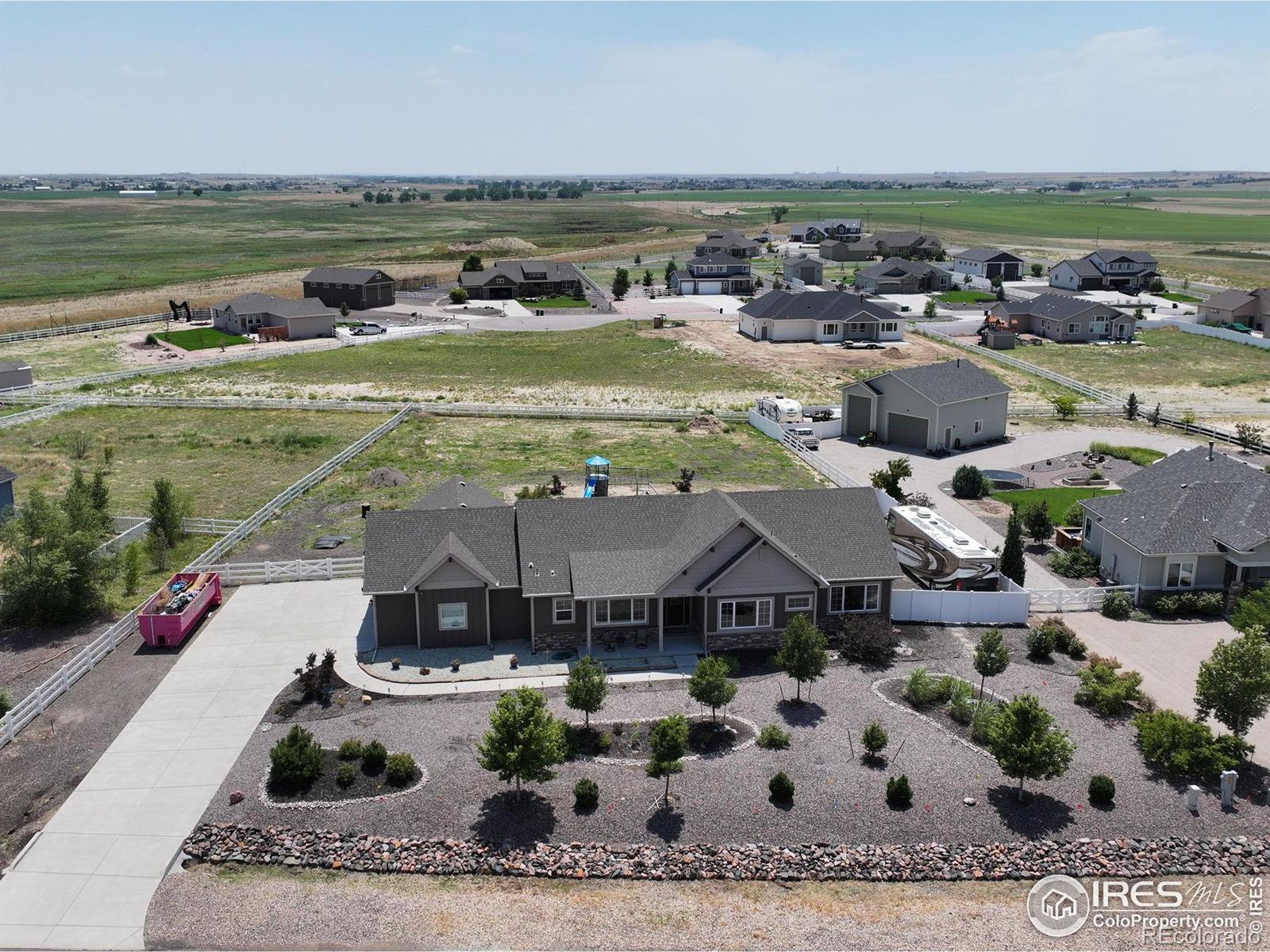 Box Elder Creek stunning ranch-style home nestled on a sprawling acre! As you step inside, natural light floods the great floor plan!! Elegant entry way! Entertaining with a spacious living room, Custom stone gas fireplace, vaulted ceilings, open & bright! Custom design kitchen is a chef's dream...large center island, sleek quartz countertops, 42" cabinetry, soft close drawers/cabinets, large pantry and Stainless steel appliances! Retreat to your main floor primary suite, featuring a spacious walk-in closet and a luxurious 4-piece bath complete with a stunning walk-in shower! 2nd & 3rd Bedrooms have a custom walk-in shower/bath combo w/ jacuzzi features! Farmhouse mudroom! Large laundry room! Beyond the main floor, the unfinished basement presents endless possibilities, offering an abundance of extra living space that doubles the home's square footage! Step outside with views off the back patio, turf grass, covered patio overlooking the vast acre-lot with a ton of potential! RV Corral per HOA guidelines! New Roof! This front yards professionally xeriscaped landscaping! Quick & easy access to Hwy 76 & 85.. minutes to DIA, Barr Lake & Restaurants! This property is Move in ready!