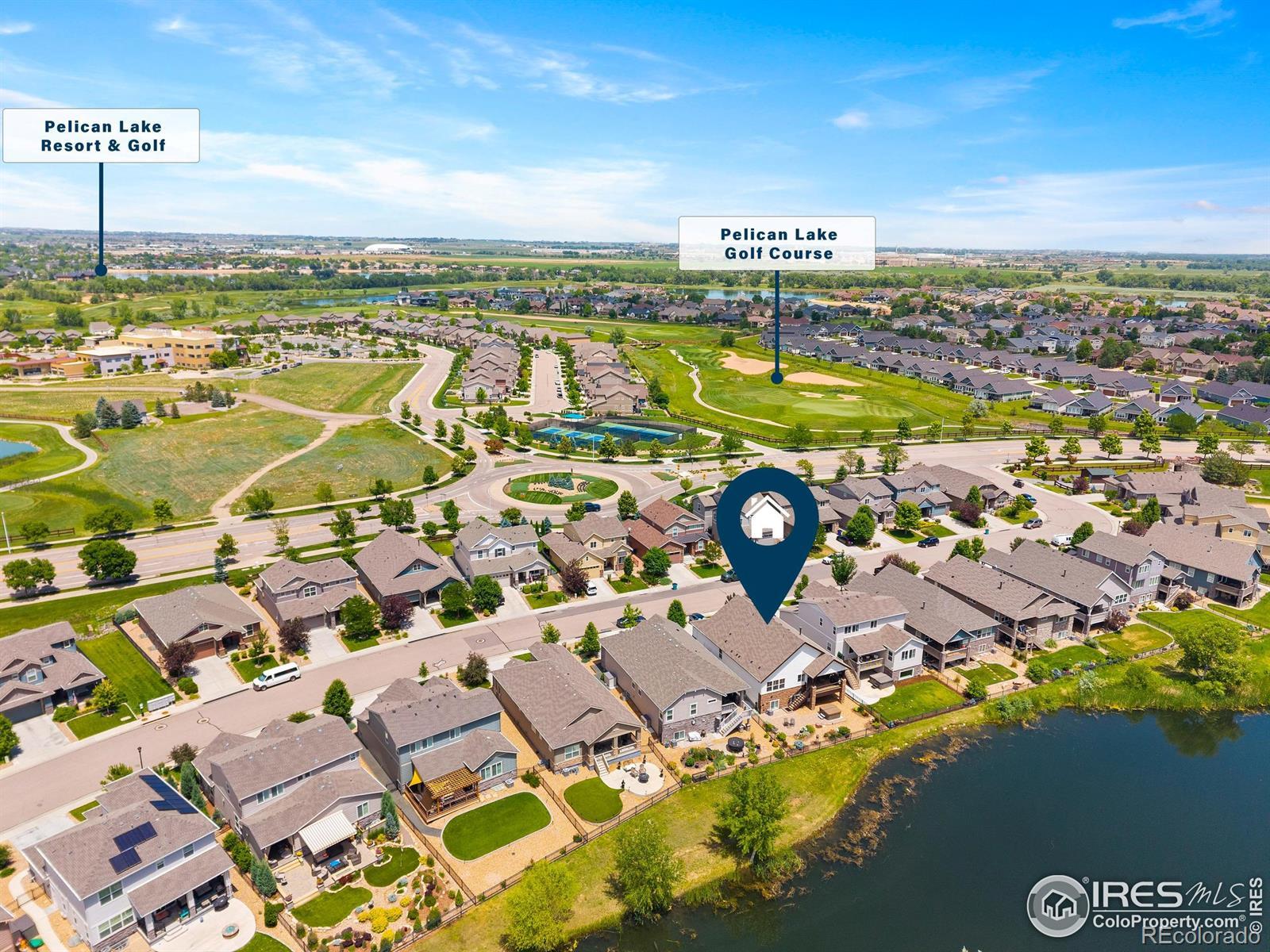 A rare opportunity to experience refined golf course living at Pelican Lakes. This premier golf course property is perfectly situated on a private pond overlooking the 4th hole of the Pelican Falls Course, offering west-facing sunset views and free from errant golf shots. Custom finishes and thoughtful upgrades throughout make this a truly one-of-a-kind residence. The finished mudroom features custom cabinetry, a second pantry, and additional refrigerator. The fully finished basement is ideal for entertaining with a wet bar, wine refrigerator, ice maker, custom shelving, and a "man cave" behind hidden built-in bookshelf door. A large picture window fills the space with natural light and showcases stunning golf course views. The main level includes an office, guest bathroom, eat-in kitchen, spacious living room, and access to the deck overlooking the pond and fairway. Upstairs offers two bedrooms, full bathroom, loft, and a luxury primary suite with oversized shower, dual vanity, walk-in closet, and peaceful wildlife and golf course views.