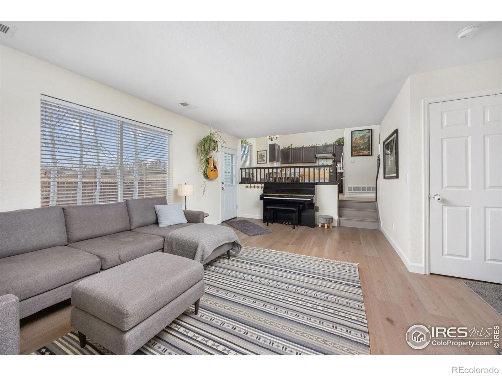 Welcome to this contemporary tri-level home in the highly desirable Wolf Creek neighborhood of Longmont. Featuring 3 beds and 2 baths, this turnkey updated property is ready for its next chapter. Step inside to find engineered hardwood flooring on both the main and lower levels, offering a clean and modern look that's durable and easy to maintain. The kitchen features updated appliances and granite countertops-perfect for cooking, entertaining, or gathering with friends and family. Just off the kitchen you can relax in the spacious living room area. Upstairs you will find the primary bedroom bedroom with en suite 3/4 bath, along with 2 additional bedrooms (one currently used as an office) and another full bathroom. In addition there is an unfinished basement with a bathroom rough in that could be finished for additional living area. Major upgrades: new furnace & A/C (2022) and new roof (2023). Outside, enjoy a spacious backyard with a large patio ideal for summer barbecues, morning coffee, or relaxing evenings. The yard backs to 6+ acres of private open land, creating a rare sense of space and privacy. With its smart layout, updates, and unbeatable Wolf Creek location, this home offers the perfect blend of style, comfort, and convenience. Don't miss the opportunity to make this inviting Longmont home your own!