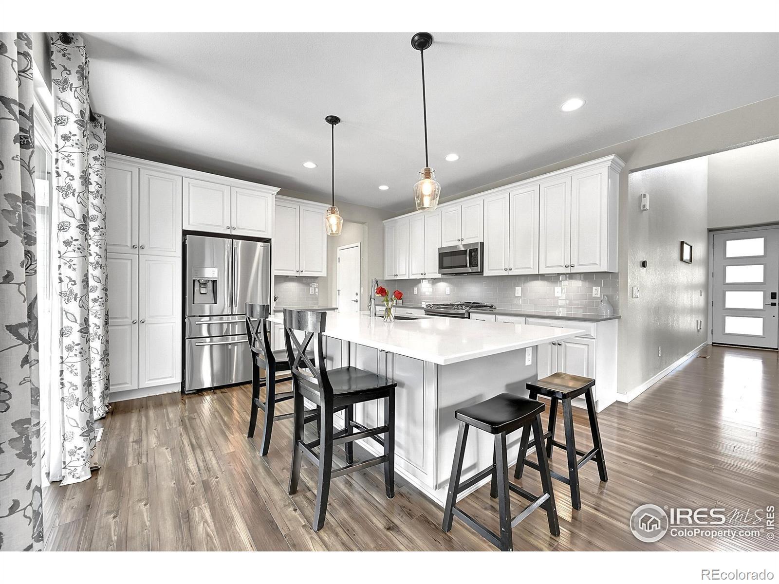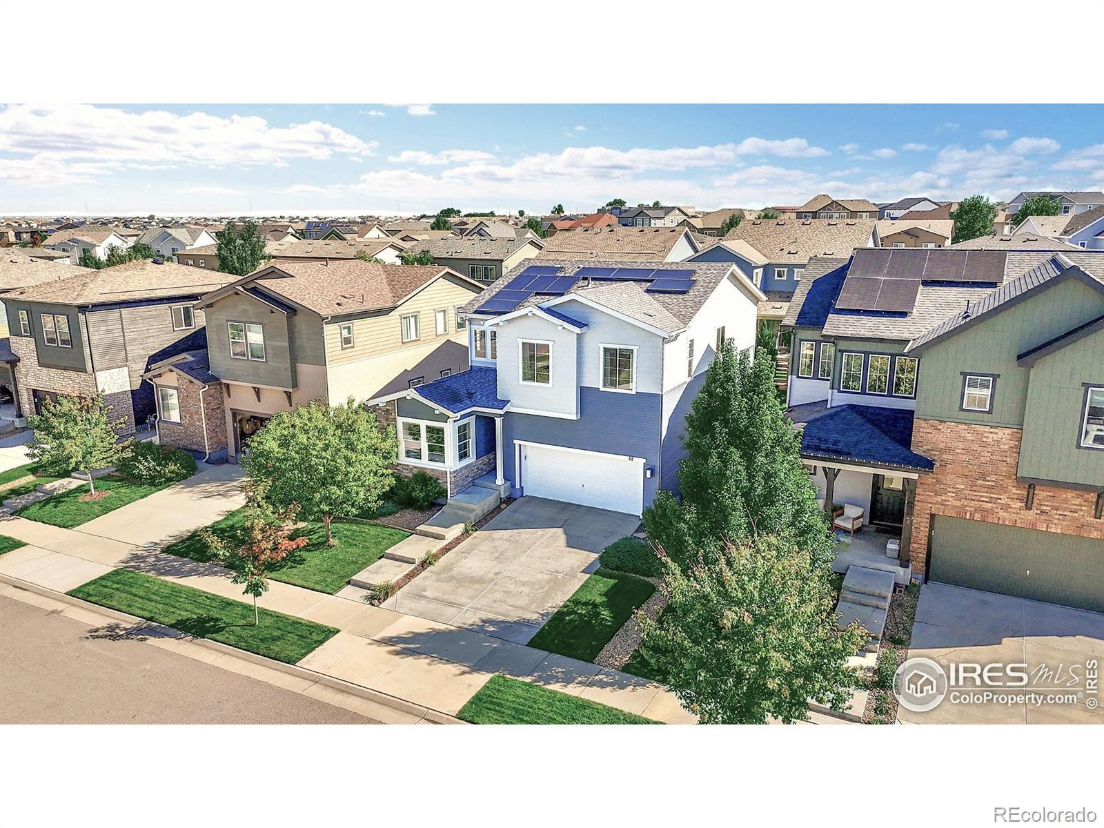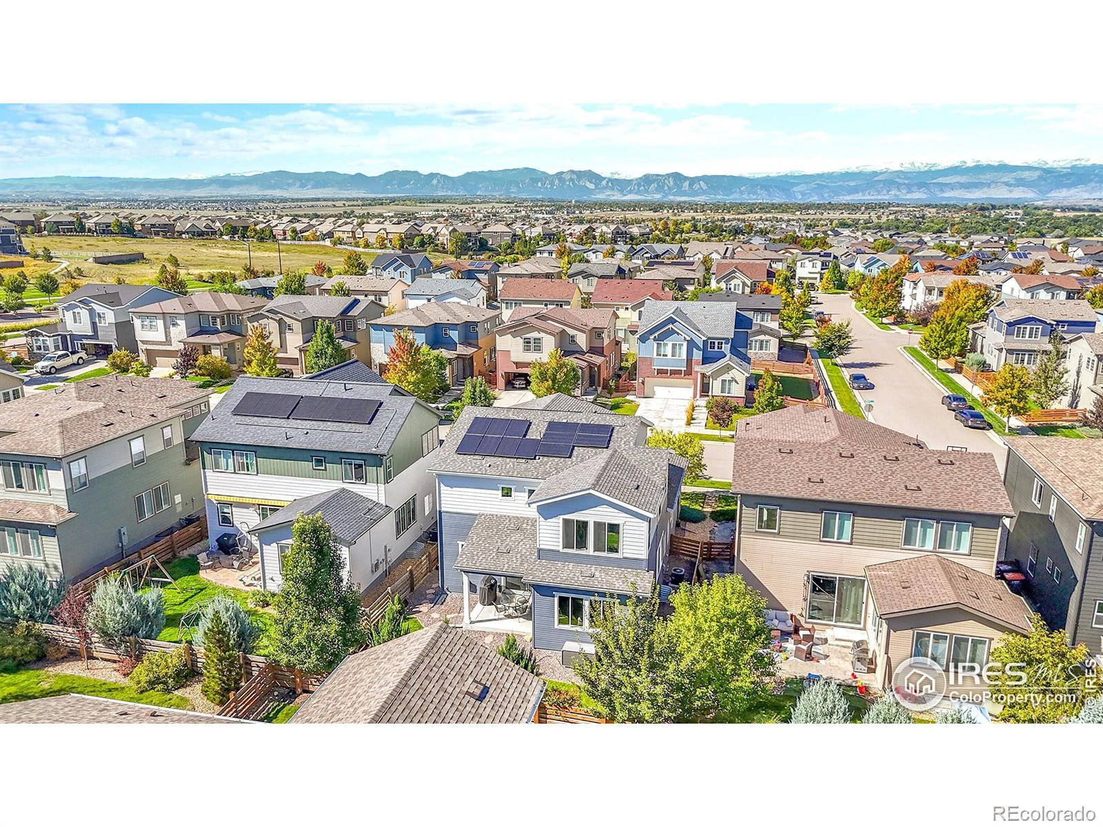 Stunning home located in Colliers Hill - one of Erie's premier master-planned communities! Upon entering, you'll be greeted by a soaring foyer, LVP flooring & a flexible office space ideal for a study or an additional bedroom with the space-saving Murphy bed & closet. There is also an adjacent 3/4 bath that is perfect for when family or guests stay with you. The stunning kitchen is the center of this special home which connects both the dining & family rooms seamlessly - ideal for both everyday living or hosting parties & holiday events. The beautiful kitchen boasts both marble & quartz countertops, 42" Merillat Masterpiece soft-close cabinetry, gas range and an expansive kitchen island with seating for 4. Plus there is a bonus room right off the kitchen that can flex as another office space with a built-in desk or mudroom with bench storage. Upstairs you will find a spacious primary suite with walk-in shower, dual sink vanity & large walk-in closet. There is also a versatile loft perfect for a playroom, open office or cozy movie area. 2 additional secondary bedrooms sharing a full bath & convenient laundry room complete the upper level along with amazing mountain views from the top of the stairs. Out back you will find a fully covered patio with exterior gas line & outdoor ceiling fan. The backyard is highlighted by manicured landscaping & strategically placed evergreens that provide year-round screening. The unfinished basement is perfect for storage or future expansion with egress window wells, 9ft ceilings & rough-in plumbing. unparalleled resort-style amenities, 2 pools, exercise facilities, clubhouses, trails & numerous parks. Easy access to Boulder, Denver, DIA, singletrack & walkable to downtown Erie's shops & restaurants. Home has a fully paid off 8MWh ION Solar System average monthly bills at only $63/mo. New Class 4 Roof & Gutters (2023) New Duration Exterior Paint (2023), New Front Door (2025). Hurry!