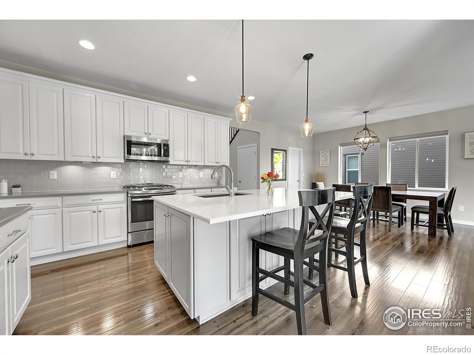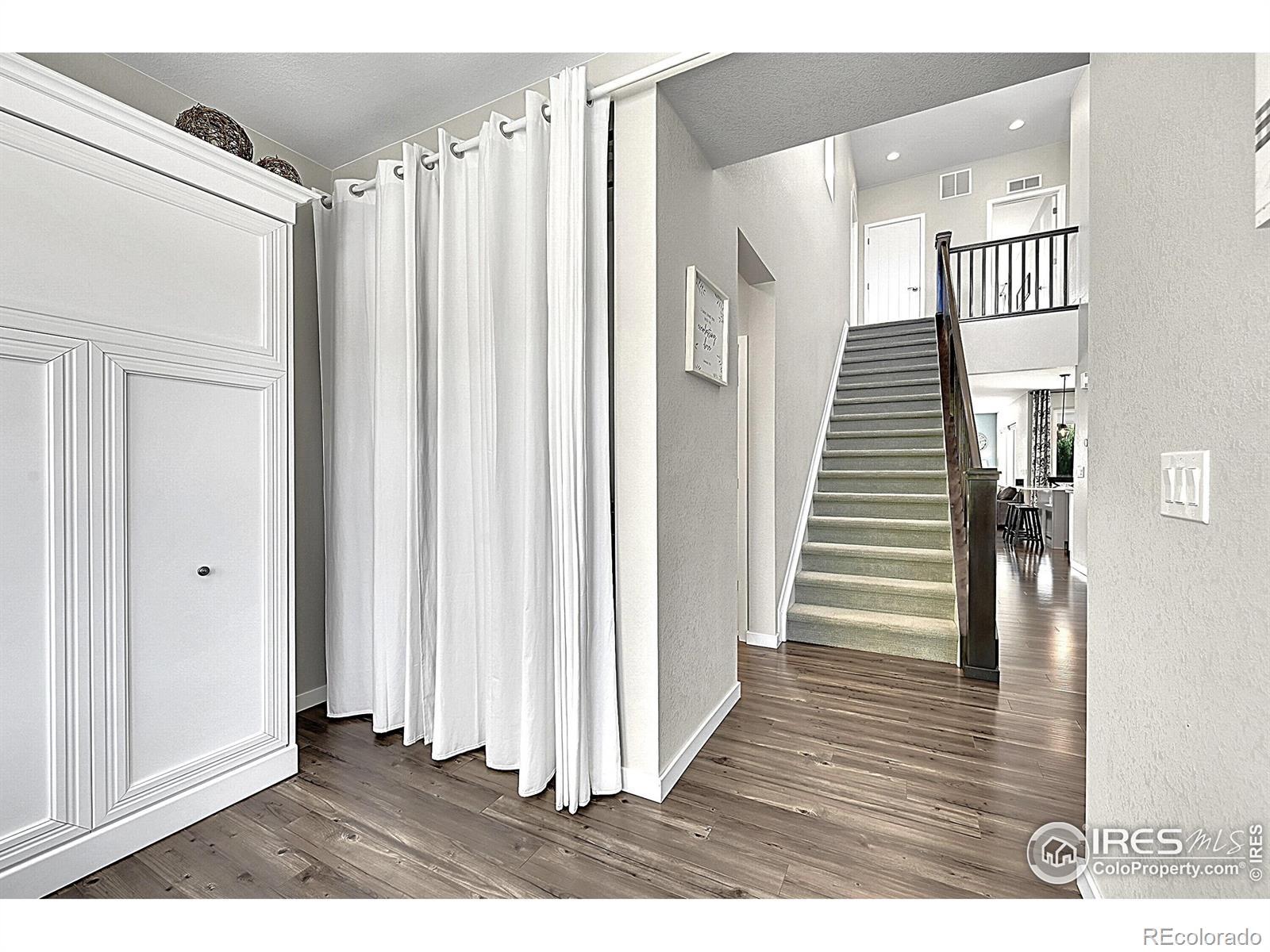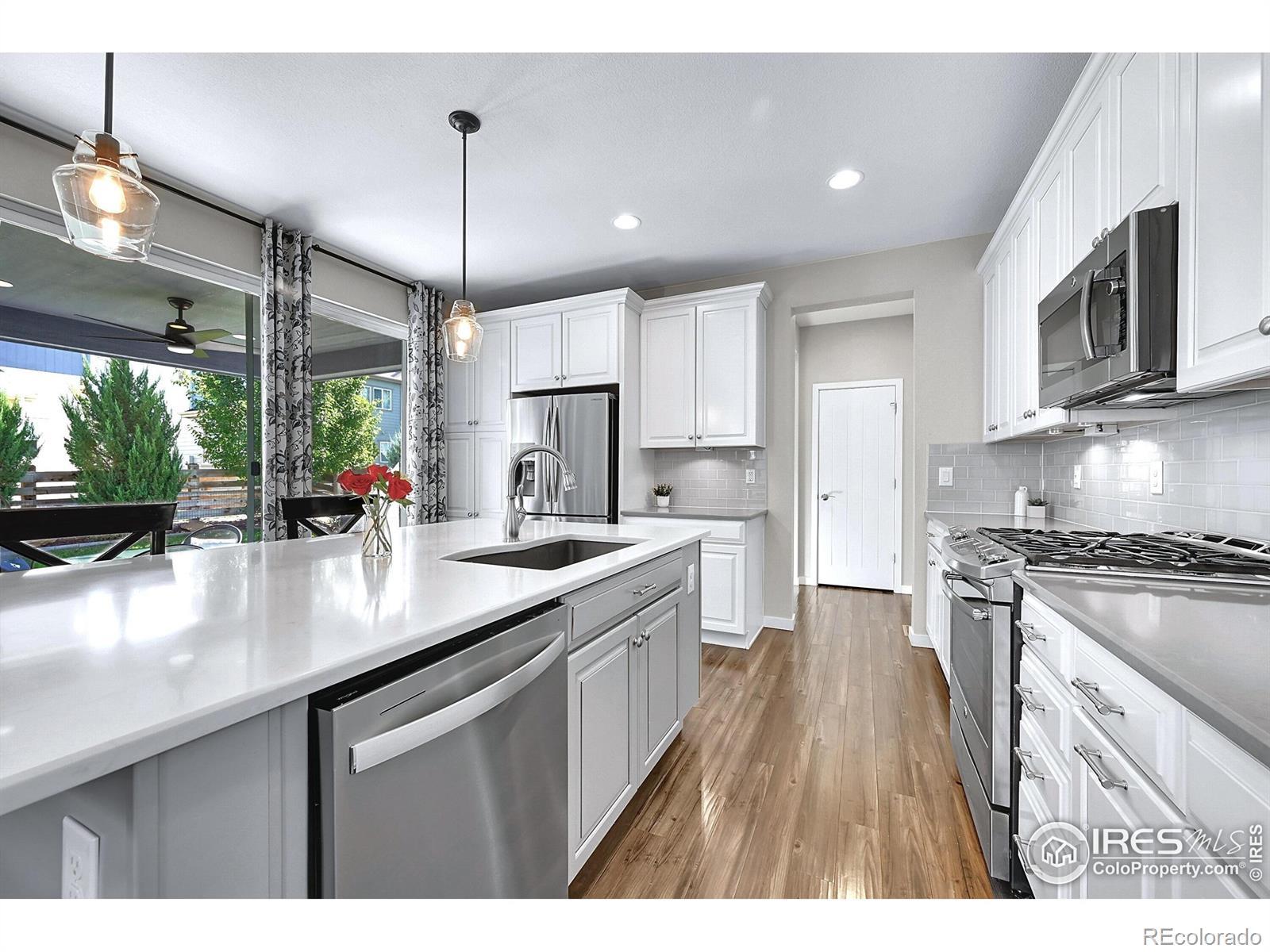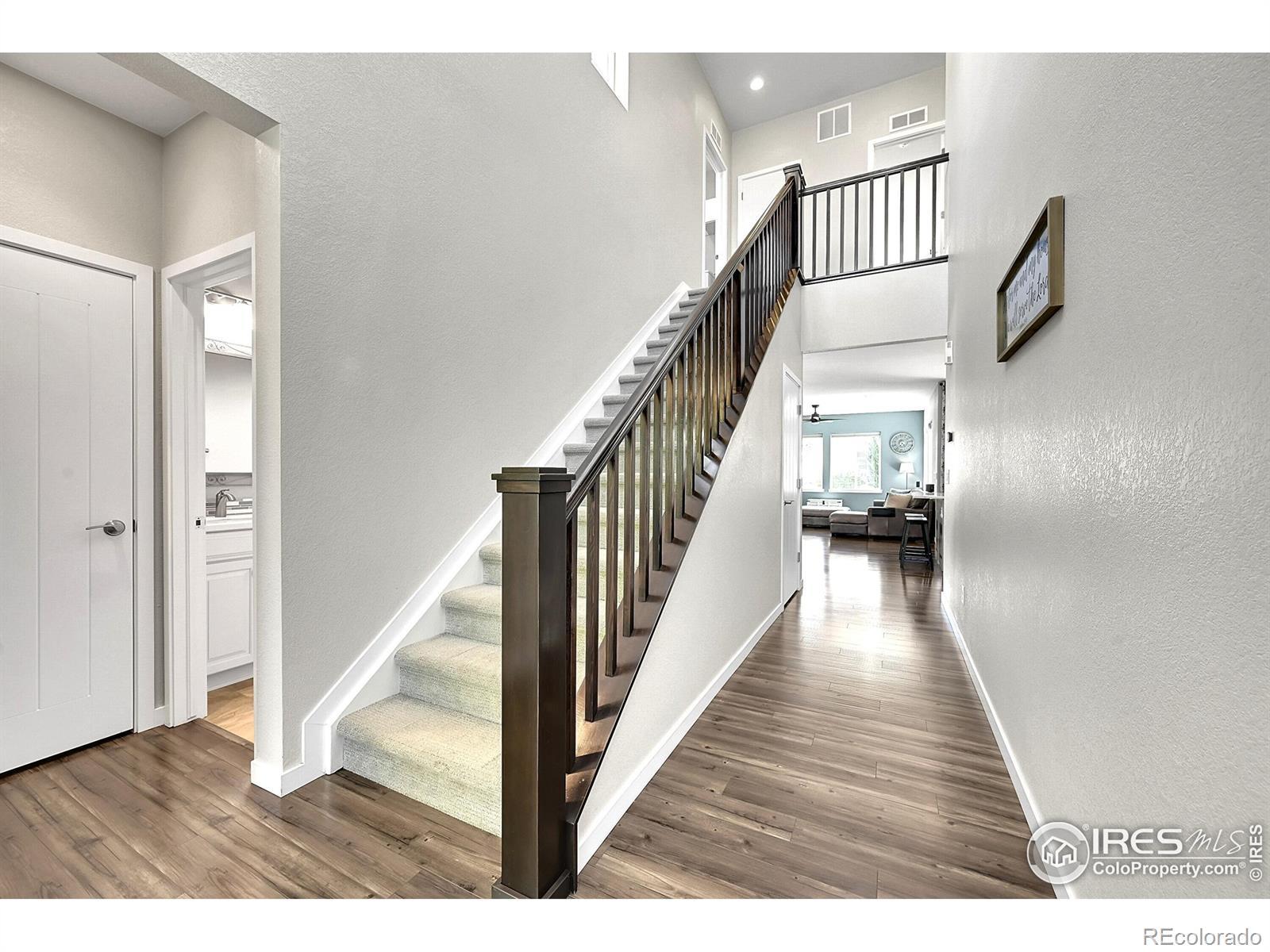 Stunning home located in Colliers Hill - one of Erie's premier master-planned communities! Upon entering, you'll be greeted by a soaring foyer, LVP flooring & a flexible office space ideal for a study or an additional bedroom with the space-saving Murphy bed & closet. There is also an adjacent 3/4 bath that is perfect for when family or guests stay with you. The stunning kitchen is the center of this special home which connects both the dining & family rooms seamlessly - ideal for both everyday living or hosting parties & holiday events. The beautiful kitchen boasts both marble & quartz countertops, 42" Merillat Masterpiece soft-close cabinetry, gas range and an expansive kitchen island with seating for 4. Plus there is a bonus room right off the kitchen that can flex as another office space with a built-in desk or mudroom with bench storage. Upstairs you will find a spacious primary suite with walk-in shower, dual sink vanity & large walk-in closet. There is also a versatile loft perfect for a playroom, open office or cozy movie area. 2 additional secondary bedrooms sharing a full bath & convenient laundry room complete the upper level along with amazing mountain views from the top of the stairs. Out back you will find a fully covered patio with exterior gas line & outdoor ceiling fan. The backyard is highlighted by manicured landscaping & strategically placed evergreens that provide year-round screening. The unfinished basement is perfect for storage or future expansion with egress window wells, 9ft ceilings & rough-in plumbing. unparalleled resort-style amenities, 2 pools, exercise facilities, clubhouses, trails & numerous parks. Easy access to Boulder, Denver, DIA, singletrack & walkable to downtown Erie's shops & restaurants. Home has a fully paid off 8MWh ION Solar System average monthly bills at only $63/mo. New Class 4 Roof & Gutters (2023) New Duration Exterior Paint (2023), New Front Door (2025). Hurry!