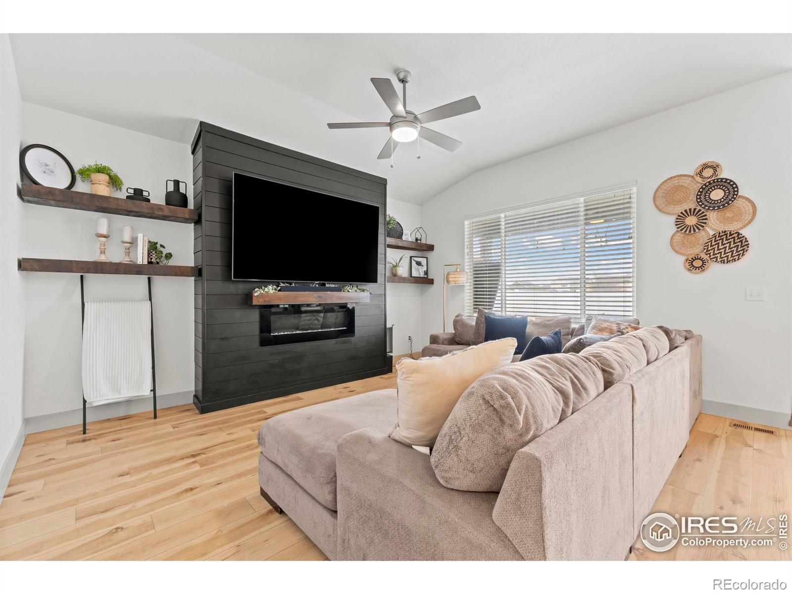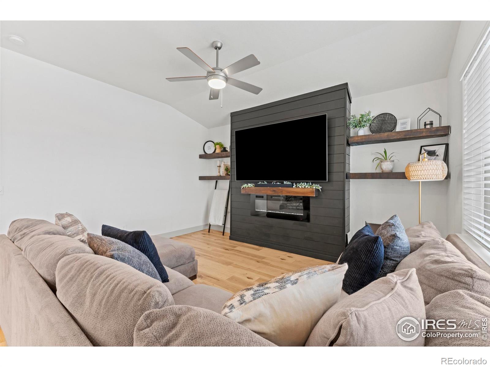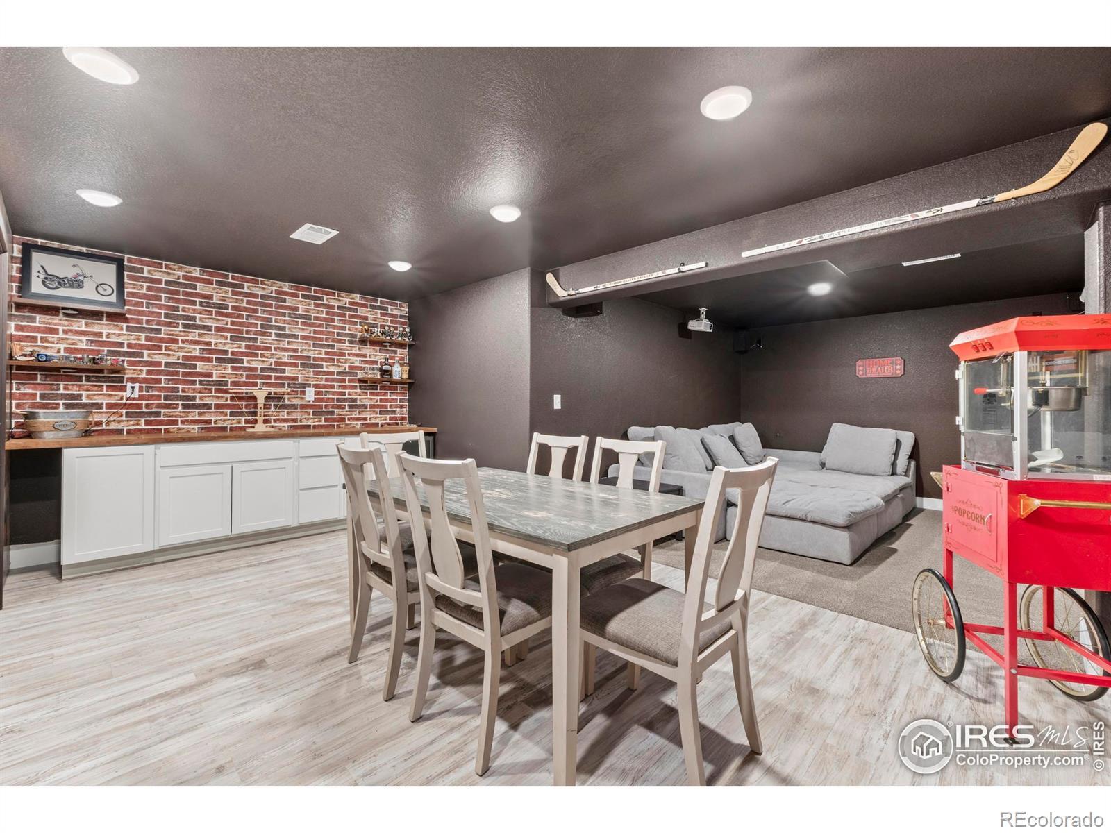 Step into this move-in ready gem in Hunters Crossing, where style meets space and everyday life flows effortlessly. This raised ranch offers 3 bedrooms upstairs and 2 downstairs, providing versatile spaces for work, play, or relaxation. The full basement features a dedicated theater room, bar, and game area-perfect for movies, games, or hosting friends.The heart of the home is the updated kitchen, open to the living room, where quartz countertops, new cabinets, and a striking fireplace feature make entertaining and everyday living a joy. Sunsets, mountains, and wide-open skies greet you from the front patio, while the oversized concrete backyard patio offers room to grill, entertain, and unwind in style. Behind the home, enjoy open-field privacy with no rear neighbors, giving you space to breathe without feeling isolated. Every detail has been thoughtfully updated in a cohesive, modern style, making this home significantly more refined than the typical builder-grade finishes in the neighborhood. Ideally located, you're just minutes from Fort Collins, Windsor, Timnath, and Greeley, putting all of Northern Colorado within easy reach.Whether hosting friends in the kitchen and living areas, catching a quiet sunset from the side patio, or enjoying the theater and game spaces in the basement, 1216 Muskox Street offers a lifestyle of connection, comfort, and versatility. Don't miss this rare opportunity to own a stylish, spacious home in a welcoming community.