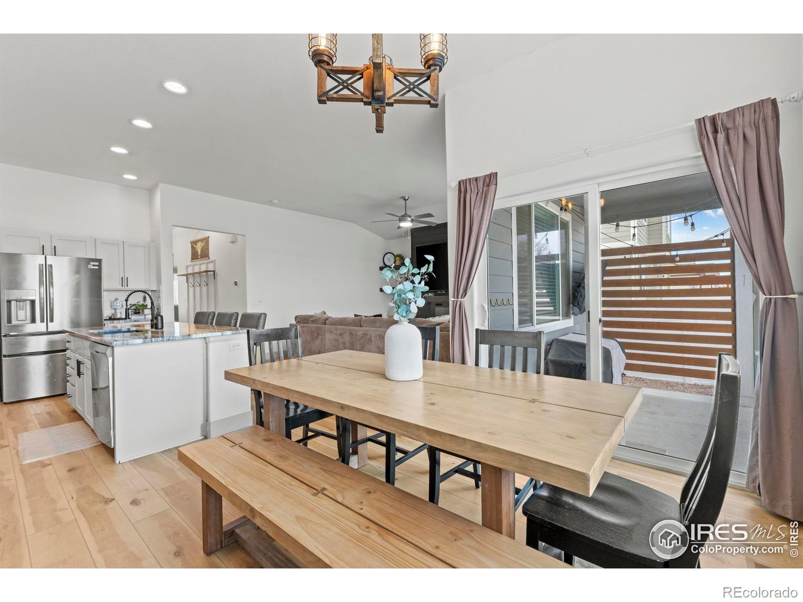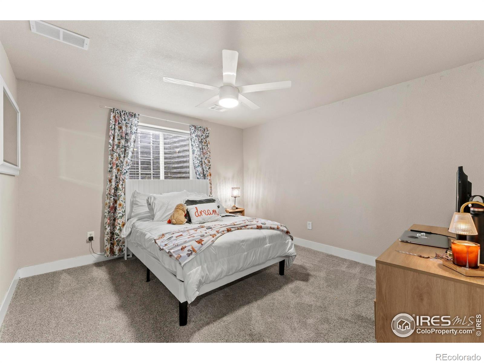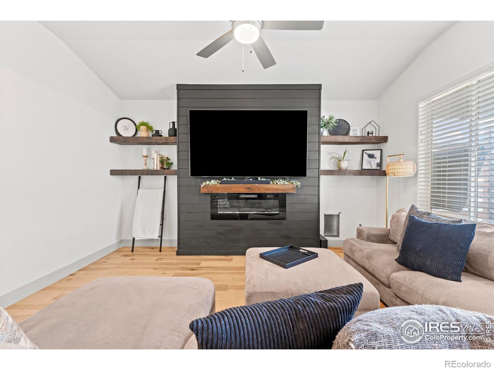 Step into this move-in ready gem in Hunters Crossing, where style meets space and everyday life flows effortlessly. This raised ranch offers 3 bedrooms upstairs and 2 downstairs, providing versatile spaces for work, play, or relaxation. The full basement features a dedicated theater room, bar, and game area-perfect for movies, games, or hosting friends.The heart of the home is the updated kitchen, open to the living room, where quartz countertops, new cabinets, and a striking fireplace feature make entertaining and everyday living a joy. Sunsets, mountains, and wide-open skies greet you from the front patio, while the oversized concrete backyard patio offers room to grill, entertain, and unwind in style. Behind the home, enjoy open-field privacy with no rear neighbors, giving you space to breathe without feeling isolated. Every detail has been thoughtfully updated in a cohesive, modern style, making this home significantly more refined than the typical builder-grade finishes in the neighborhood. Ideally located, you're just minutes from Fort Collins, Windsor, Timnath, and Greeley, putting all of Northern Colorado within easy reach.Whether hosting friends in the kitchen and living areas, catching a quiet sunset from the side patio, or enjoying the theater and game spaces in the basement, 1216 Muskox Street offers a lifestyle of connection, comfort, and versatility. Don't miss this rare opportunity to own a stylish, spacious home in a welcoming community.