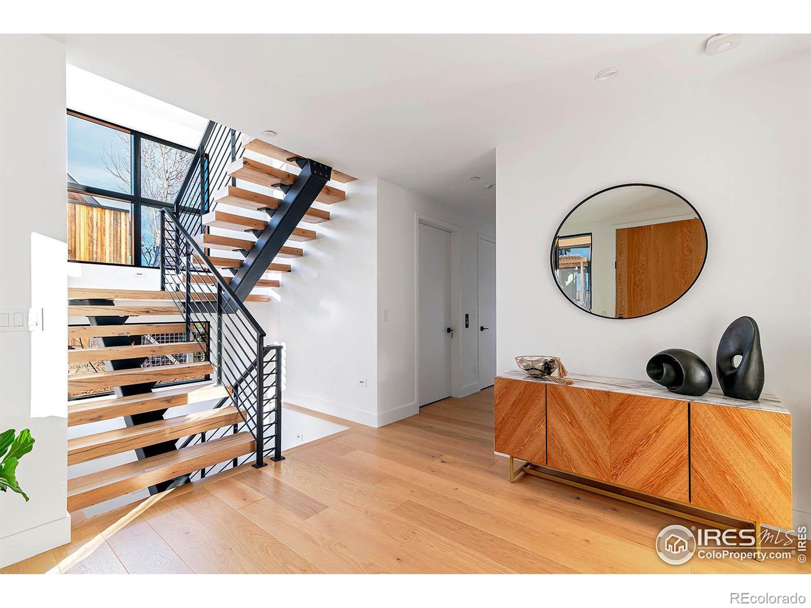 Feel instantly at home in this light-filled, newly constructed & impeccably crafted luxury downtown residence with walls of windows & spectacular views of the Flatirons, Sanitas mountain, city lights and the horizon. Located in the desirable Trailhead neighborhood, steps to miles of open space trails & walking distance to Boulder's vibrant Pearl Street, this home showcases such an abundance of quality features and finishes that a dedicated website is offered - visit boulder luxury group for details. There are two notable features that deserve special mention due to their rarity in Boulder: 1) radiantly heated/insulated 1288 SF garage with 11' ceilings that creates not only a glorious space for cars, gear and collectibles but opportunities for so much more and 2) Scandinavian styled Morning Star elevator, clad in birchwood, accessing all 3 levels. Some of the quality finishes include: Yawal European frameless, high performance windows & sliding doors; floating steel & reclaimed oak staircase; radiantly heated Swedish Kahrs wide plank oak flooring; Porcelanosa tiles; Cambria quartz; Wedgewood custom cabinetry throughout the home; Wolf and Subzero appliances. The magic is in the way these finishes are thoughtfully employed to create a feeling of well-being in a lock & leave sanctuary with smart systems and 10.9 kW of solar. Window coverings are a subjective decision so a $100K credit is being offered towards several designer options that have been proposed. Homes in the Trailhead neighborhood rarely come to market because of the desirability of living surrounded by masterpiece architecture at the base of the Foothills in a quiet setting, blocks from the quality shops & award-winning restaurants that make Boulder so desirable. The Boulder lifestyle simply does not get better than this in terms of beauty, convenience and proximity. This is a rare offering and a tremendous value for the discerning Buyer. Luxury finishes include: Morning Star Elevator with Scandinavian sty