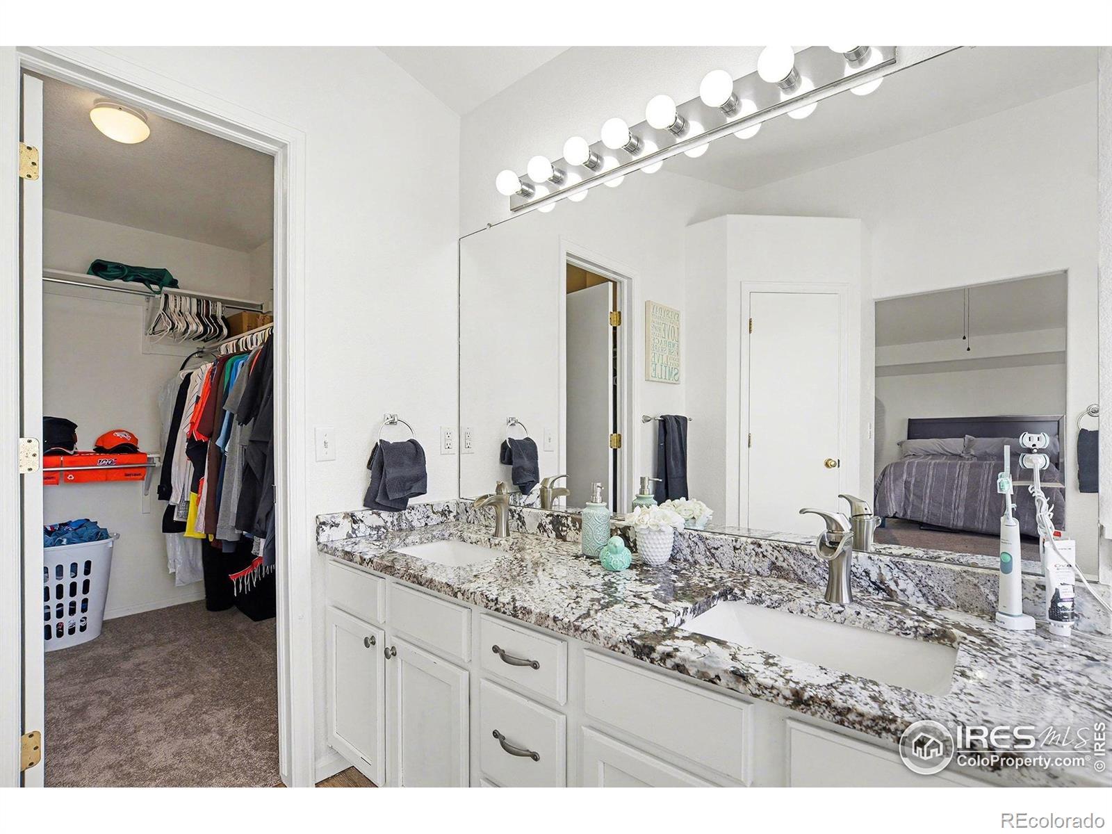 Welcome to this stunning 3-bedroom, 3-bathroom home in the heart of Erie, Colorado! From the moment you step inside, you'll be impressed by the soaring ceilings, new interior paint, abundant natural light, and beautiful wide-plank flooring that create an open, airy feel throughout the main level. The spacious living room flows seamlessly into the formal dining area, making it perfect for entertaining. The updated kitchen is a true showstopper, featuring granite countertops, a large center island, and stainless-steel appliances. Just off the kitchen, you'll find an eat-in dining space and a cozy family room-ideal for everyday living and gatherings. The main floor also offers a versatile home office or potential 4th bedroom, a convenient half bath, a laundry room, and direct access to the garage. Upstairs, enjoy brand-new carpet with upgraded padding throughout. The expansive primary suite includes a sitting area, a luxurious 5-piece en-suite bathroom, and a walk-in closet. Two additional bedrooms share a Jack-and-Jill full bathroom, offering both functionality and privacy. The unfinished basement provides endless potential-perfect for future expansion, a home gym, or additional storage. Step outside to a fully fenced backyard featuring a composite deck with privacy screen, sprinkler system, lush grass, and garden space-your own private outdoor retreat. To top it off, the oversized 2.5-car garage offers exceptional storage and flexibility. Rest easy knowing that the roof was replaced in 2023, a new garage opener was installed in 2021 as well as the water heater and the home has Govee permanent exterior lighting. This Erie home truly has it all-space, upgrades, and location. Don't miss your opportunity to make it yours!