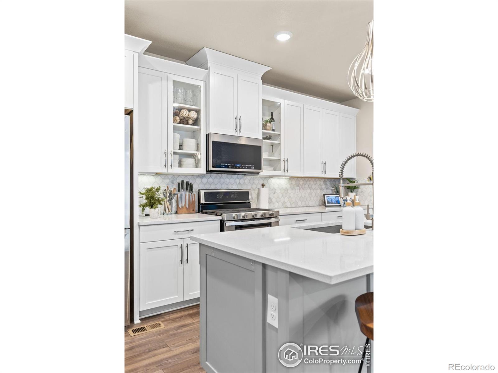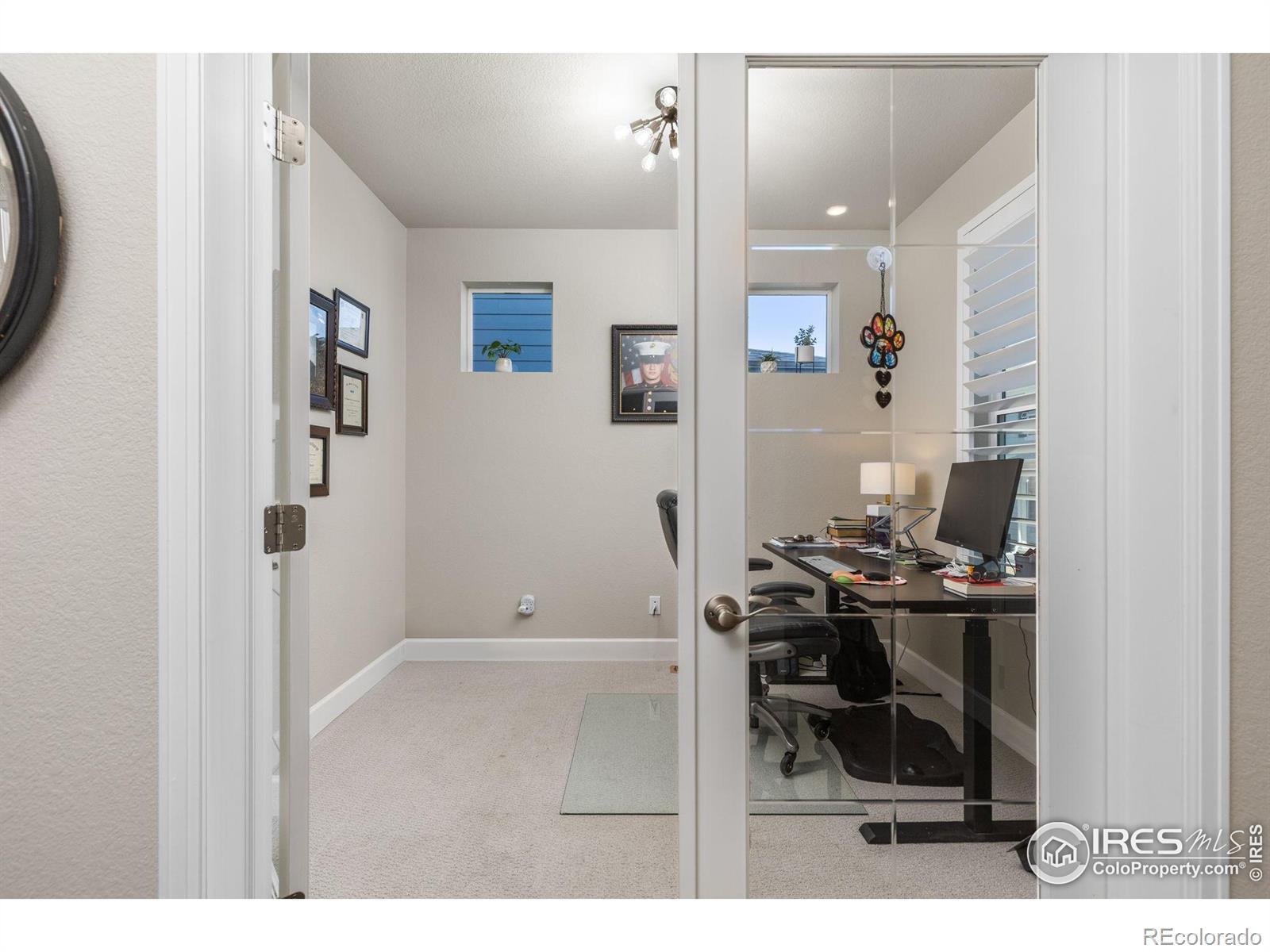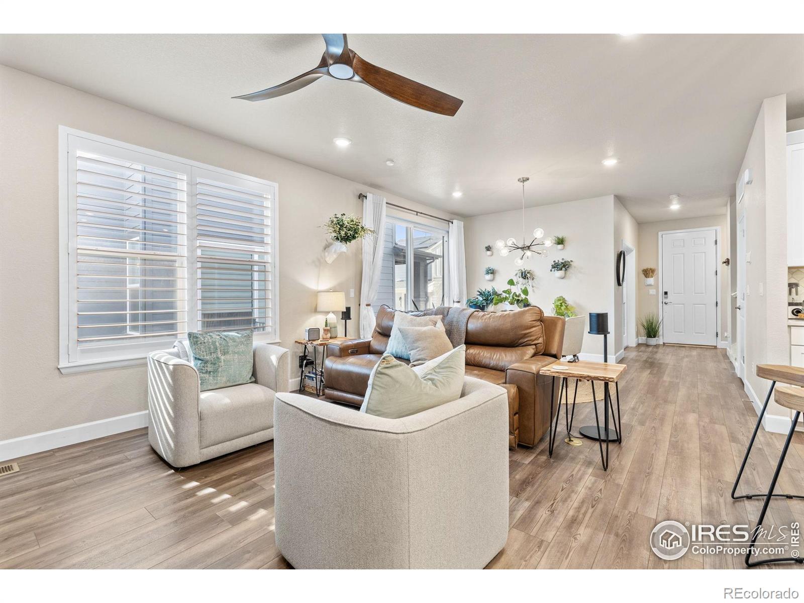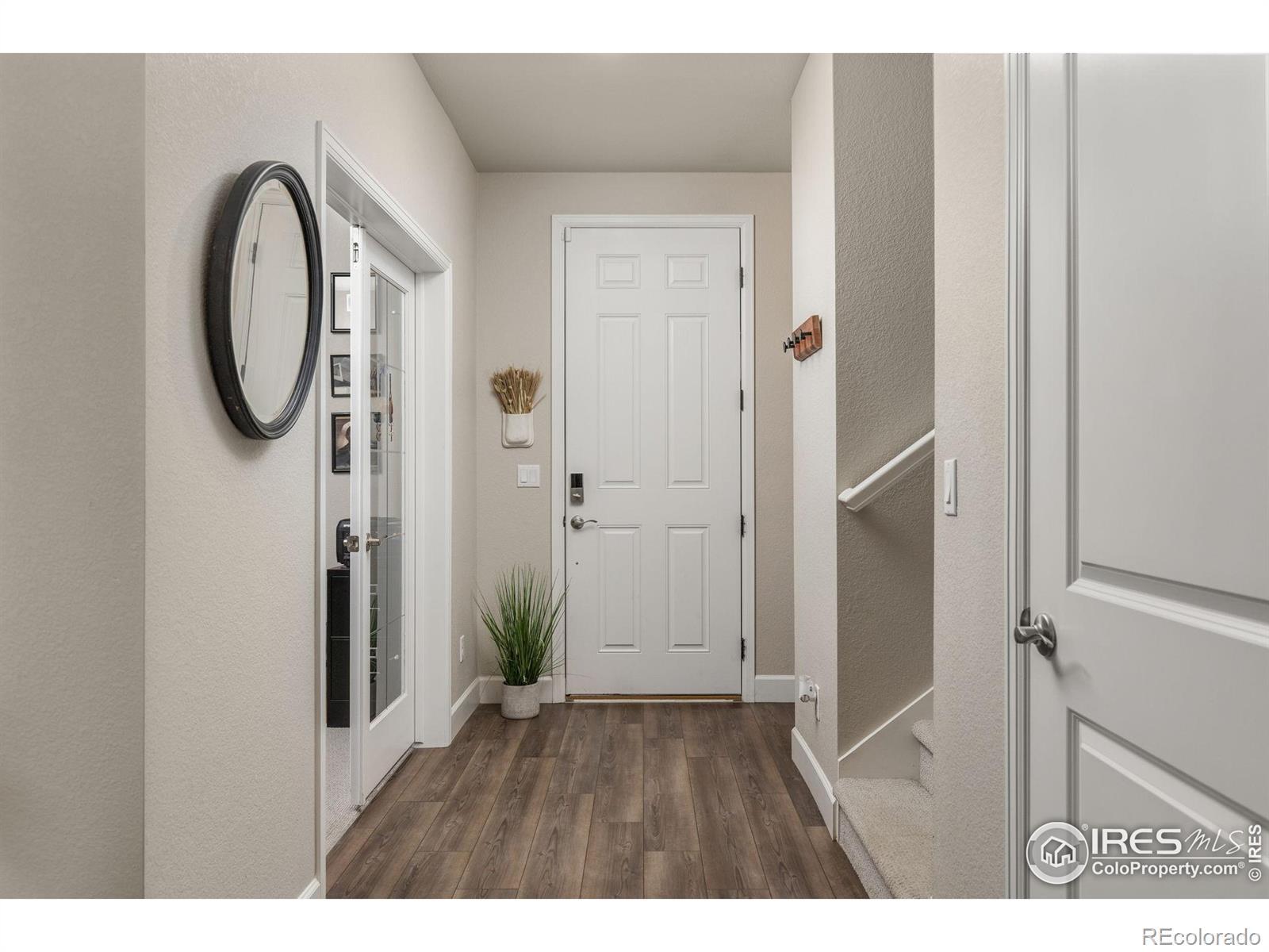 You've officially found the one! This modern townhome in the Village of Five Parks serves smart design, mountain views, and a lifestyle that actually lives well-steps from trails, parks, and neighborhood favorites. Built in 2022 by Meritage Homes, it still feels brand new (because it basically is), with luxury vinyl plank floors, designer lighting, and crisp plantation shutters setting the tone. The kitchen strikes the perfect balance of pretty and practical, featuring quartz countertops, white shaker cabinets with glass-front flair, stainless steel appliances, a breakfast bar, and-yes-a dedicated coffee station because priorities. Need a home office, reading nook, or escape-from-everyone room? The den with French doors has you covered. Downstairs, the unfinished basement is a blank canvas ready for your big ideas. Upstairs, the primary suite wakes up to mountain views and includes a walk-in closet and a spa-worthy ensuite with dual sinks and a generous walk-in shower. A secondary bath keeps the same clean, modern vibe. Outside, the low-maintenance turf yard is ideal for pets, play, or post-adventure lounging-and makes this home a true lock-and-leave dream. Four years young, zero compromises. Blink and it'll be gone-don't miss your shot to join the vibrant Village at Five Parks community!