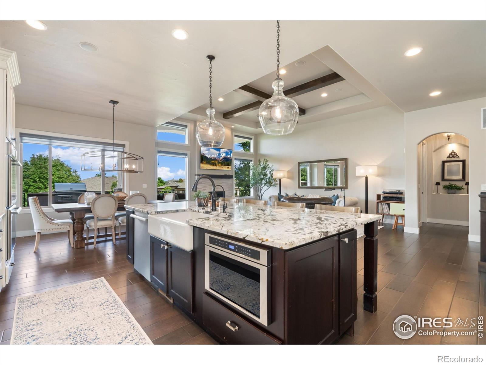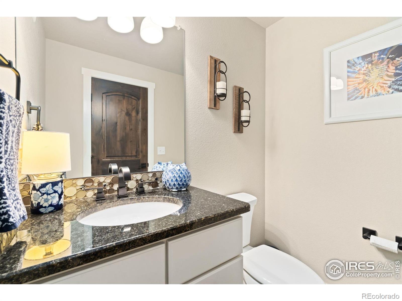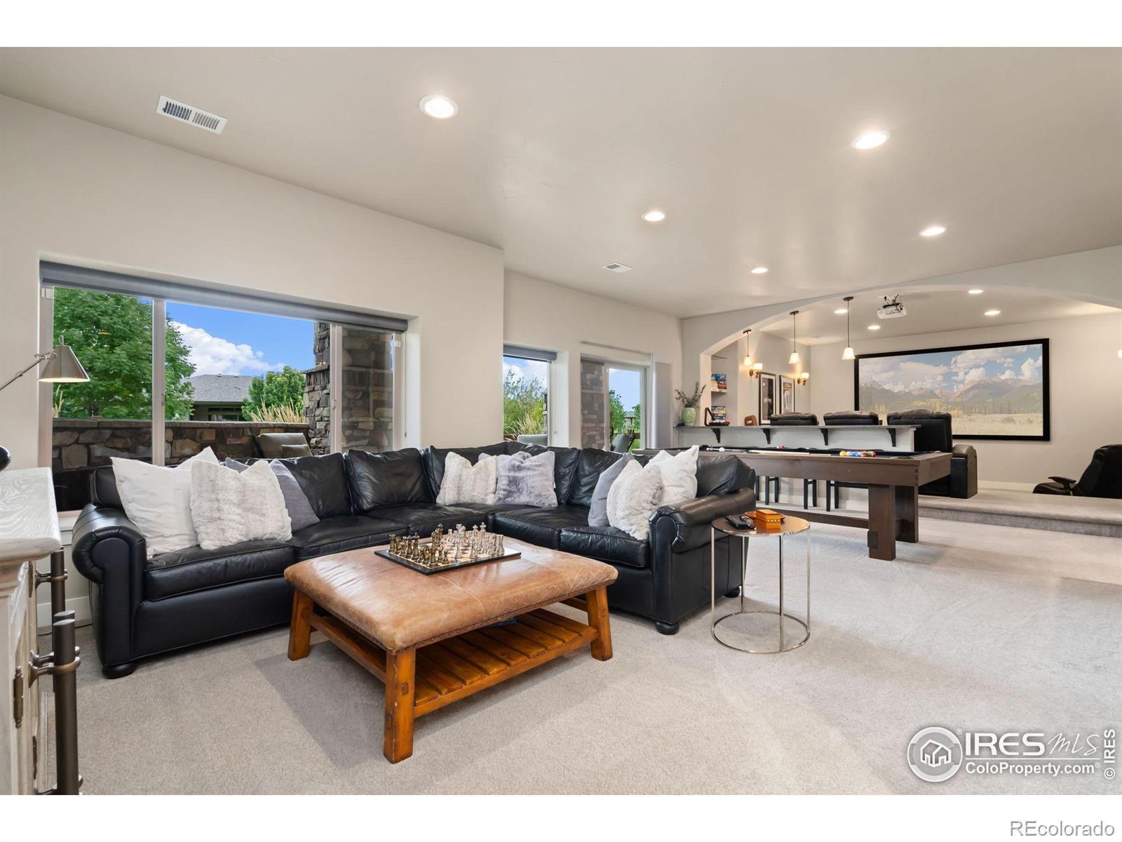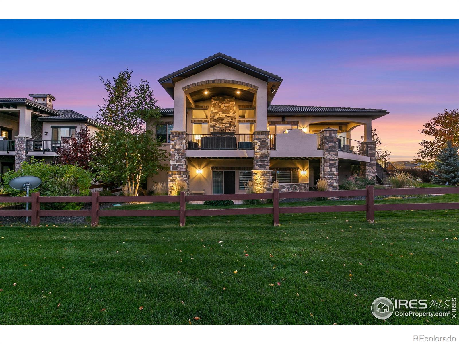 5 BED, 5 BATH, 4936 Square Feet. Perched on an elevated corner lot with peek-a-boo views of HARMONY CLUB's 5th green and Timnath reservoir. This Ranch style residence with desirable walk out basement offers 5 bedrooms and 5 bathrooms which combines privacy, beauty, and sophistication in one of the region's most prestigious private golf course communities. For VA buyers, this property offers an exceptional opportunity with a 2.5% ASSUMABLE loan! The oversized three-car garage was built for convenience and lifestyle, with space for multiple vehicles, a golf cart, a built-in workbench with custom cabinetry, and an EV charger. Inside, timeless elegance meets modern design. Rich hardwood floors, plush new carpeting, and soaring beamed ceilings create an inviting ambiance. A custom mudroom doubles as a chic beverage station with wine cooler and commercial style ice machine - the perfect stop after a round of golf. The gourmet kitchen features luxury Thermadore appliances which includes double ovens, and a built-in refrigerator. Soft-close cabinetry, and abundant storage, seamlessly opening to the great room where wall-to-wall windows showcase Colorado's breathtaking skies. The main-level primary suite is a private sanctuary with a stepped ceiling and ambient lighting. Its spa-inspired bath offers an oversized soaking tub, steam shower, and custom walk-in closet designed for comfort and luxury. Entertain with ease on the expansive upper deck, complete with a built-in BBQ, fireplace, and stairway to the backyard oasis. The finished walk-out lower level includes a full wet bar, two additional bedroom suites, a private large screen theatre with surround sound, and a custom cedar-lined safe room. Smart-home features throughout includes a Control4 home automation/entertainment system, automated exterior holiday lighting from your cell phone or tablet, blending luxury, convenience, and technology throughout.