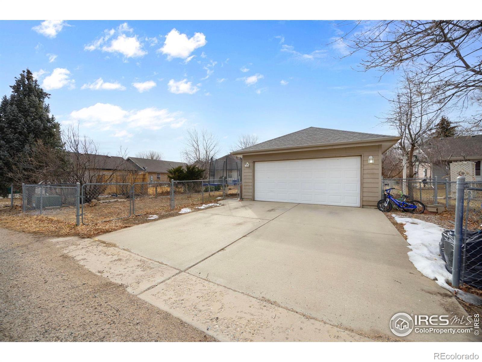 This Berthoud, Colorado ranch-style home offers flexible living space, a practical layout, and an in-town location with no HOA and no metro district. The property features 3 bedrooms, 2 bathrooms, and 1,664 finished square feet on a .18 acre lot, plus a finished basement that adds usable living, work, or recreation space. The main level supports single-floor living with a functional floor plan and clean flow between the living room and kitchen. The kitchen includes an eat-at bar top for daily meals and casual seating. The finished basement provides options for a second living area, office, or workout room. The current primary bedroom is located in the basement, while the large upstairs bedroom served as the original primary and remains a strong main-level bedroom option. Flooring includes carpet and luxury vinyl plank. Exterior features include all brick, a covered front porch, rear patio, and fully fenced backyard with room for pets, gardening, or outdoor use. A detached two-car garage with alley access provides parking, storage, and shop space while keeping the front approach open. Located near downtown Berthoud and minutes from I-25, this home offers quick access to local shops, dining, parks, and commuter routes.