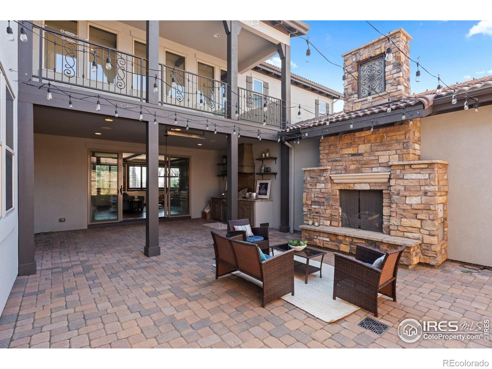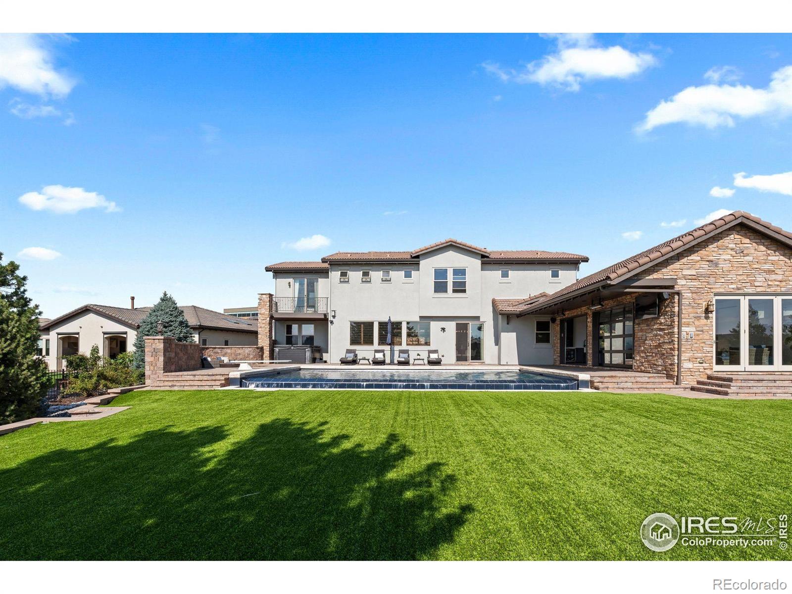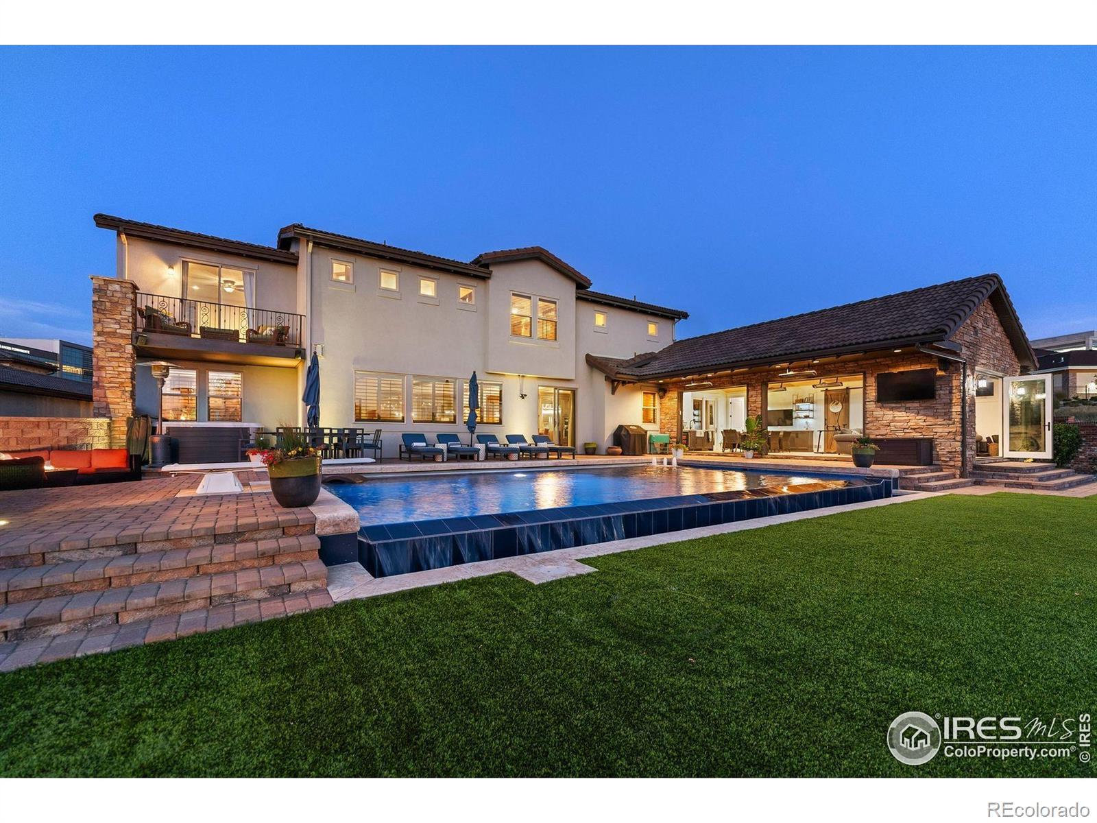 Sited on one of the premier lots in all of Heritage Hills, this fully loaded residence redefines luxury living with over $1 million in bespoke upgrades and a jaw-dropping pool house addition completed in 2022. Perfectly positioned on an oversized, west-facing cul-de-sac lot (originally the highest lot premium in Overlook), the home captures unforgettable mountain views and sunsets. Anchored by a resort-style infinity-edge pool and hot tub, the pool house includes an incredible spa-like shower bath, wet bar and private laundry creating an entertaining space that's as functional as it is stunning. The thoughtfully designed outdoor setting also features low maintenance turf, a built-in firepit, and expansive patios designed to take full advantage of the incredible view. At the heart of the home is a dramatic central courtyard that connects seamlessly to the interior and offers year-round enjoyment with its built-in grill and custom stone fireplace. Inside, every surface was thoughtfully selected-high-end reclaimed oak floors, knotty alder doors and shutters and extensive custom cabinetry. The central kitchen is beautifully appointed with professional-grade KitchenAid appliances, highly upgraded granite countertops and a custom walk-in pantry The main level also includes a custom office, a 2nd office or "project room" with abundant cabinetry, and a front entry expansion that allows interior access to both garages-each finished with epoxy floors and custom cabinetry. Upstairs, the luxurious primary suite offers breathtaking mountain views, a spa-caliber primary bath, and a walk-in closet that connects directly to the upstairs laundry. Three additional ensuite bedrooms and a spacious loft with custom built-in desks complete the upper level. The finished basement impresses with a 120" theater, a decked-out bar, a private 5th bedroom, a gorgeous shower bath, and a 275-square-foot fitness space. This one-of-a-kind Heritage Hills estate delivers an elevated Colorado lifestyle