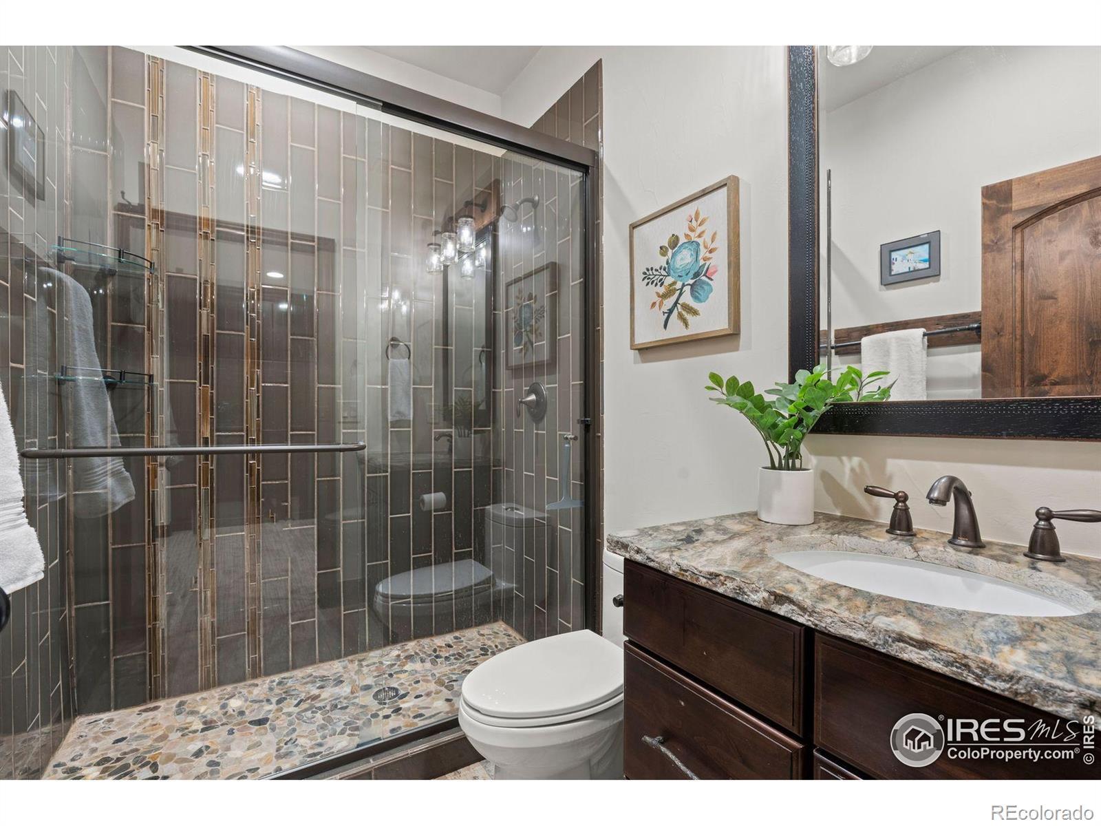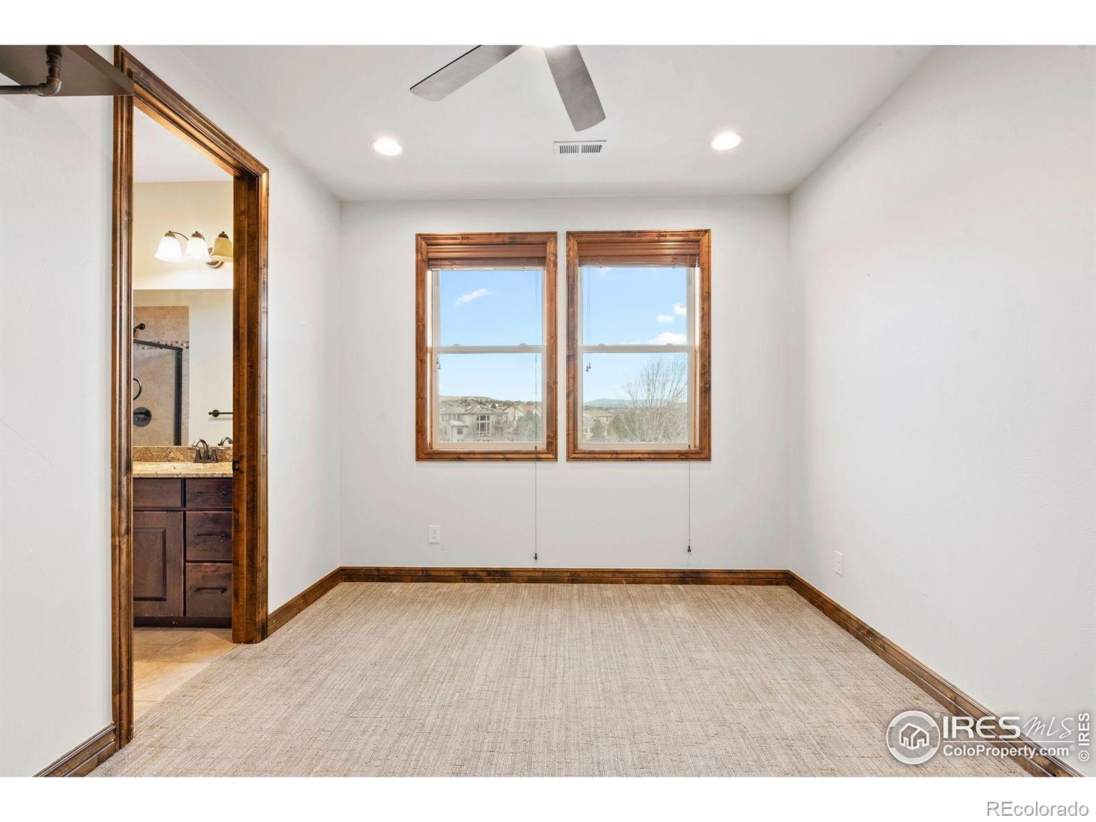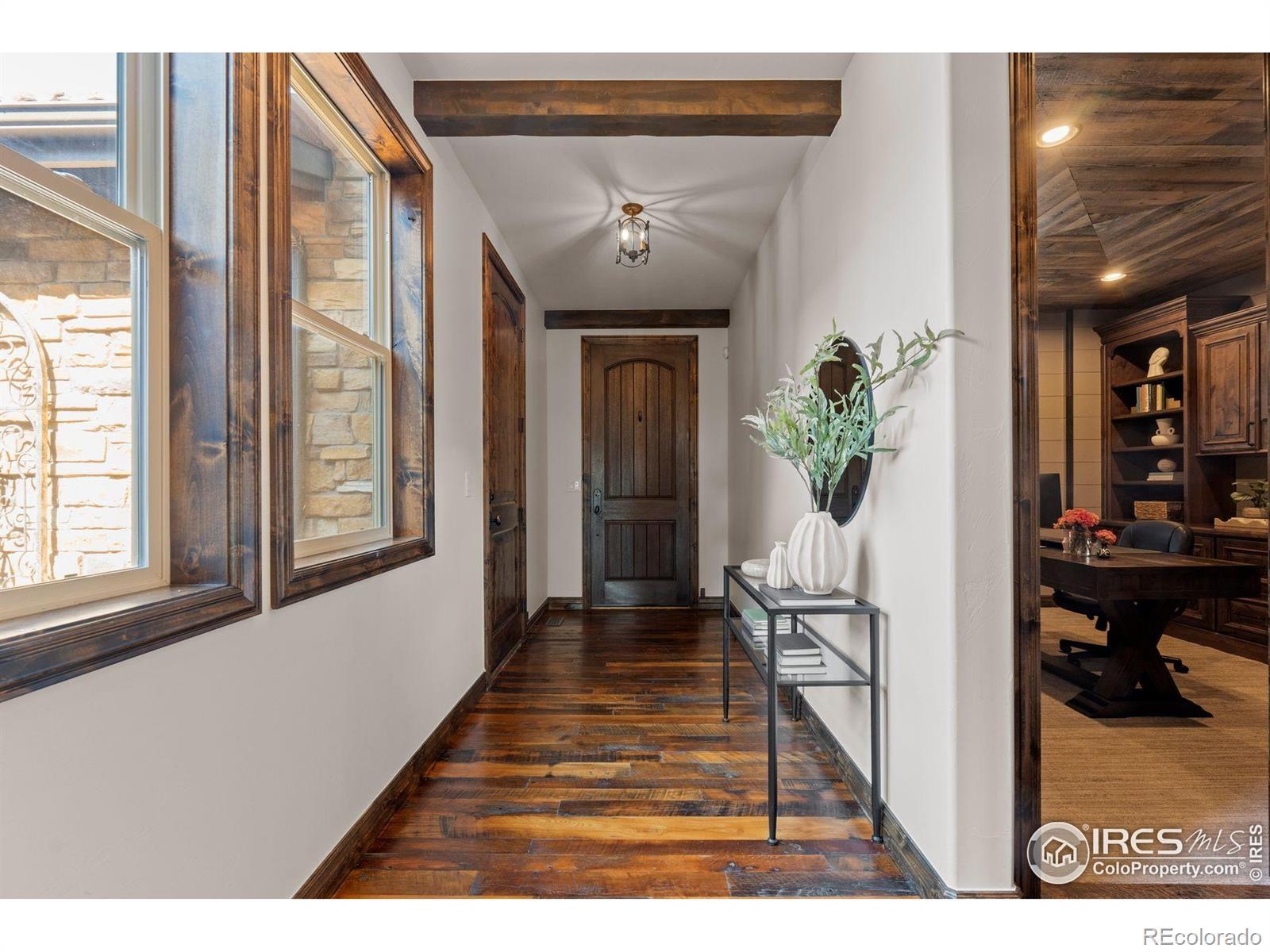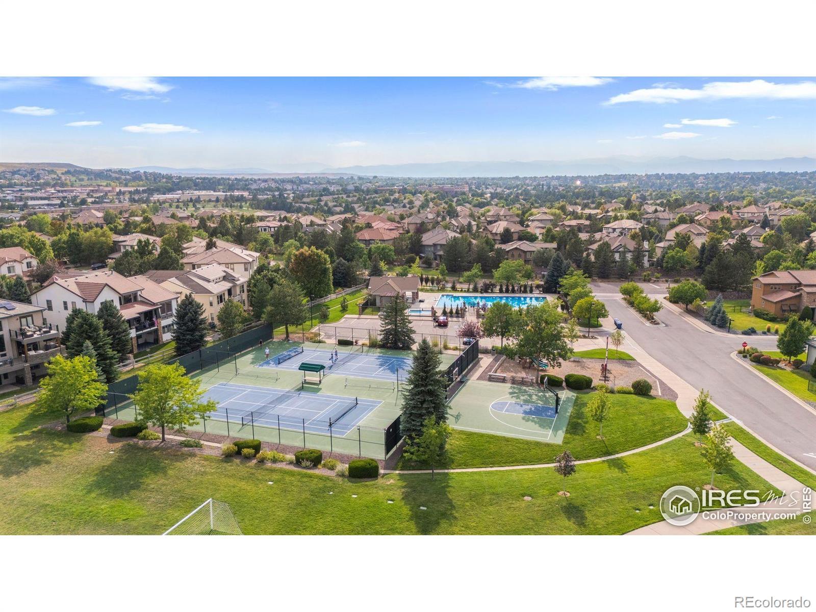 Sited on one of the premier lots in all of Heritage Hills, this fully loaded residence redefines luxury living with over $1 million in bespoke upgrades and a jaw-dropping pool house addition completed in 2022. Perfectly positioned on an oversized, west-facing cul-de-sac lot (originally the highest lot premium in Overlook), the home captures unforgettable mountain views and sunsets. Anchored by a resort-style infinity-edge pool and hot tub, the pool house includes an incredible spa-like shower bath, wet bar and private laundry creating an entertaining space that's as functional as it is stunning. The thoughtfully designed outdoor setting also features low maintenance turf, a built-in firepit, and expansive patios designed to take full advantage of the incredible view. At the heart of the home is a dramatic central courtyard that connects seamlessly to the interior and offers year-round enjoyment with its built-in grill and custom stone fireplace. Inside, every surface was thoughtfully selected-high-end reclaimed oak floors, knotty alder doors and shutters and extensive custom cabinetry. The central kitchen is beautifully appointed with professional-grade KitchenAid appliances, highly upgraded granite countertops and a custom walk-in pantry The main level also includes a custom office, a 2nd office or "project room" with abundant cabinetry, and a front entry expansion that allows interior access to both garages-each finished with epoxy floors and custom cabinetry. Upstairs, the luxurious primary suite offers breathtaking mountain views, a spa-caliber primary bath, and a walk-in closet that connects directly to the upstairs laundry. Three additional ensuite bedrooms and a spacious loft with custom built-in desks complete the upper level. The finished basement impresses with a 120" theater, a decked-out bar, a private 5th bedroom, a gorgeous shower bath, and a 275-square-foot fitness space. This one-of-a-kind Heritage Hills estate delivers an elevated Colorado lifestyle