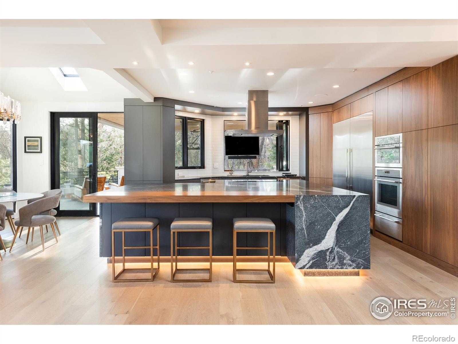 Exquisite secluded sanctuary in the heart of Carolyn Heights. Tucked into one of Boulder's most prestigious enclaves, this estate offers a rare fusion of luxury, privacy, and relaxed sophistication. Set on a serene, tree-lined .81-acre level lot, this 7-bedroom, 5-bathroom oasis is where inspired design meets effortless living. Stunning views of the Flatirons awaken you each morning from your bed. Those same views tease your senses from the expansive patios with fully retractable doors that blur the lines from inside to outside. Bathed in natural light from soaring windows and skylights, every detail has been thoughtfully curated. Custom walnut doors and paneling welcome you into the home and invite you to explore. The chef's kitchen is a showstopper-featuring custom cabinetry, an oversized marble island, and top-of-the-line Thermador appliances. The open-concept layout flows seamlessly into a lush backyard oasis, perfect for gatherings or quiet moments of retreat by the fire pit. The primary suite is a haven unto itself with vaulted ceilings, a spa-inspired bath, spacious walk-in closet, and private deck access. With multiple flexible living spaces-including a dedicated home office and media room, this home is ready to adapt to your every need. Located minutes from North Boulder's best hiking trails, cycling routes, farmers markets, and local eateries-yet nestled in the peaceful privacy of a mature, sought-after neighborhood. Elevated living starts here. LIVE BOULDER, LOVE BOULDER! Original home built in 1987. Home had a studs up remodel that was completed in early 2024.