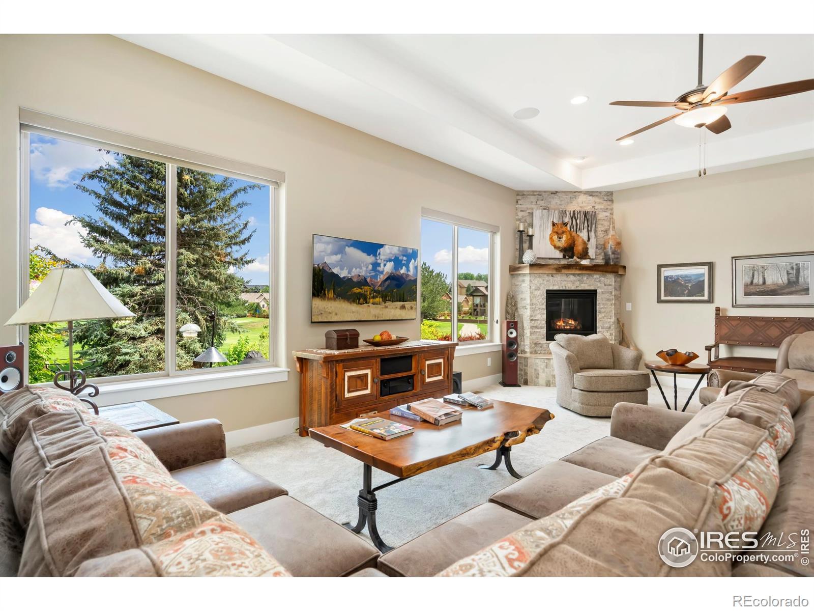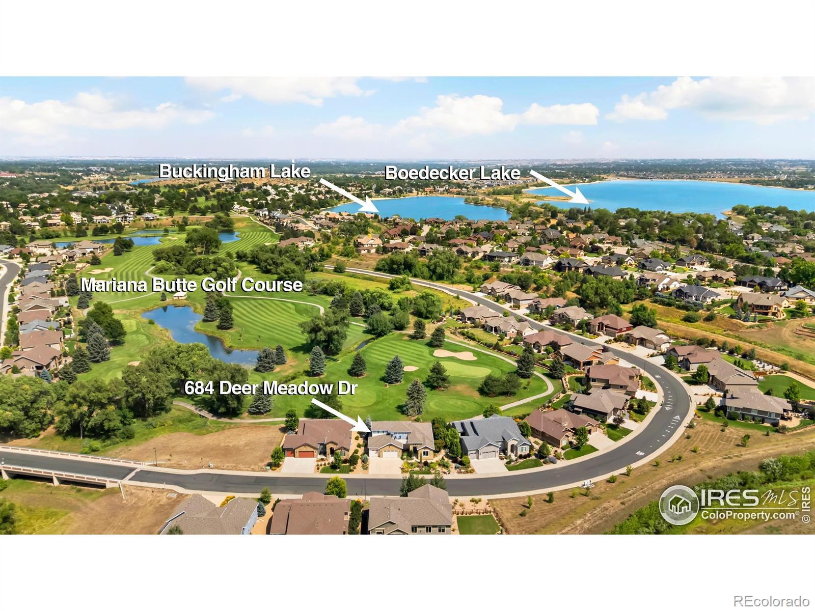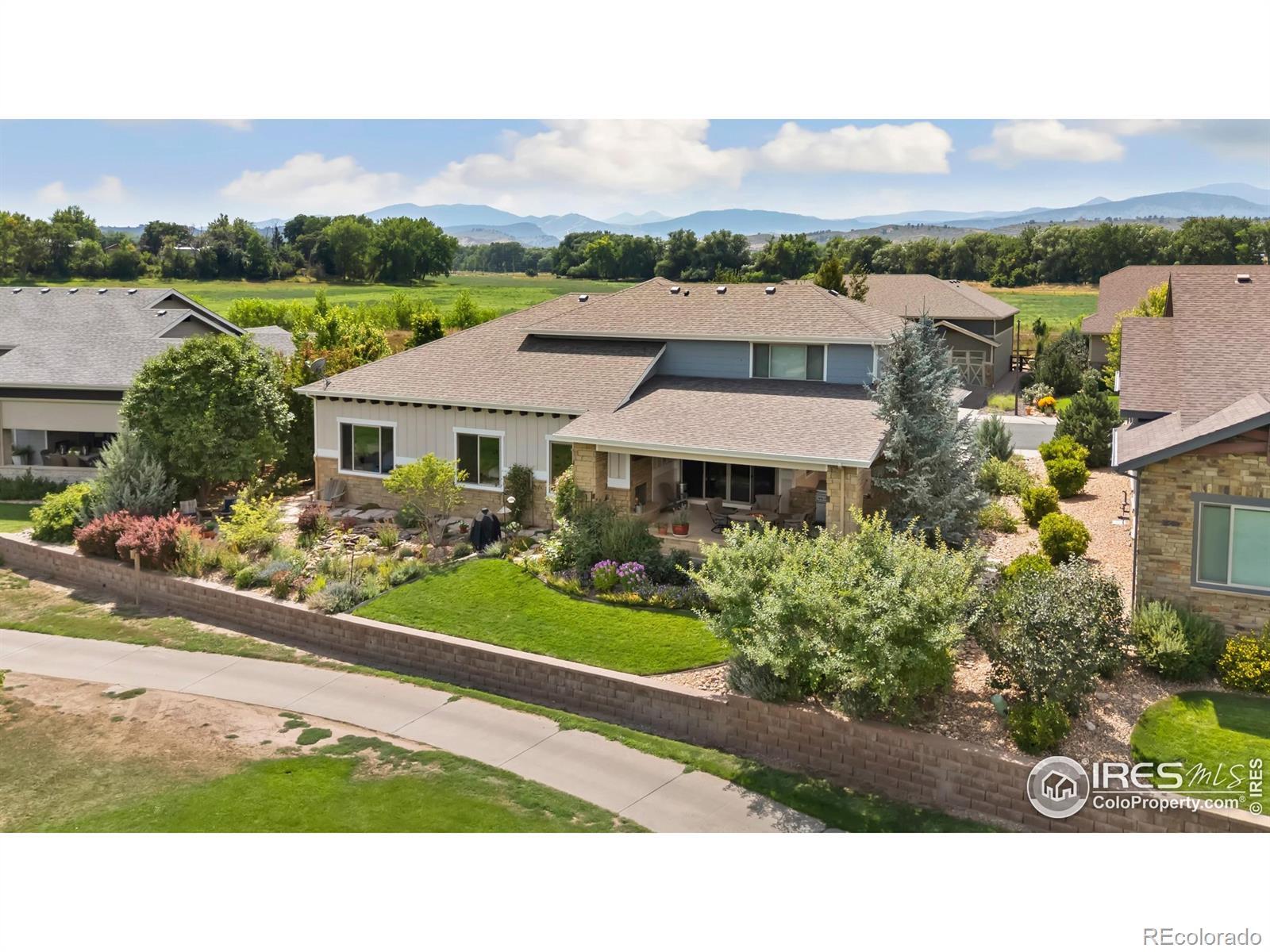 This home is ready for you! Located just off the 4th tee at the coveted Mariana Butte Golf Course, this stunning home blends golf course living with Rocky Mountain views. The beautifully landscaped yard bursts with vibrant floral color, creating a serene backdrop for outdoor living. The expansive covered patio features a cozy fireplace and built-in gas grill-perfect for entertaining or just kicking back. Inside, a spacious bonus suite offers flexibility for guests, a home office, or hobby space. Take entertaining to new heights on the rooftop deck, where sweeping mountain vistas provide the ultimate Colorado backdrop. Take a hike up the Butte, a no wake sail on Bodecker Lake or a 40-minute drive to Estes Park. This home has it all!
