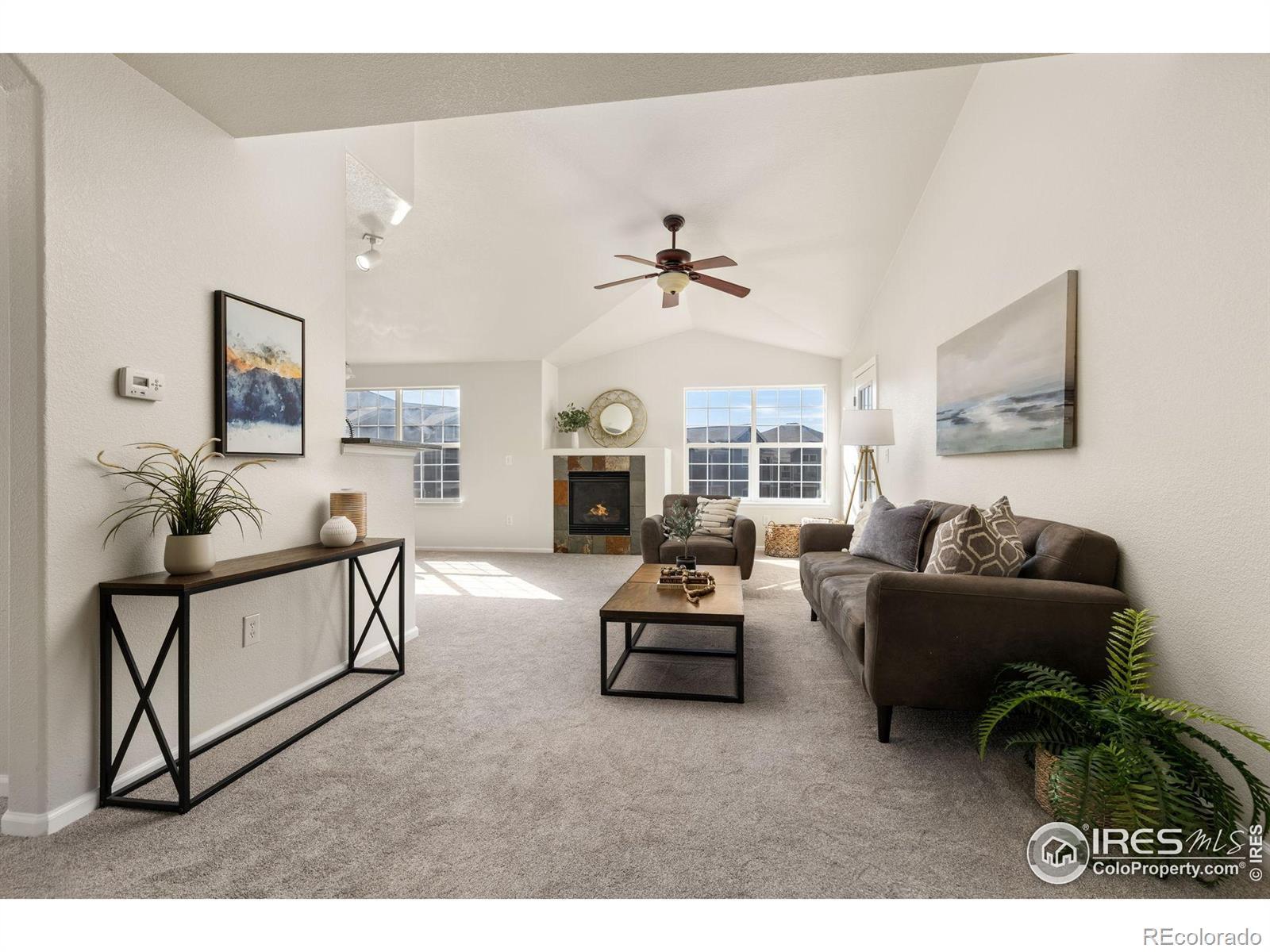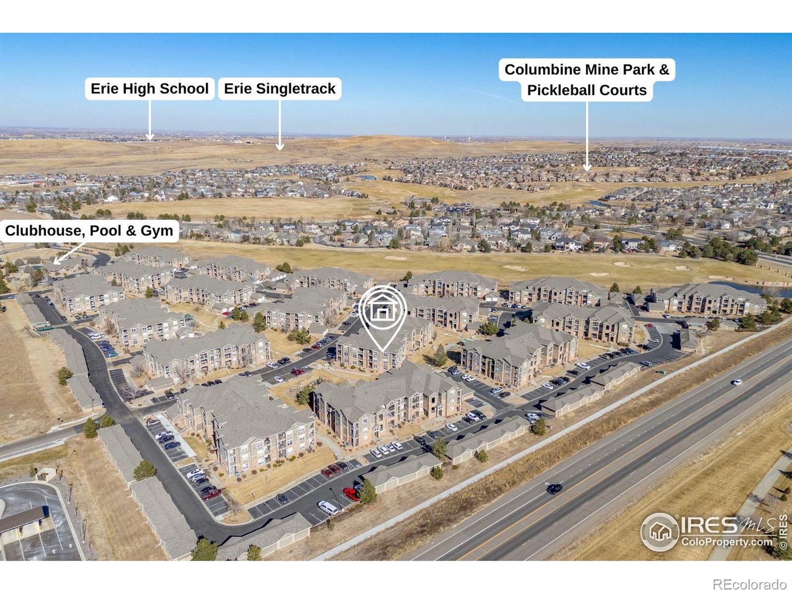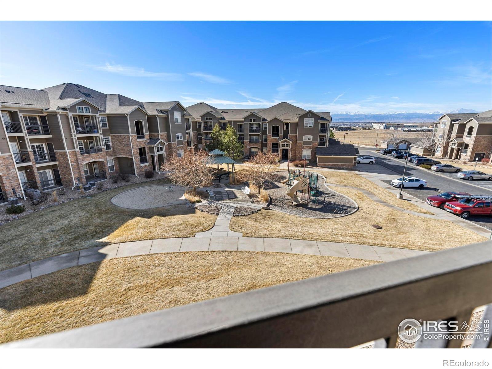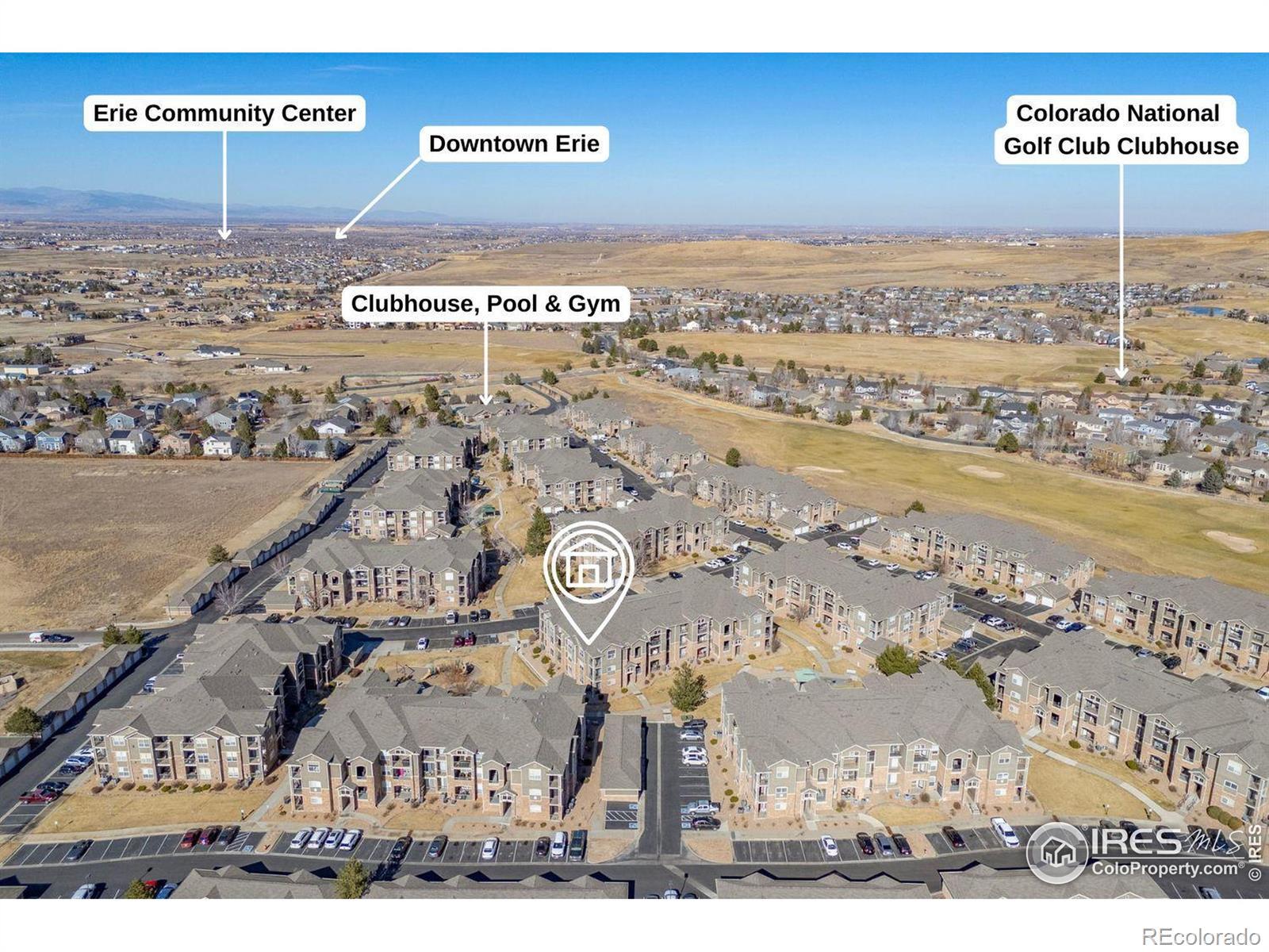Great top-floor, turnkey condo with spectacular mountain views! This bright 2-bedroom, 2-bath home features vaulted ceilings, fresh interior paint, new carpet, and an open-concept layout that lives large. Enjoy a spacious living room with a cozy fireplace, flowing seamlessly into the dining area. The primary suite offers a walk-in closet, private bath, and access to one of two balconies for taking in those stunning Colorado sunsets. A second bedroom and bath provide great flexibility for guests or a home office. You'll also love the dedicated laundry room with extra shelving for storage, plus an additional storage closet for all your gear. A 1-car detached garage is included and additional parking throughout the complex is available. The location in Erie's Vista Ridge offers easy access to I-25 and is close to Broomfield, Lafayette & Louisville via Hwy 7. The community features a clubhouse, gym, pool, hot tub and kids' playground, plus a school bus pick-up and drop-off location to Black Rock Elementary, Erie Middle & High School.
