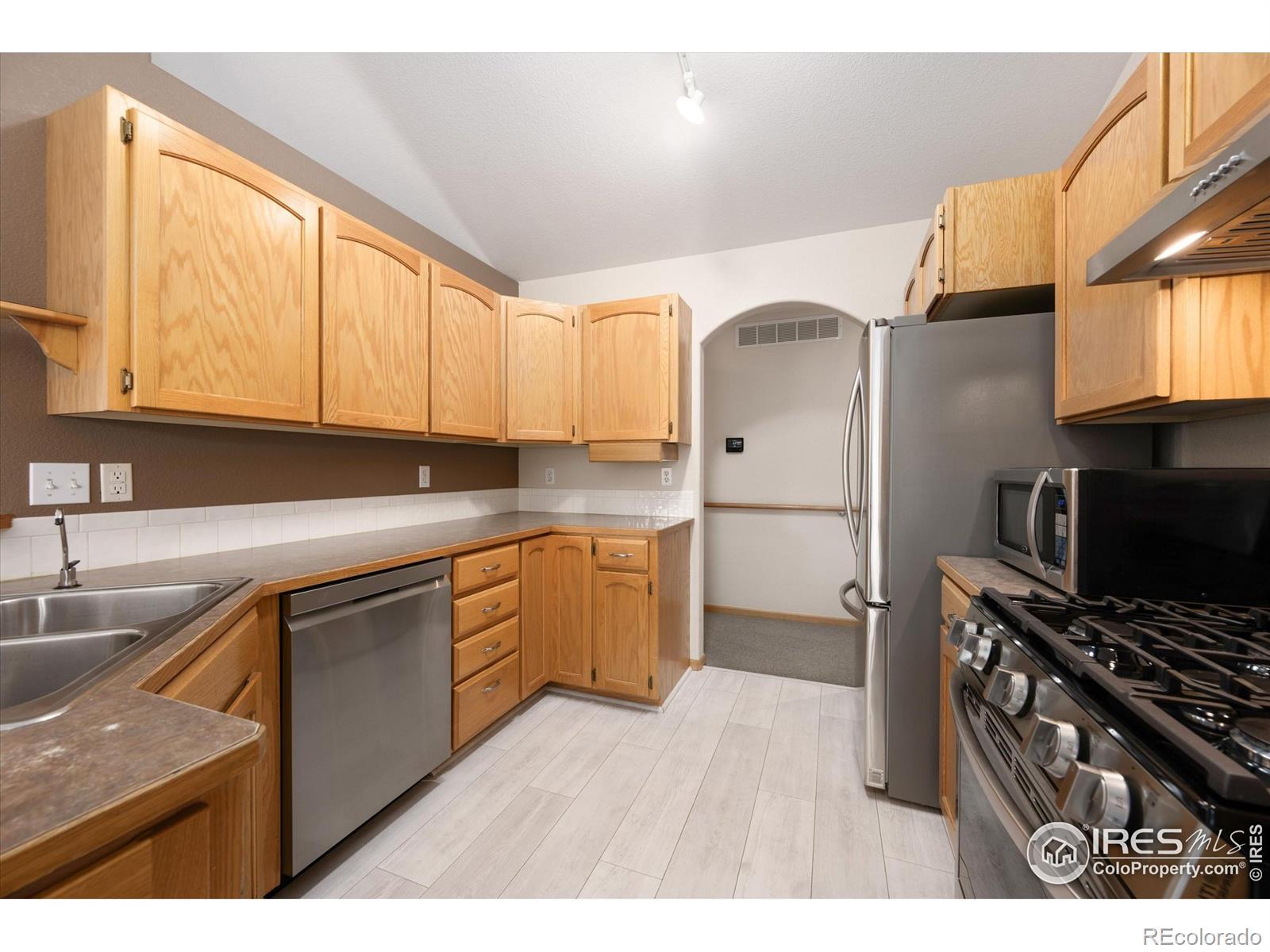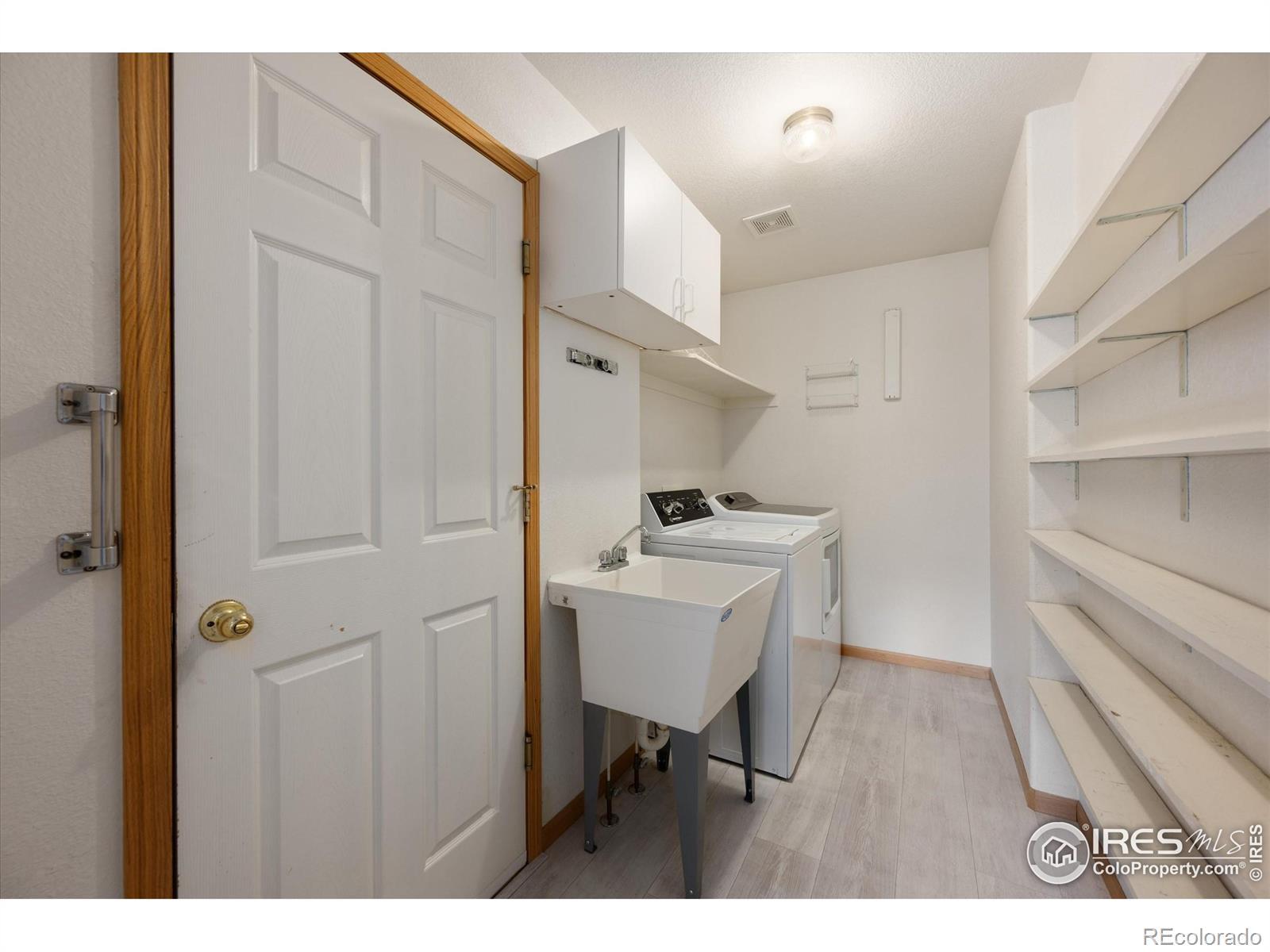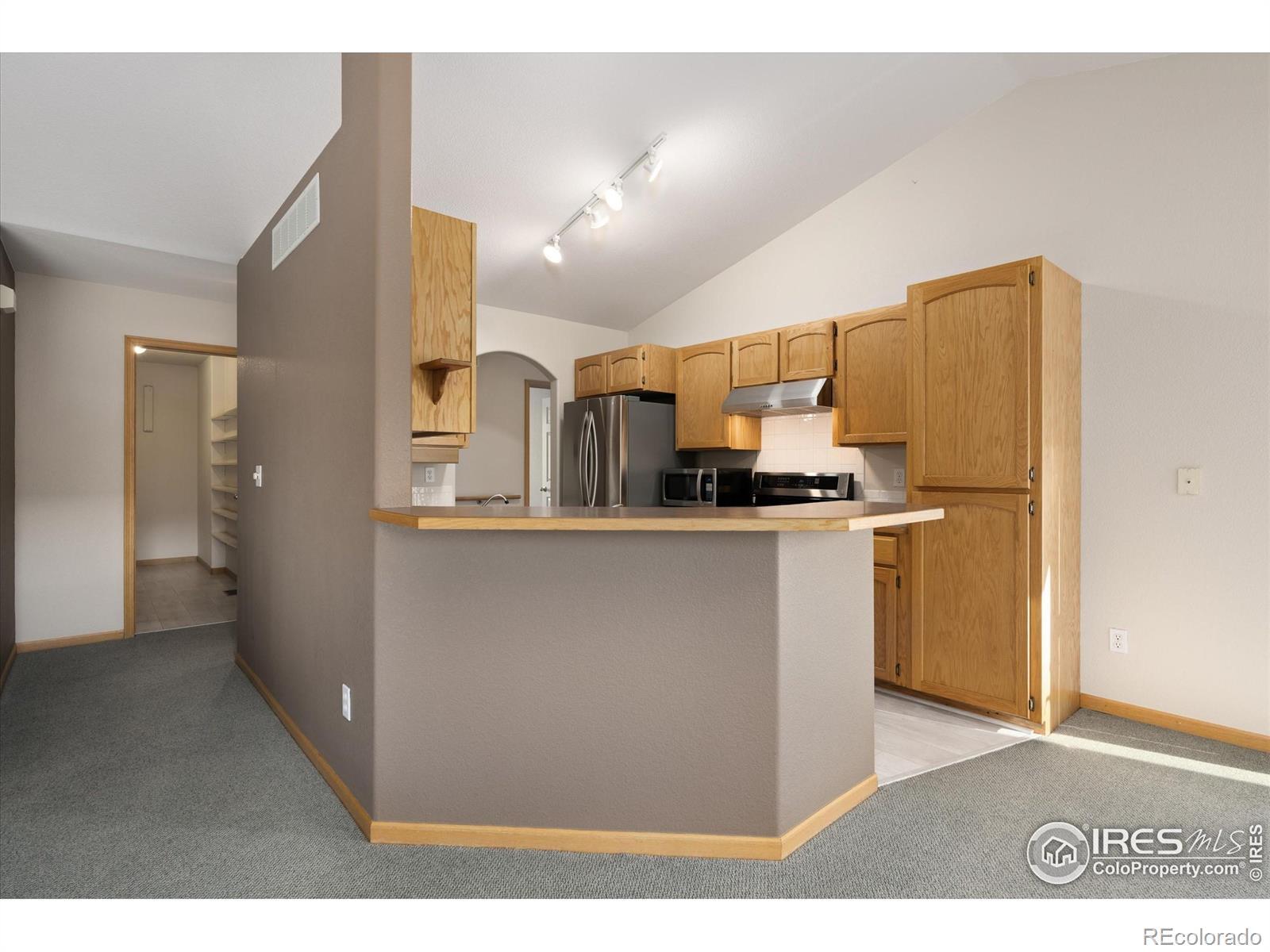 Enjoy true one-level living in this open-concept ranch-style home in Fort Collins. Ideally located near trails and open space. Vaulted ceilings, rounded corners, and a gas fireplace highlight the spacious great room, while the bright kitchen features a breakfast bar, abundant cabinetry, and a gas range-perfect for everyday living and entertaining. The primary suite offers a soaking tub, separate shower, and generous closet space. A full unfinished basement provides excellent storage or future expansion potential. Step outside to a large back deck with foothills views, plus a fully fenced, landscaped yard with sprinkler system and gated trailer or camper access. Additional highlights include central air conditioning, a laundry sink, and an oversized three-car garage. Located in one of Fort Collins' best neighborhoods for trail access, surrounded by parks, walking paths, and open space, this home delivers comfort, flexibility, and an exceptional Colorado lifestyle.