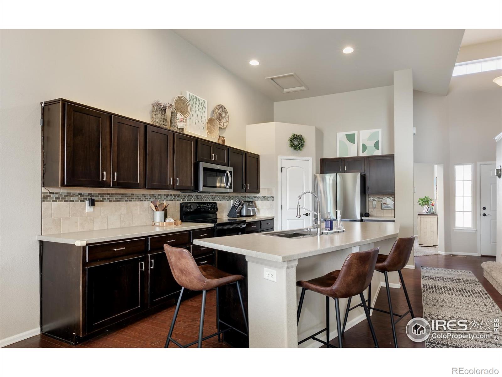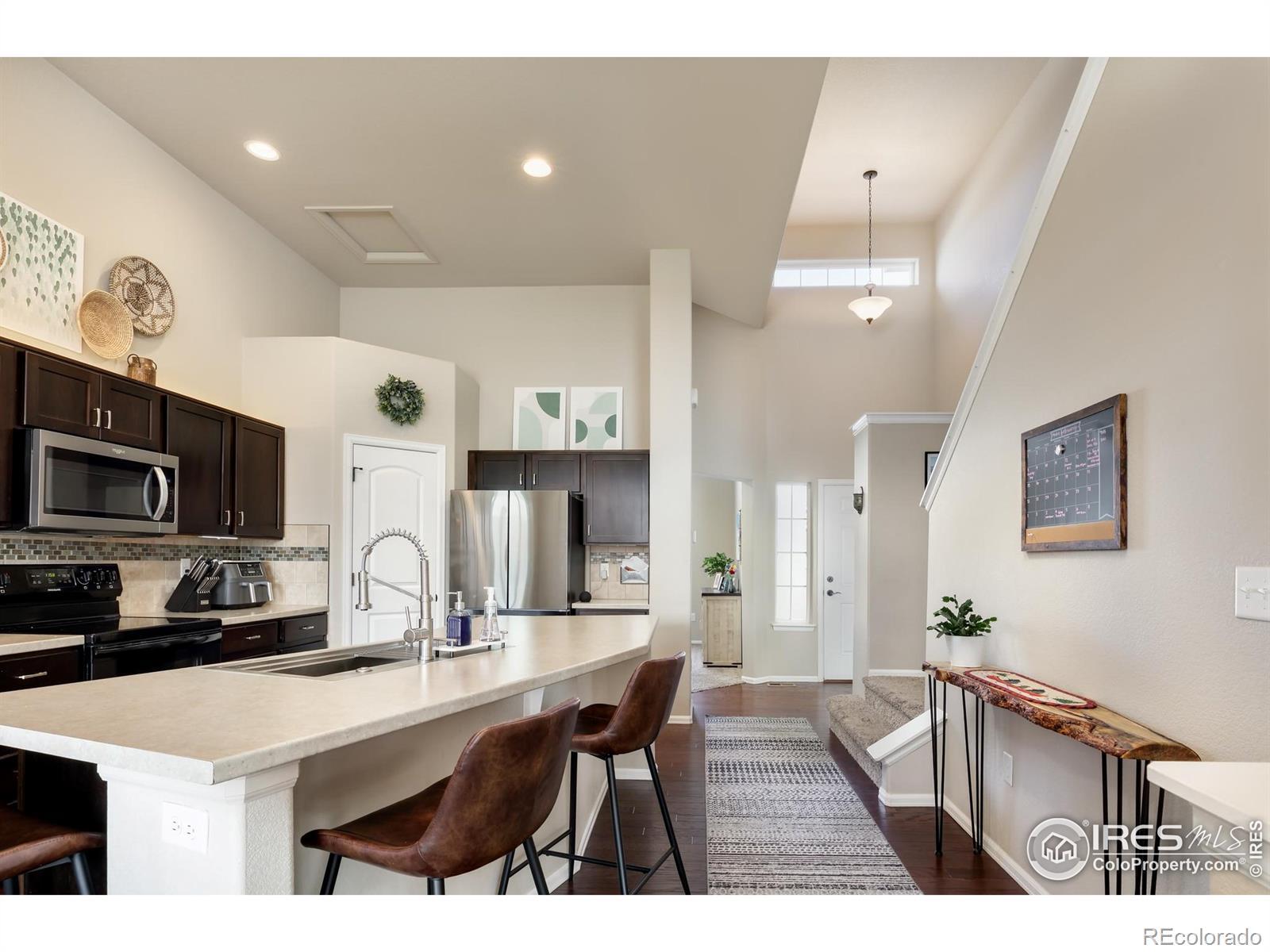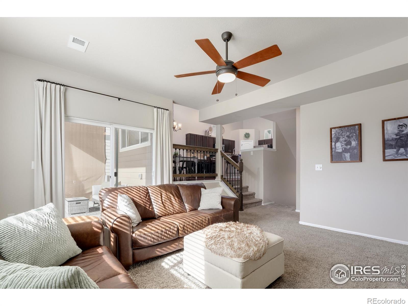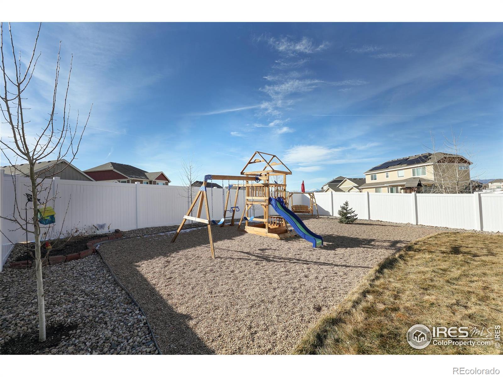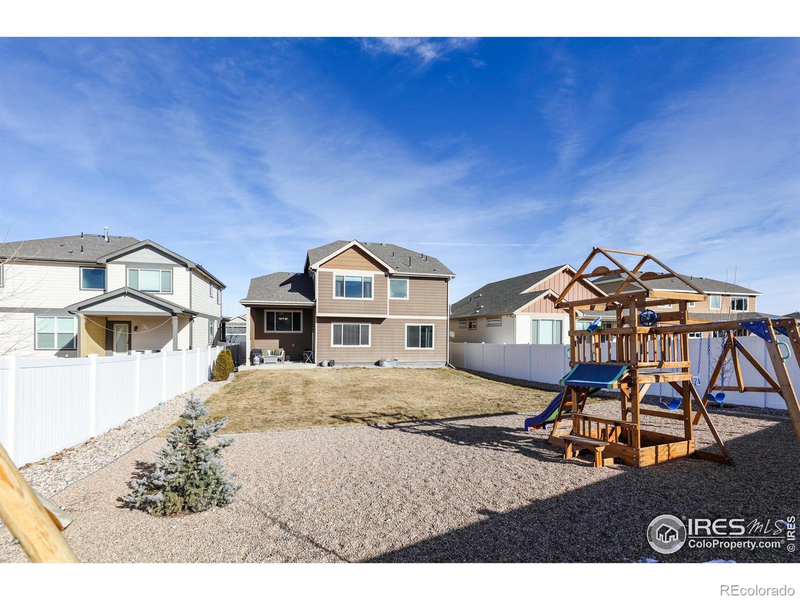 This thoughtfully upgraded home offers exceptional livability, flexible spaces, and a larger-than-typical lot with a fully fenced backyard, setting it apart from other homes in the neighborhood. The open-plan home is anchored by a sunken living room that adds architectural interest while maintaining easy sightlines to the kitchen, making it ideal for entertaining or everyday living. The chef-ready kitchen features a massive center island, abundant storage, an upgraded deep sink, and a premium appliance package that includes a Samsung Bespoke refrigerator, plus new microwave and dishwasher. The layout flows seamlessly, supporting both casual family time and hosting guests. The upper-level primary suite is a true retreat with generous space, a large walk-in closet, and private en-suite bath. The lower-level guest bedroom adjacent to a 3/4 bath with walk-in shower offers privacy for visitors or multigenerational living. Two additional upstairs bedrooms share a full bath, while a front bonus room provides flexible space for a home office, playroom, or media room. The unfinished basement offers excellent future expansion and equity potential. Outside, enjoy professional low-maintenance xeriscaping in front and an expansive backyard with covered porch-perfect for play, pets, and entertaining (deluxe playset included). An extended-depth garage provides abundant storage without sacrificing parking. Ideally located near neighborhood parks, Willow Bend Park & Natural Area, Boyd Lake, walkable schools, and just minutes from downtown Loveland, Fort Collins, and Longmont-this home delivers comfort, upgrades, and space rarely found together.