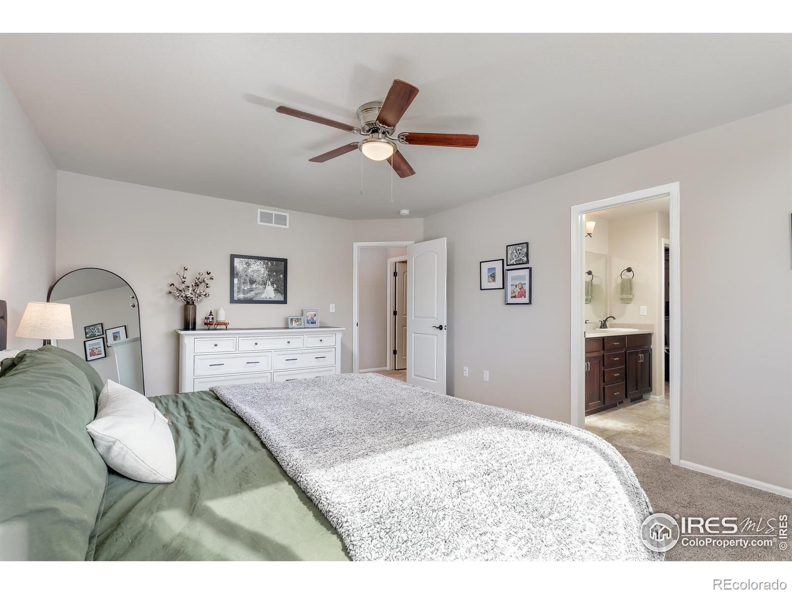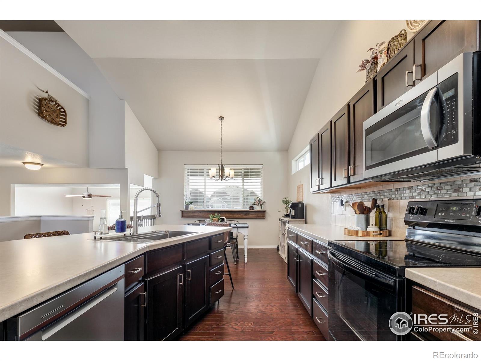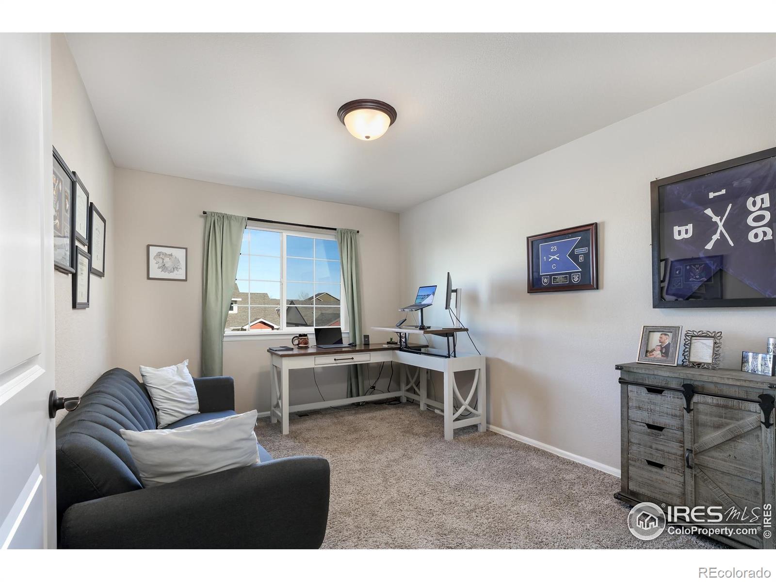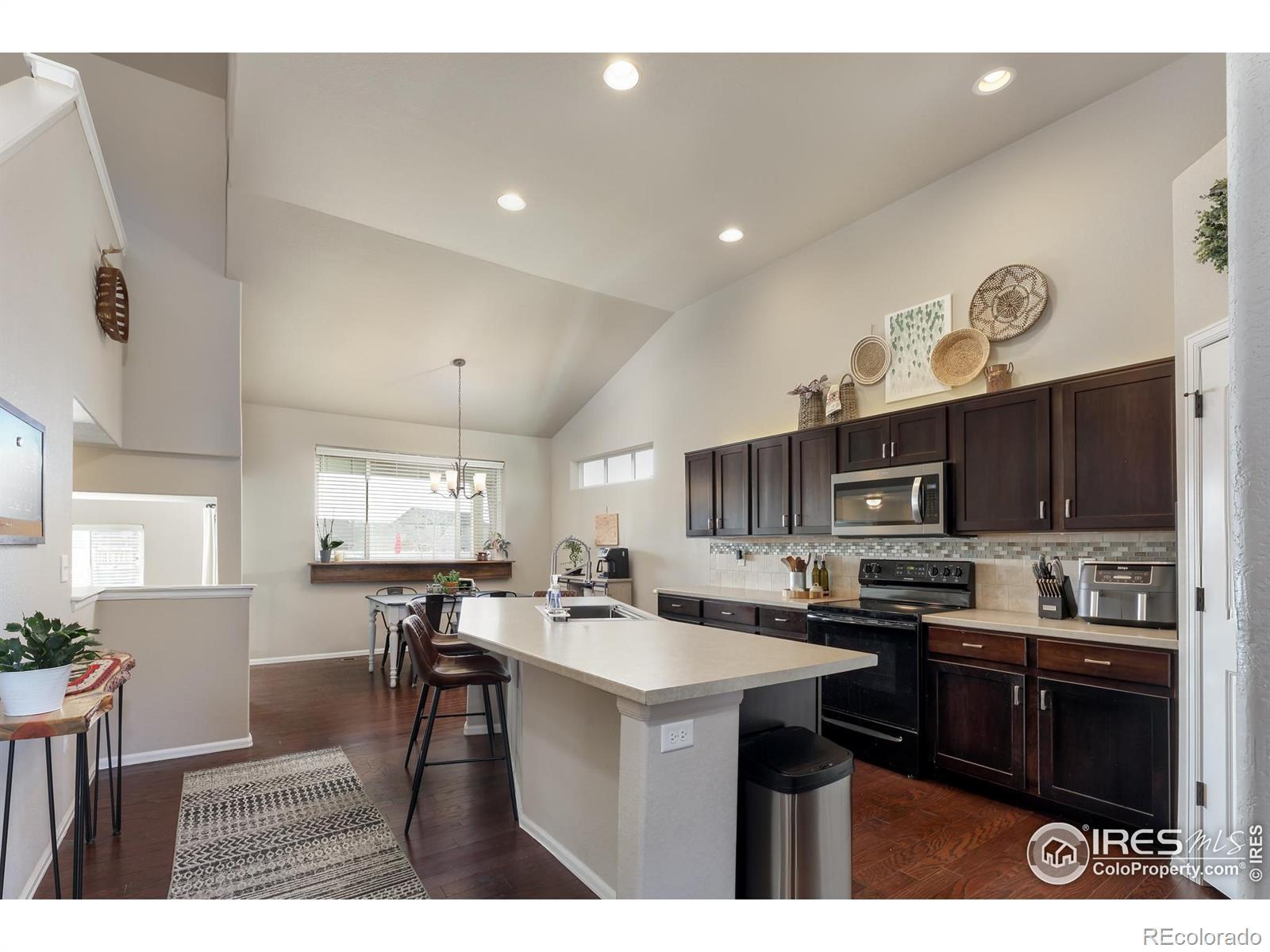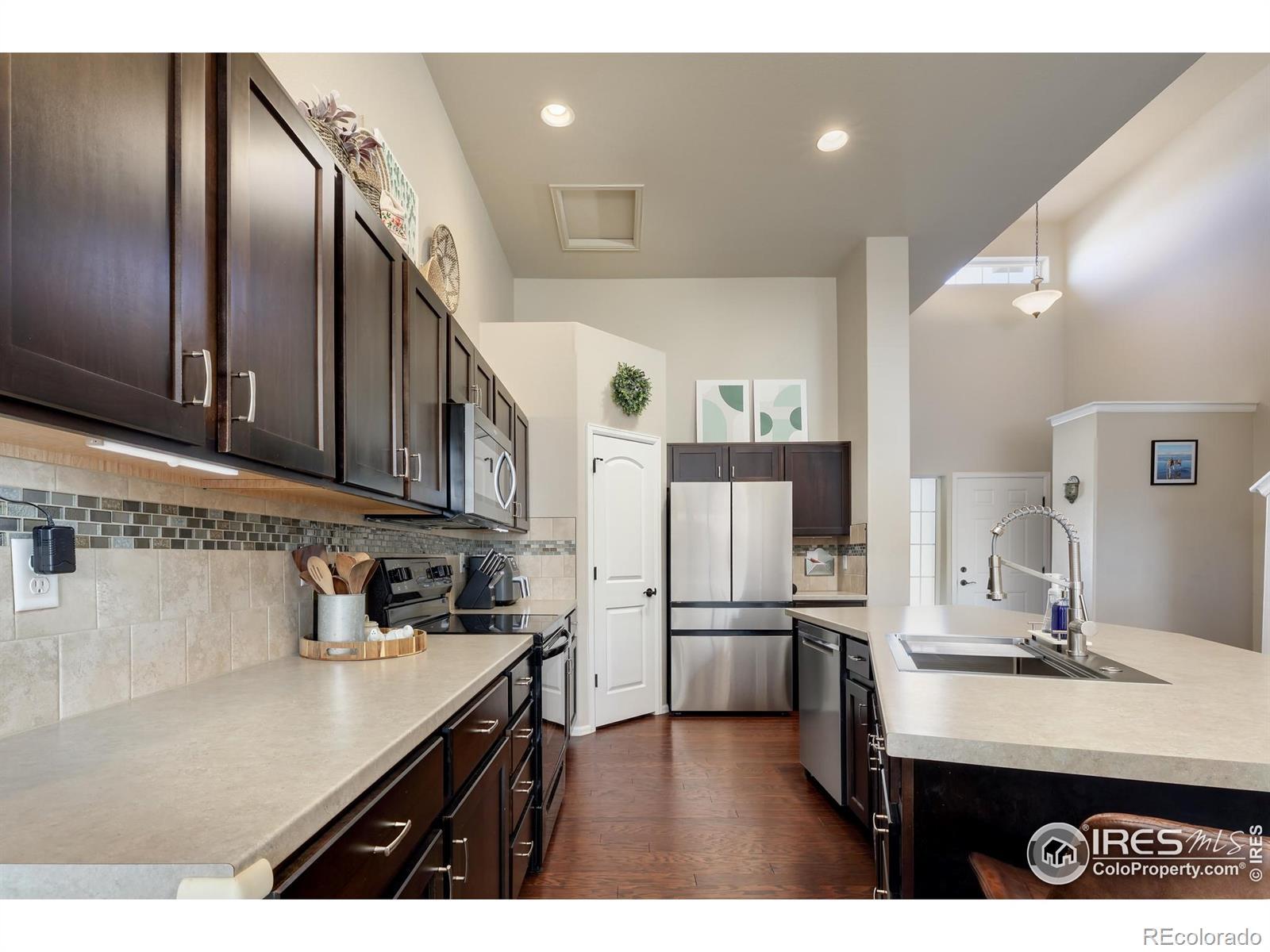 This thoughtfully upgraded home offers exceptional livability, flexible spaces, and a larger-than-typical lot with a fully fenced backyard, setting it apart from other homes in the neighborhood. The open-plan home is anchored by a sunken living room that adds architectural interest while maintaining easy sightlines to the kitchen, making it ideal for entertaining or everyday living. The chef-ready kitchen features a massive center island, abundant storage, an upgraded deep sink, and a premium appliance package that includes a Samsung Bespoke refrigerator, plus new microwave and dishwasher. The layout flows seamlessly, supporting both casual family time and hosting guests. The upper-level primary suite is a true retreat with generous space, a large walk-in closet, and private en-suite bath. The lower-level guest bedroom adjacent to a 3/4 bath with walk-in shower offers privacy for visitors or multigenerational living. Two additional upstairs bedrooms share a full bath, while a front bonus room provides flexible space for a home office, playroom, or media room. The unfinished basement offers excellent future expansion and equity potential. Outside, enjoy professional low-maintenance xeriscaping in front and an expansive backyard with covered porch-perfect for play, pets, and entertaining (deluxe playset included). An extended-depth garage provides abundant storage without sacrificing parking. Ideally located near neighborhood parks, Willow Bend Park & Natural Area, Boyd Lake, walkable schools, and just minutes from downtown Loveland, Fort Collins, and Longmont-this home delivers comfort, upgrades, and space rarely found together.