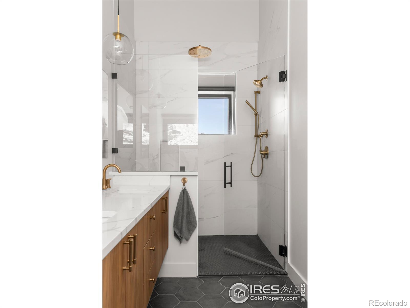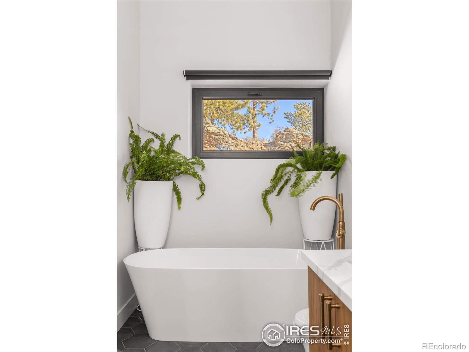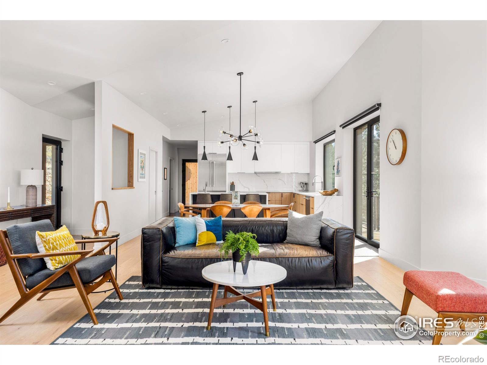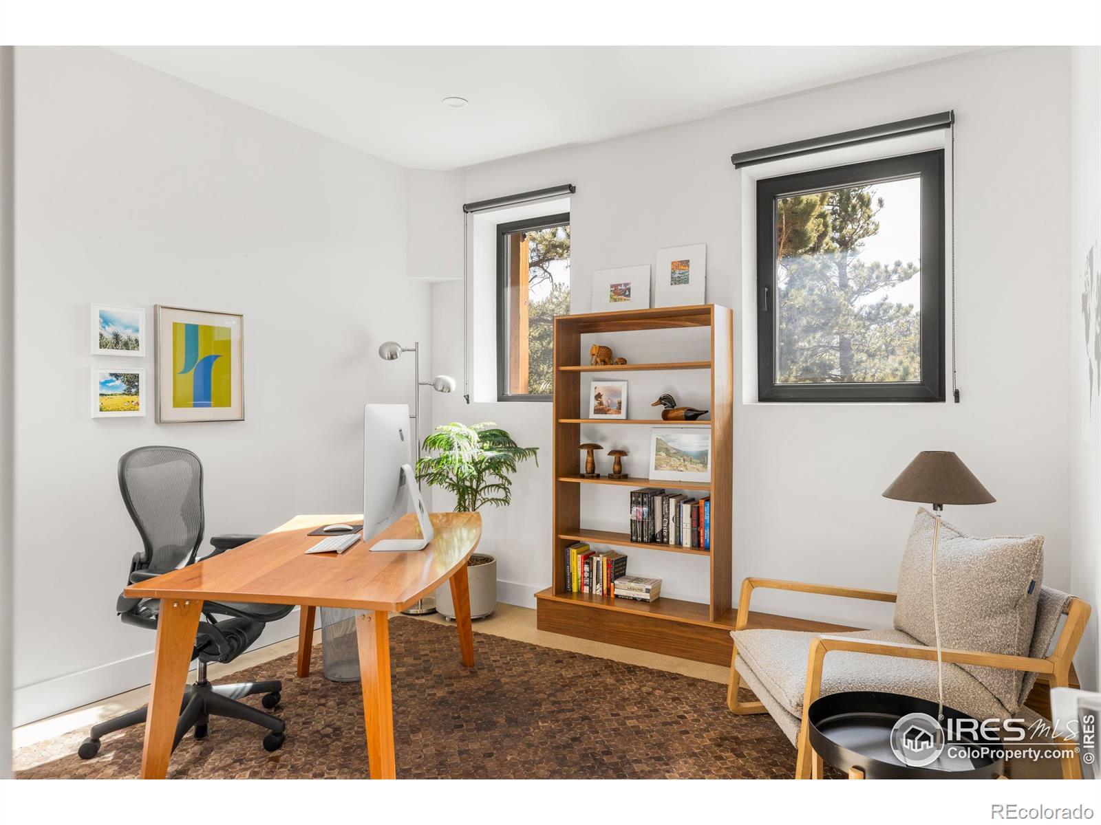Tucked into a ponderosa grove, 103 Wildewood Drive offers 4 bedrooms, 4 bathrooms, and 3,326 square feet of award-winning architecture with views of Indian Peaks Wilderness and Eldora's ski runs. Just a mile from downtown Nederland and five miles to Eldora, this Passive House Institute US certified home was named Colorado's 2023 Green Building of the Year. Triple-pane European windows, air-tight insulation, and energy recovery ventilation keep the home comfortable year-round with minimal energy use, while southern exposure maximizes natural light and solar gain. The main level flows seamlessly from kitchen to dining to living room under high ceilings, with large Alpen windows framing Indian Peaks views. A waterfall-edge island, custom wood cabinetry, and glass doors opening to the deck blur the line between inside and out. A sleek gas fireplace anchors the living area. The main-floor primary suite captures mountain views, with a walk-in closet featuring custom built-ins, a freestanding soaking tub beneath a window, a walk-in shower with dual heads facing the peaks, and radiant heat underfoot. The walk-out lower level features polished concrete floors with radiant heat, a wet bar, and a large recreation space. A private guest suite includes its own bathroom and mountain views, while two additional bedrooms share a full bathroom, offering flex space for offices or creative pursuits. A covered breezeway connects the main house to the two-car garage and doubles as a sheltered patio. The deck off the main living area captures southern exposure and panoramic views, with trails and wilderness beyond. Nederland offers authentic mountain living an hour from Denver and twenty-five minutes from Boulder, where the Peak to Peak Scenic Byway meets coffee shops, hardware stores, and weekend live music. This home is for those who want to ski in the morning, grab lunch in town, and return to a place that's welcoming, sustainable, and beautifully designed.