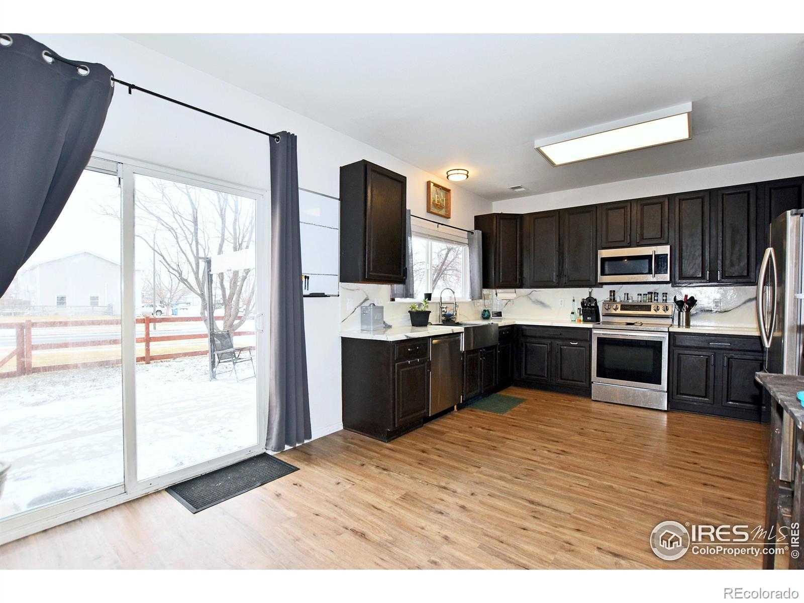 Welcome Home! This home is ready for a new adventure with its new owner. Features stainless steel appliances, 42" kitchen cabinets, and a 9' ceiling on the main level. New laminate flooring on all levels. All bedrooms are located upstairs, with the primary bedroom featuring a walk-in closet and full bath. A bright upstairs loft is a versatile space ideal for a home office, playroom, or cozy retreat. Inside, you'll love the open floor plan and abundant natural light. The attached 2-car garage offers ample parking and a shed for additional storage. Gazebo to enjoy those special moments. Enjoy the neighborhood trails. It offers quick access to I-25 and is conveniently located near all that Fort Collins has to offer.