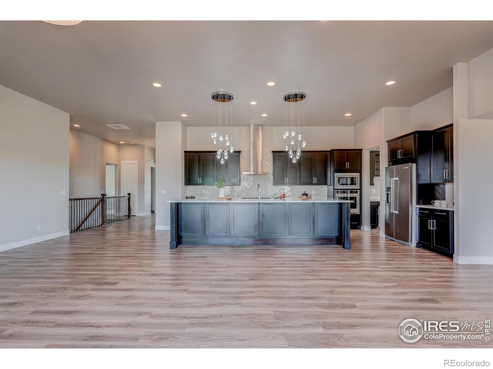Skip the wait and move right into a fully customized luxury ranch that offers EVEN MORE. This home is UNDER market value, priced at $272,000 less than what it sold for last. Set within one of Northern Colorado's premier golf course communities, this sprawling estate offers over 2,500 square feet atop a fully finished basement, totaling over 4300 finished sq ft. and is designed to capture views, light, and effortless elegance. The moment you step inside, soaring spaces and dramatic 12-foot stacking sliding doors blur the line between indoors and out, framing serene open space and rolling fairways. A grand living area centers around a statement island, bespoke lighting, and refined finishes that elevate every gathering. The kitchen is a true showpiece-featuring top-tier appliances, custom cabinetry, designer countertops, a butler's pantry, and an oversized island made for unforgettable entertainment. The great room glows with natural light and features two fireplaces, including a striking double-sided centerpiece shared with the formal dining room. Retreat to a luxurious primary suite designed for relaxation, complete with a spa-worthy bath and expansive walk-in closet. Each additional bedroom and bath has been thoughtfully curated for comfort and style. The garden-level lower level is equally impressive, offering a bright, open entertaining space with a wet bar and generously scaled rooms that feel anything but below grade. Outside, your private backyard oasis overlooks protected open space-offering a peaceful, panoramic backdrop for sunset evenings and lively gatherings alike. With extensive upgrades and designer-level finishes throughout, this home delivers the prestige of golf course. Life here extends beyond your front door. The community centers around a family-friendly pool and welcoming clubhouse, with local dining just steps away. Just nearby, Hoe Down Hill provides year-round adventure-from winter sledding and skiing to summer fun for all ages.