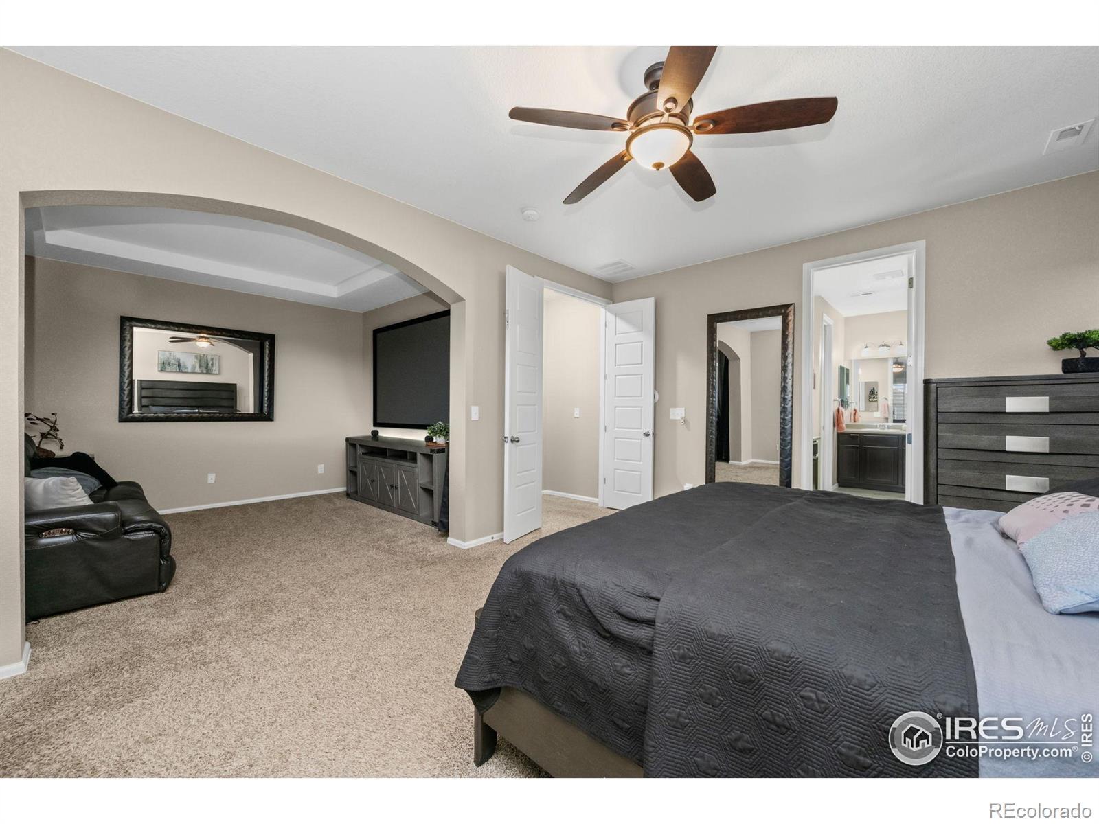 Welcome to one of the largest homes available in the highly sought-after Timnath Ranch community. Located in the exclusive Summerfield Estates at Timnath Ranch, this beautifully designed residence offers 5 beds & 5 baths. The main level offers a dedicated office, a private guest suite complete with its own full bath-perfect for extended family or visiting guests. At the heart of the home is the great room with soaring ceilings plus the gourmet kitchen designed for both daily life & entertaining. Upgrades include stainless steel dual ovens, a five-burner gas cooktop with downdraft hood, & a large central eat-in island. A secondary prep island, walk-in pantry & appliance station add to its versatility. Upstairs, you'll find a generously sized primary suite featuring a private sitting area-ideal for a cozy retreat, nursery, or office. Three additional upstairs bedrooms each include their own ensuite bathrooms & large closets, creating comfortable & private living spaces for all. Step outside to enjoy the covered front & back patios, a professionally expanded back patio area, & a backyard that backs to a greenbelt. The home also features a 3-car garage & a full unfinished basement with modular walls already in place for flexible, immediate use or future expansion. Residents of Timnath Ranch enjoy access to premier neighborhood amenities, including the main clubhouse, resort-style pool with waterslides & splash features & a growing network of trails now connected to the Poudre Trail system. As one of Northern Colorado's most popular communities, Timnath offers the best of both small-town charm & modern conveniences. Don't miss your opportunity to own a rare & spacious home in one of Timnath's most established and amenity-rich neighborhoods. Seller offering a $5000 carpet allowance!