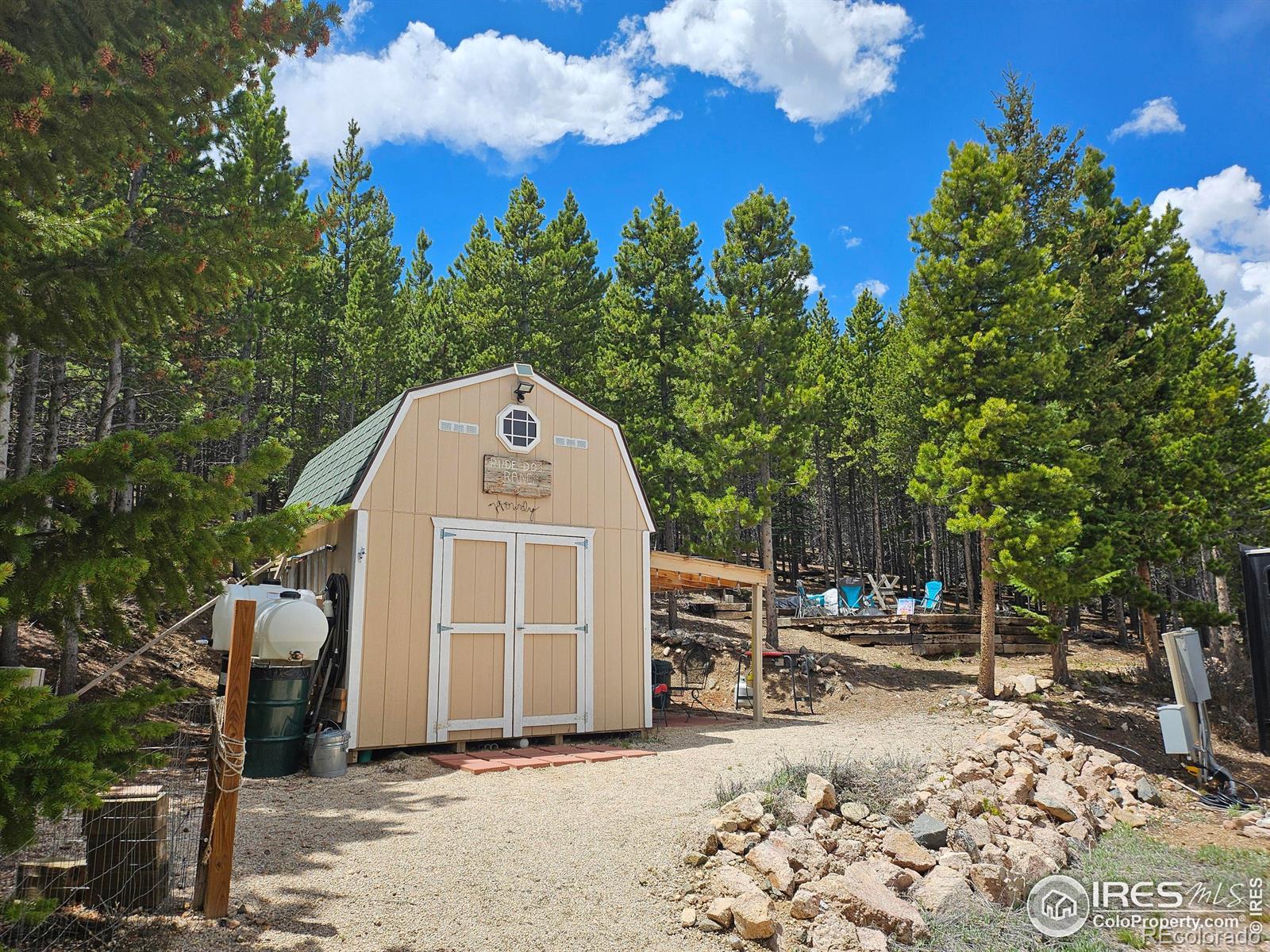 Welcome to your own private mountain retreat! Whether you want a quiet get away to relax or entertain guests, this property has it all! Only an hour from Fort Collins, this turn key camping oasis has so much to offer! The shed is wired with power, has a work bench, 2 refrigerators, a loft, as well as a covered patio. Next to that, is an approved fire pit and seating area. There's plenty of room to park your own camper and hook up power and water. Or you can purchase the one shown for an additional negotiable cost. Below that is another seating area, or tent camping spot, and a covered bar. There is a 1,200 gallon Cistern that has been thoughtfully modified for easy access to have it filled. There is a full septic system and leach field permitted for a 2bed/1bath residence. The main camping area is fully fenced in. The Porta Potty is staying. The driveway has new gravel and a gate for added security. Bring your fishing poles! This property allows access to 6 stocked private lakes. Call and setup your private showing today!