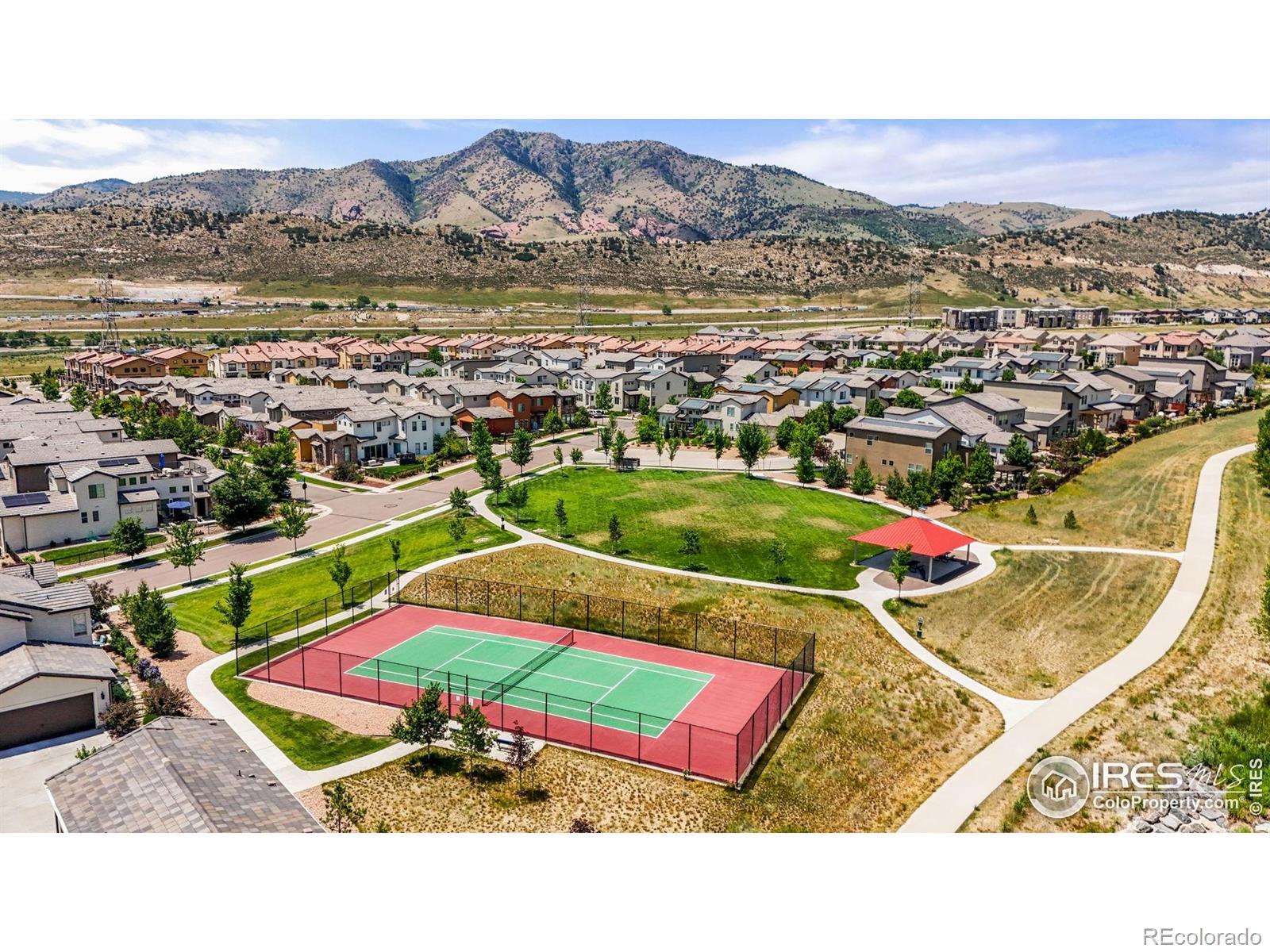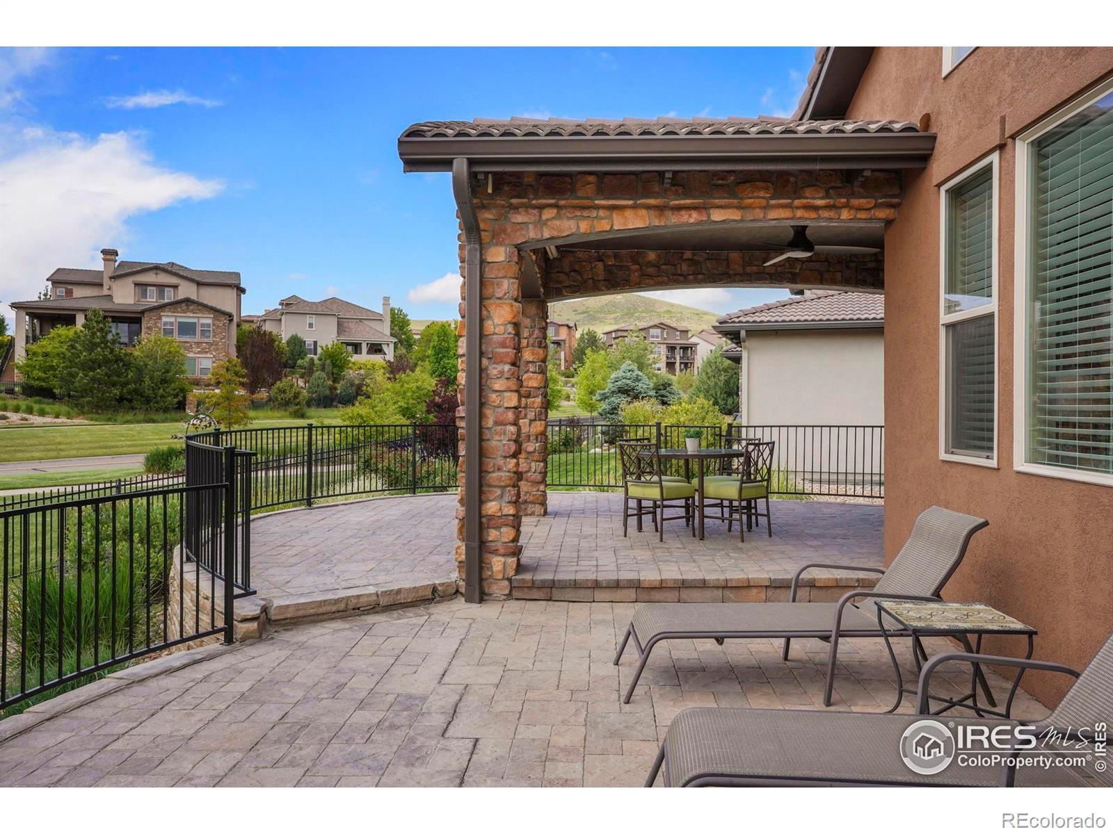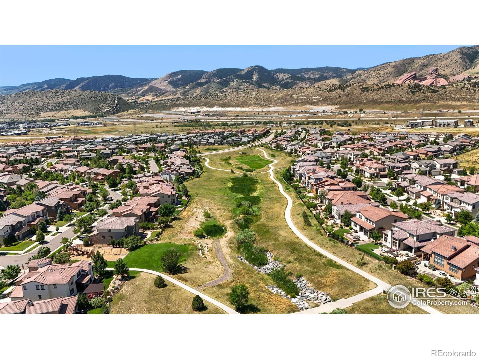 NOT YOUR AVERAGE RANCH-THIS ONE'S GOT SOUL (AND SOLAR!). Tucked in a quiet Solterra cul-de-sac with panoramic foothill views, this thoughtfully designed "tall ranch" blends functionality, sustainability, and style in all the right ways. Exceptional flow. Impeccable maintenance. Low-maintenance living inside and out. Energy efficiency is a core tenet of this home: a closed-loop GEOTHERMAL system for heating and cooling, 24 active SOLAR roof panels, energy-efficient lighting, no-water turf, and more. The gas and electric bills for this home are miniscule. The oversized stone patio offers front-row seats to mountain-view sunsets, while the mature, xeriscaped landscaping and greenbelt backing make every Colorado season feel special. At the heart of it all? A kitchen built for connection-featuring alder cabinetry, neutral granite, a walk-in butler's pantry, and seamless flow into the formal dining room. High ceilings, hickory wood floors, classic finishes, and oversized doors create a space that's warm, welcoming, and timeless. Need room to spread out? The finished basement is light, bright, and ready for guests, teens, or quiet movie nights-complete with two bedrooms, a full bath, spacious family room, and loads of storage. And because every detail matters: insulated garages (with 8' overhead doors!), a southeast-facing driveway for quick snow melt, and smart, solid construction from top to bottom. This home isn't just well-built. It's well-loved, well-planned, and ready for you. Welcome home.