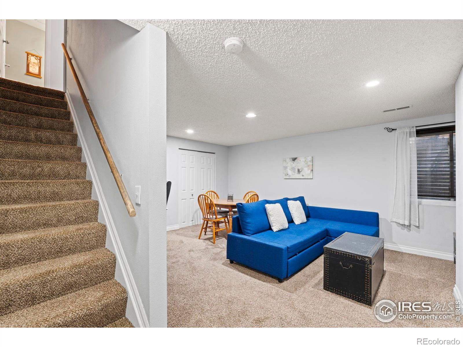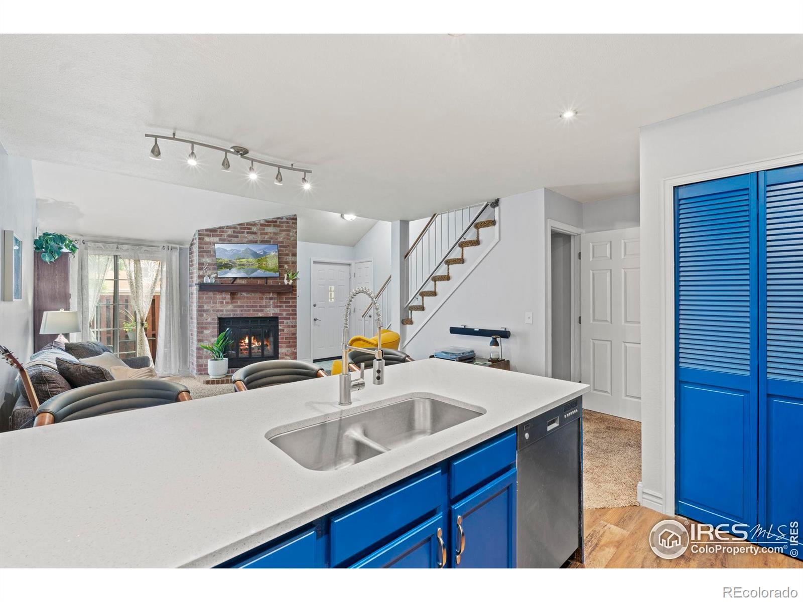 This Thornton townhome checks all the boxes for first-time buyers or anyone craving low-maintenance living. Tucked just off I-25 for easy commuting to Denver, it offers convenience and comfort in one stylish package. Step inside to find a bright, open main level featuring a cozy wood-burning fireplace, a guest-friendly half bath, and a cheerful kitchen with bold blue cabinets, stainless appliances, and a vibrant tile backsplash. The private back patio is your perfect little escape for morning coffee or winding down after work. Upstairs, you'll find a spacious bedroom with vaulted ceilings and a full bath. Head downstairs to the finished basement, where the second bedroom, another full bath, and a versatile rec space give you options-movie nights, a home office, guests, or even a roommate setup. Bonus: a private garage means no more brushing off snow in the winter. With fresh, playful finishes and a smart layout that lives large, this home has everything you need and nothing you don't. Don't miss virtual tour!