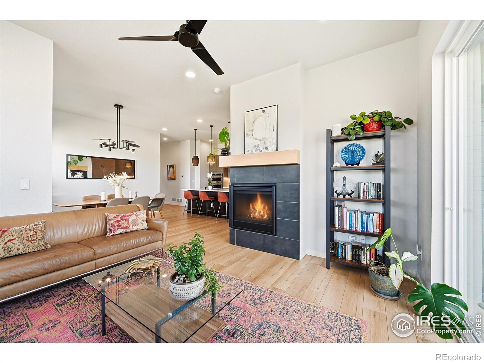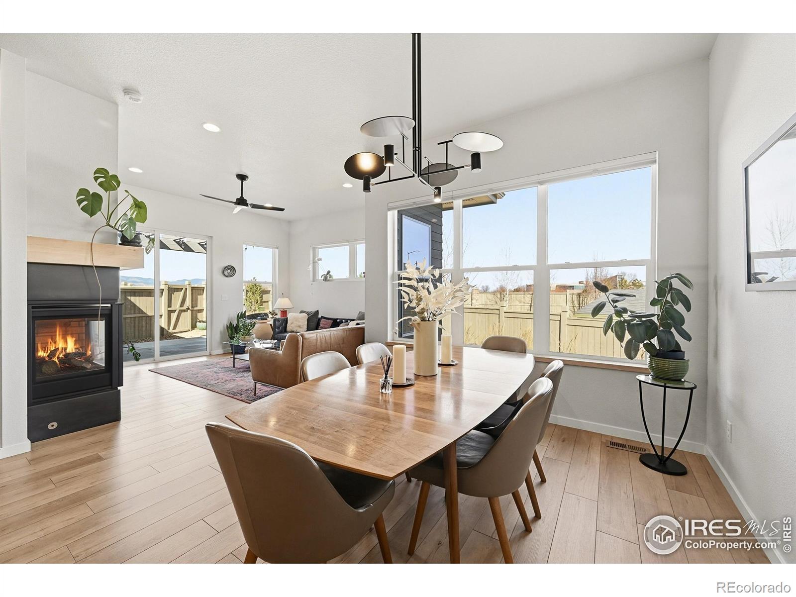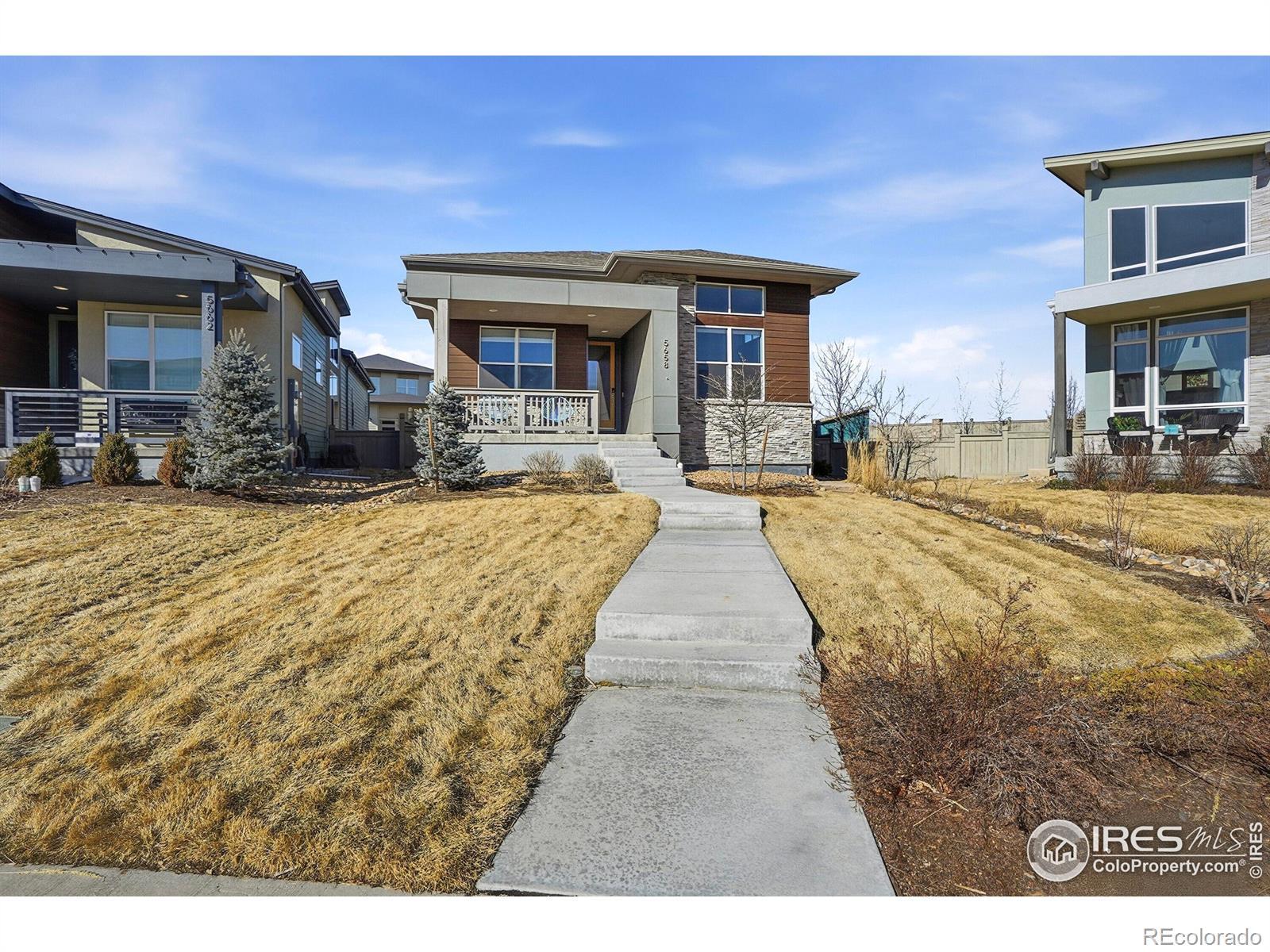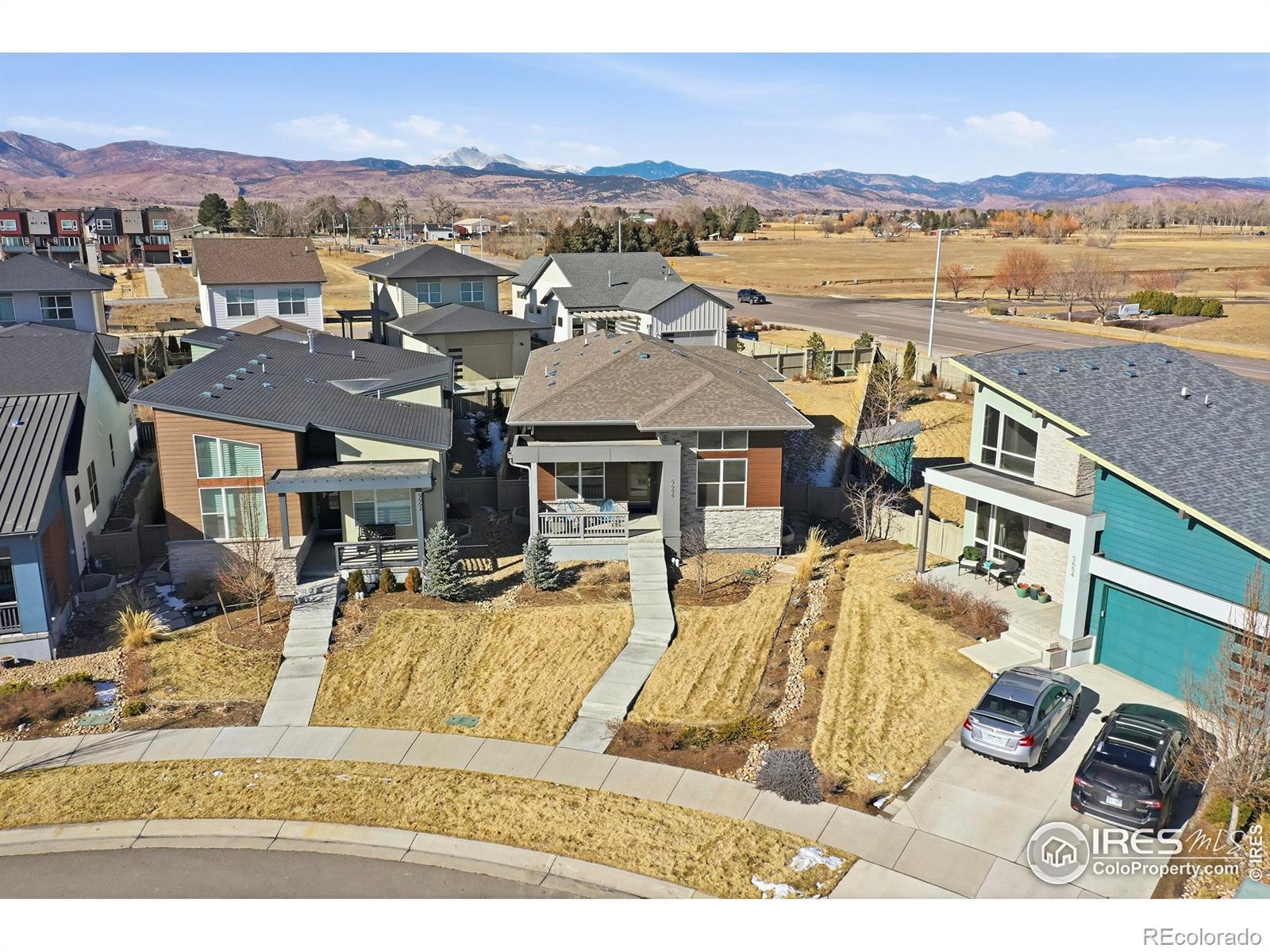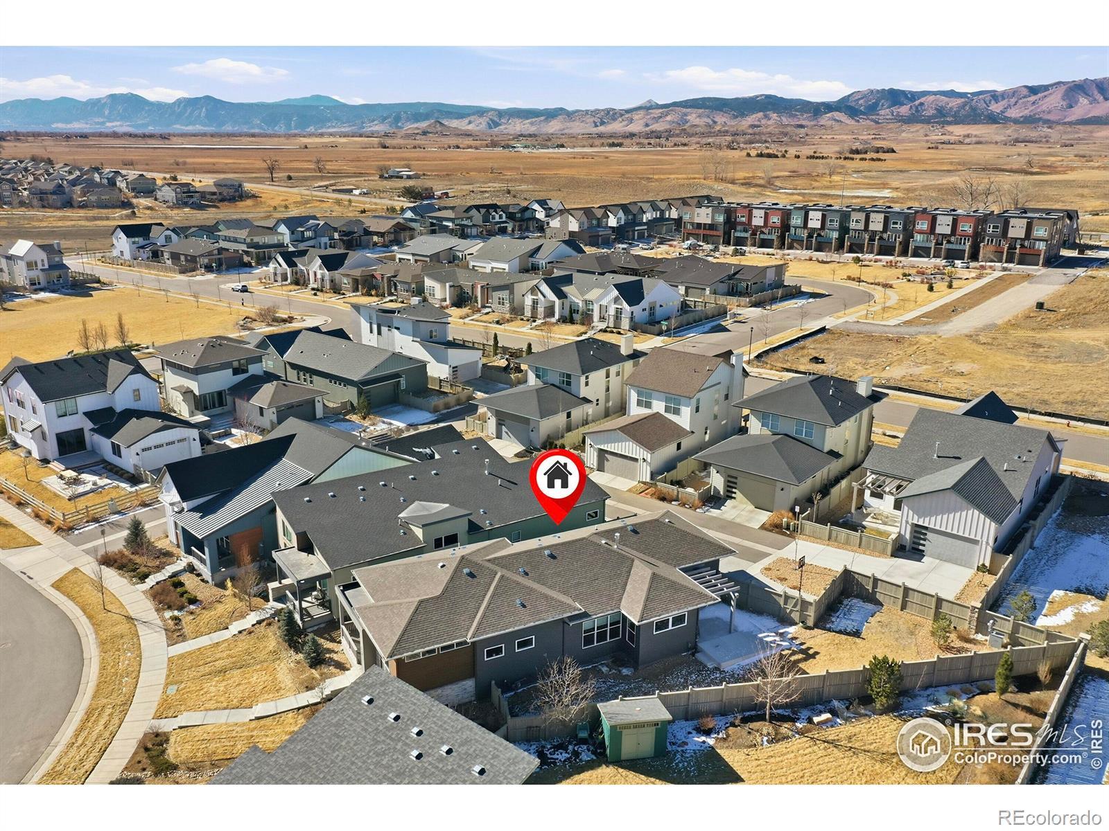 Modern Ranch Living with Longs Peak Views on a spacious .18-Acre Lot. Welcome to this stunning ranch-style single-family home, perfectly positioned on one of the larger lots in West Grange with mountain views and added privacy. Designed with a modern aesthetic and impeccable attention to detail, this home offers light-filled living spaces, soaring 10 ft high ceilings, and beautiful (engineered vinyl EVP) flooring throughout the main level. The open-concept floor plan creates a seamless flow between the living, dining, and kitchen areas - ideal for both everyday comfort and entertaining. A stylish corner gas fireplace anchors the great room, adding warmth and architectural interest. The home's contemporary interior finishes and clean, sophisticated design elevate every space. The primary suite (with automatic shades on all windows) is complete with a private and luxurious primary bath. The fully finished light filled basement with high ceilings expands your living options with a spacious family / rec room, an additional bedroom, and a full bathroom - perfect for guests, a home office, or multi-generational living. In excellent like new condition and truly move-in ready, this modern ranch offers the perfect blend of comfort, outdoor living space, and stunning Colorado views. A Community Park is a block away and a great western Longmont community, with easy access to Boulder. Cycling is a dream in this west Longmont location!