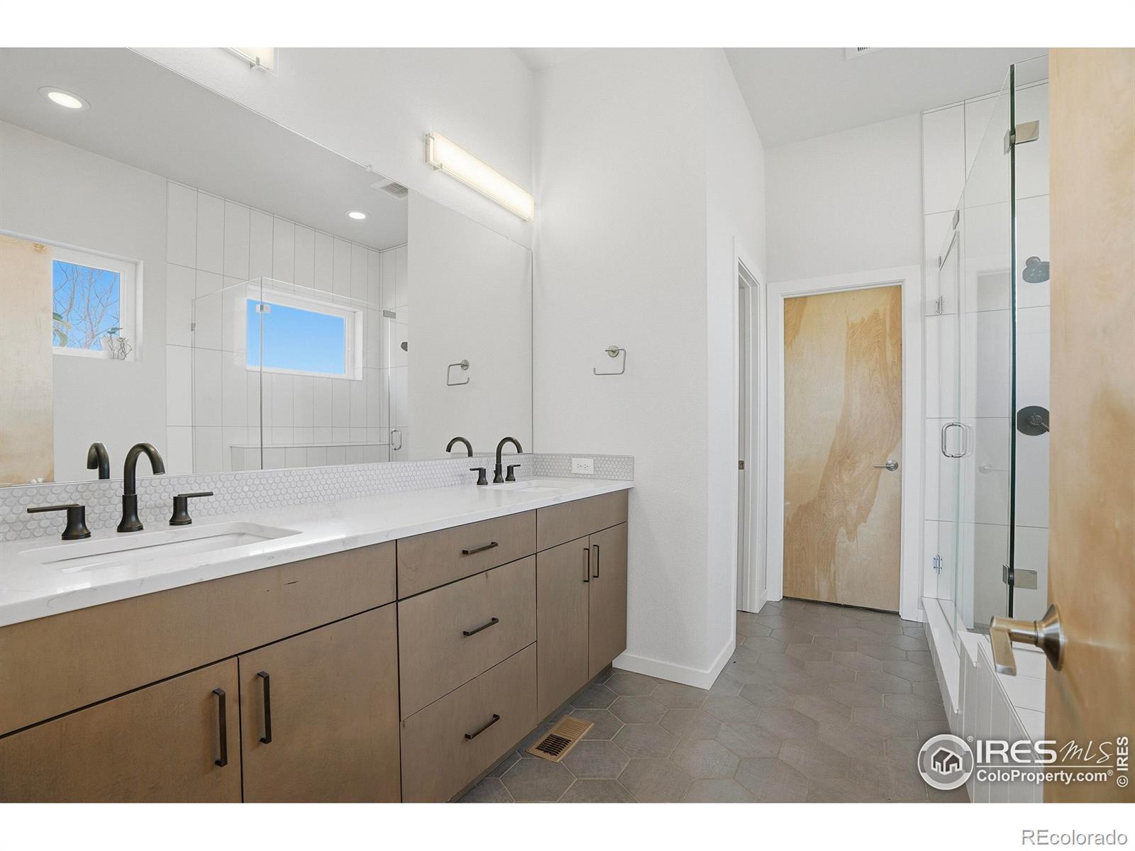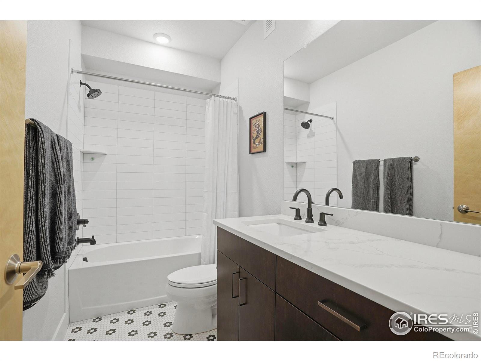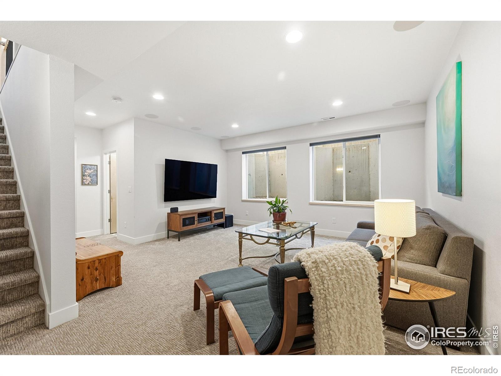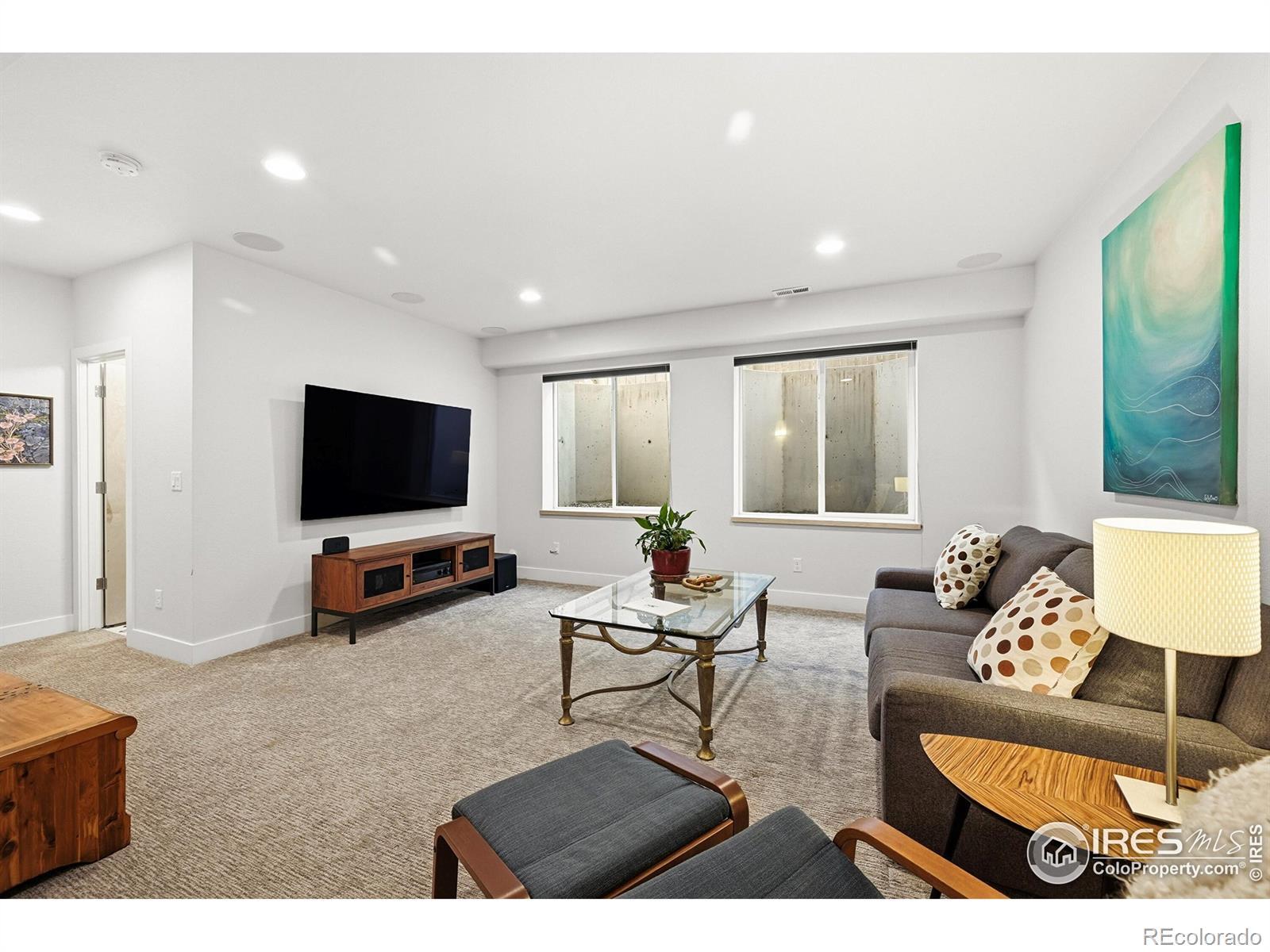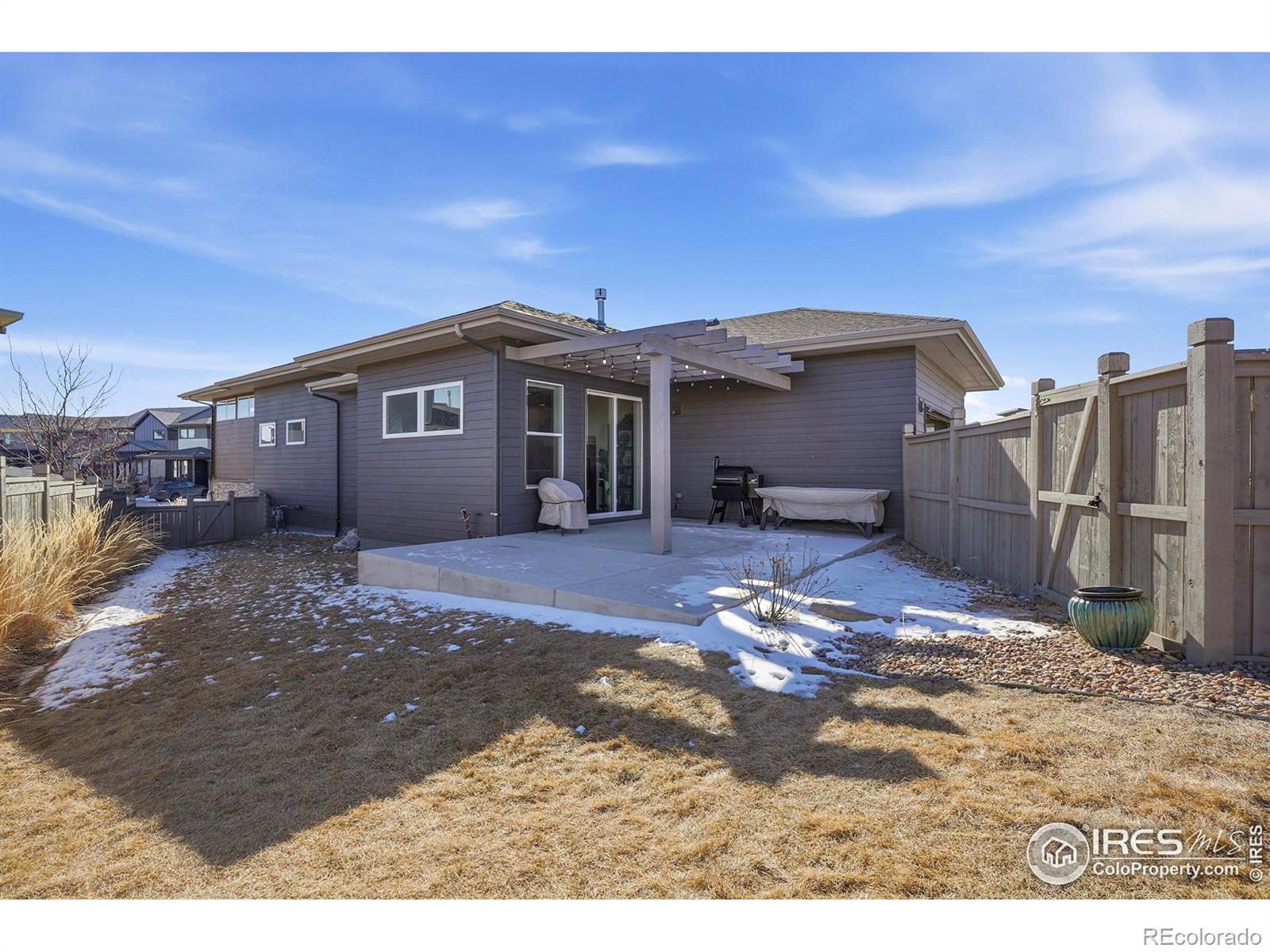 Modern Ranch Living with Longs Peak Views on a spacious .18-Acre Lot. Welcome to this stunning ranch-style single-family home, perfectly positioned on one of the larger lots in West Grange with mountain views and added privacy. Designed with a modern aesthetic and impeccable attention to detail, this home offers light-filled living spaces, soaring 10 ft high ceilings, and beautiful (engineered vinyl EVP) flooring throughout the main level. The open-concept floor plan creates a seamless flow between the living, dining, and kitchen areas - ideal for both everyday comfort and entertaining. A stylish corner gas fireplace anchors the great room, adding warmth and architectural interest. The home's contemporary interior finishes and clean, sophisticated design elevate every space. The primary suite (with automatic shades on all windows) is complete with a private and luxurious primary bath. The fully finished light filled basement with high ceilings expands your living options with a spacious family / rec room, an additional bedroom, and a full bathroom - perfect for guests, a home office, or multi-generational living. In excellent like new condition and truly move-in ready, this modern ranch offers the perfect blend of comfort, outdoor living space, and stunning Colorado views. A Community Park is a block away and a great western Longmont community, with easy access to Boulder. Cycling is a dream in this west Longmont location!