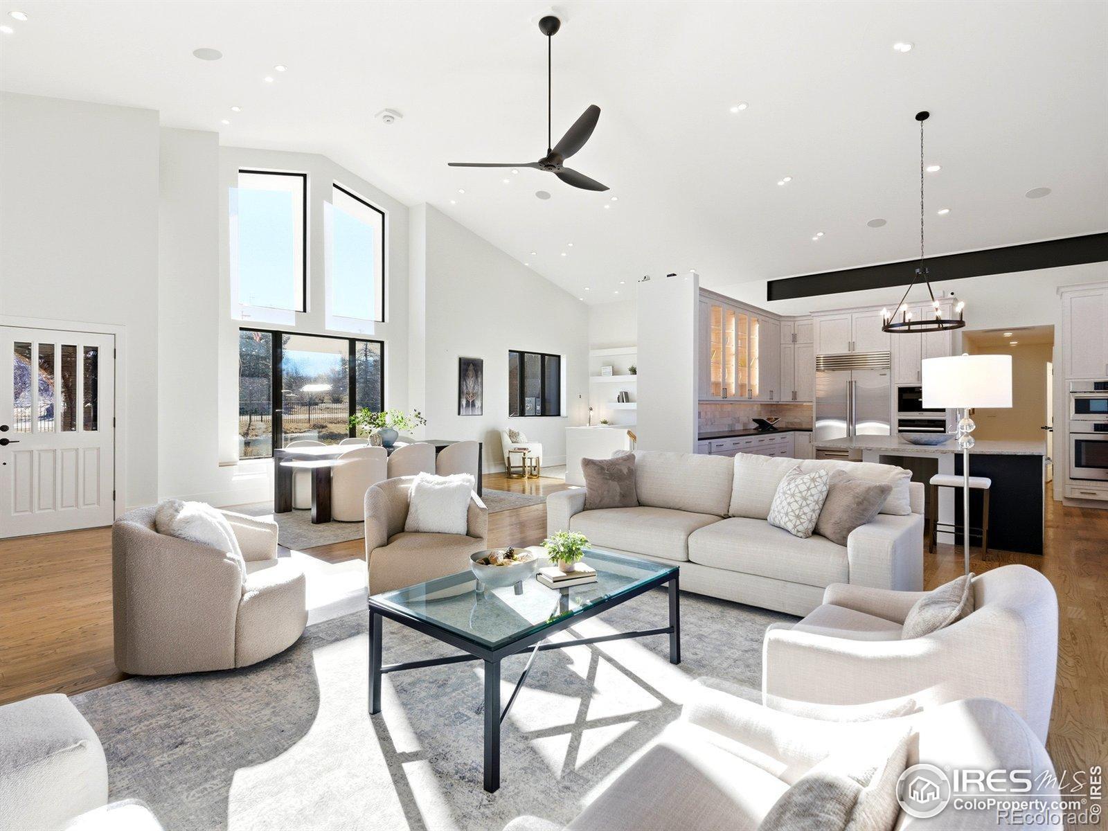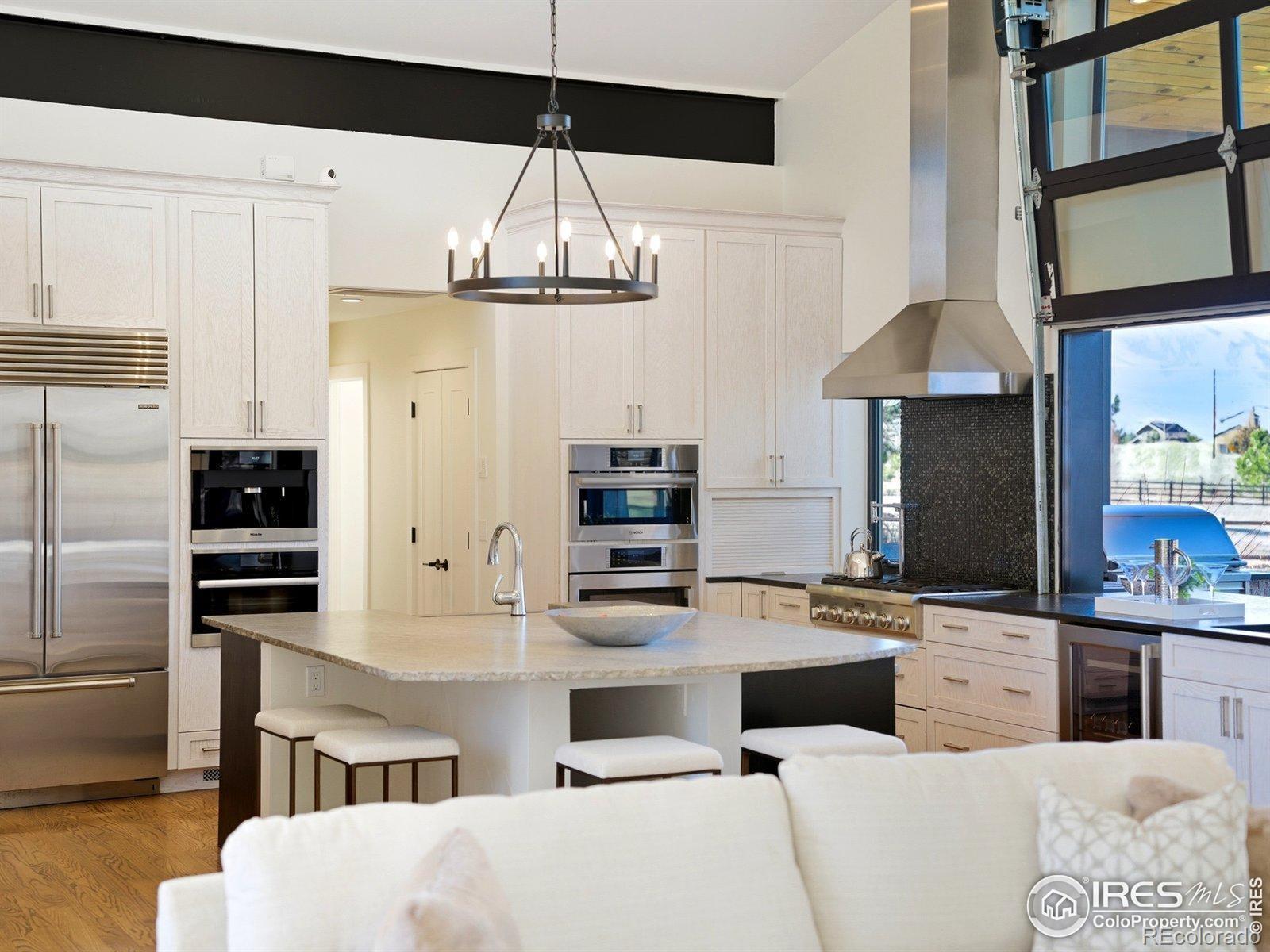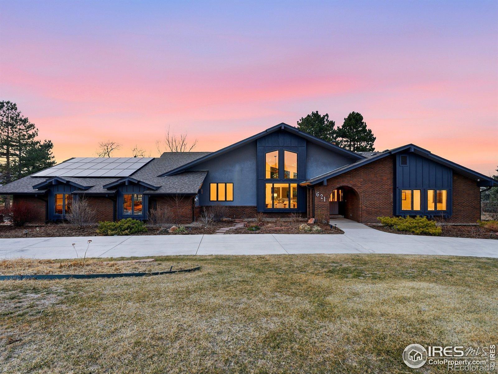 Main level living, STUNNING views, and 1.5 fully fenced acres just minutes from downtown Boulder! This private retreat delivers the rare balance of space, sunlight, and seamless indoor-outdoor living with breathtaking views of the Flatirons. Vaulted ceilings and thoughtfully placed windows bask the home in natural light, creating bright, open spaces that feel warm, airy, and connected to the landscape. The main-level primary suite offers effortless single-level living, while expansive gathering areas flow naturally for both quiet mornings and lively evenings with friends. At the heart of the home is the kitchen, a true culinary experience featuring Thermador, Miele, Sub-Zero, and Bosch appliances, leathered and honed granite surfaces, and a motorized lift-up servery window that opens at the touch of a button-blurring the line between inside and out and connecting directly to the patio bar. A Lynx outdoor kitchen, a vast covered patio complete the outdoor entertaining spaces. Whole-home Sonos sound system and RadioRA Lutron lighting allow you to set the mood from day to night as you wish. High-performance systems elevate everyday comfort and efficiency, including geothermal heating and cooling, radiant in-floor heat, steam humidification, dual whole-house fans, an 80-gallon high-efficiency hot water system, whole-house filtration, and a 19kW owned solar array for near-zero energy costs. The lower level offers a media and recreation retreat, along with a fully permitted guest suite with private entrance. The guest suite has strong short-term rental history for those seeking additional income and is also perfect for multigenerational living. Equestrian zoning allows for up to two horses, well irrigation, and a loafing shed. Four-car garage with EV charging, easy access to trails, transit, and Boulder amenities complete the lifestyle. Big skies. Incredible light. Mountain views. Room to breathe. Colorado living-done right!