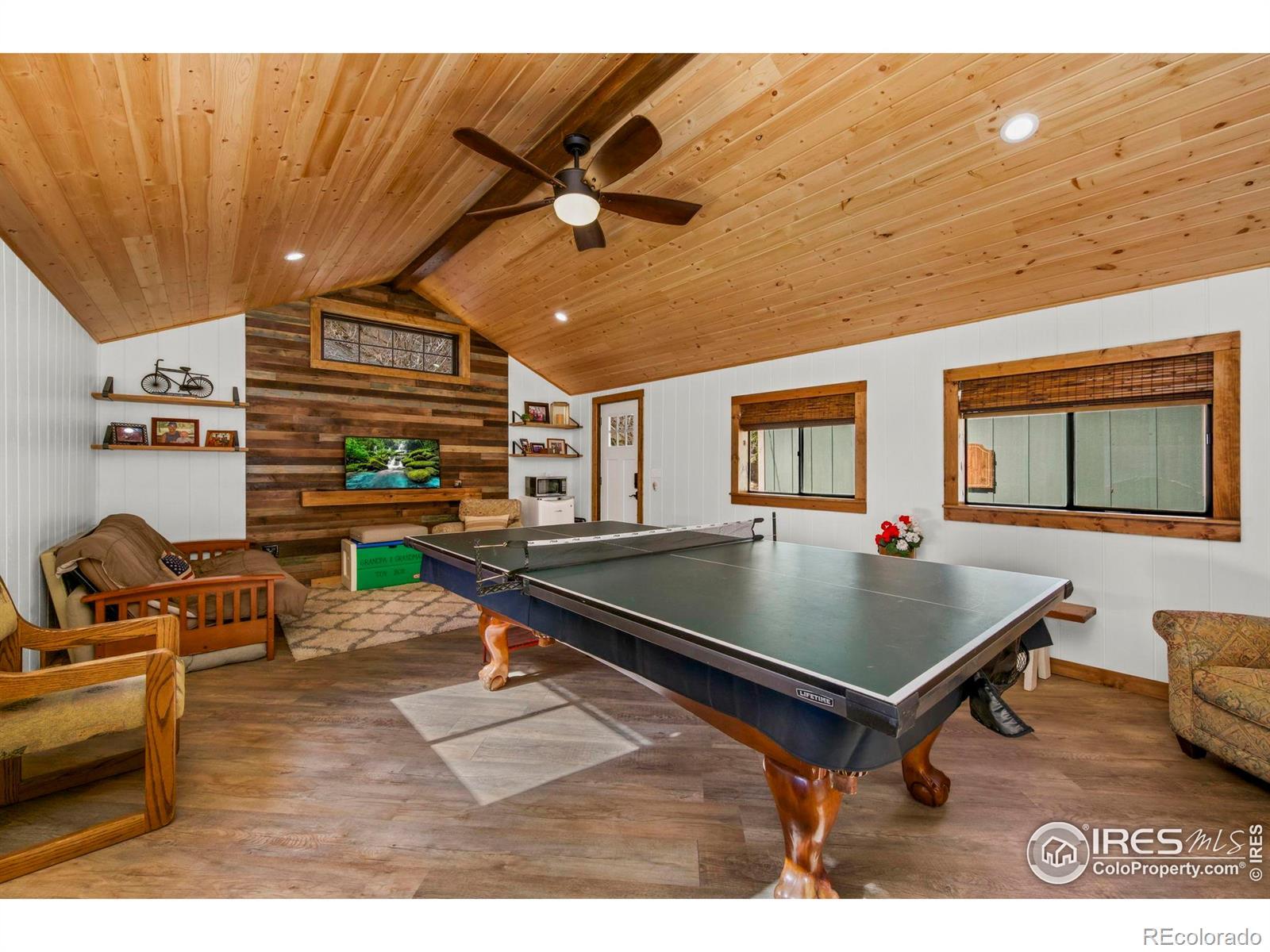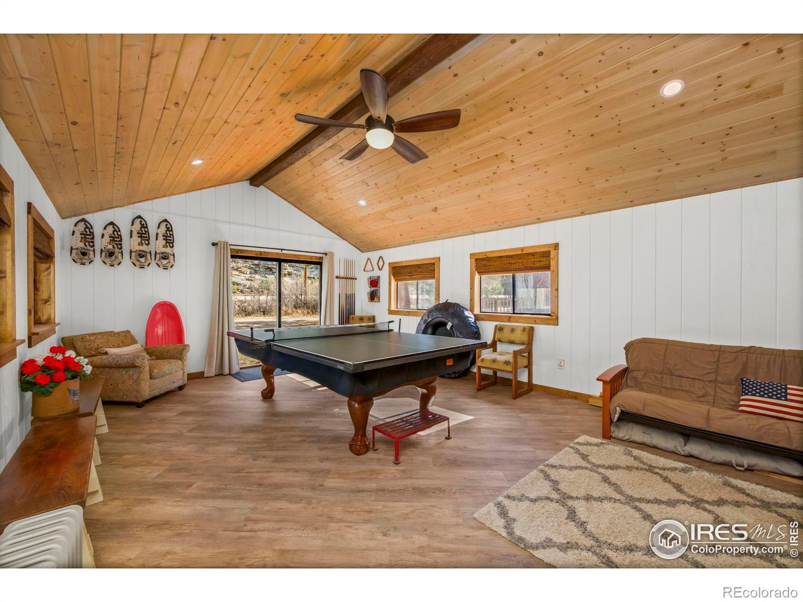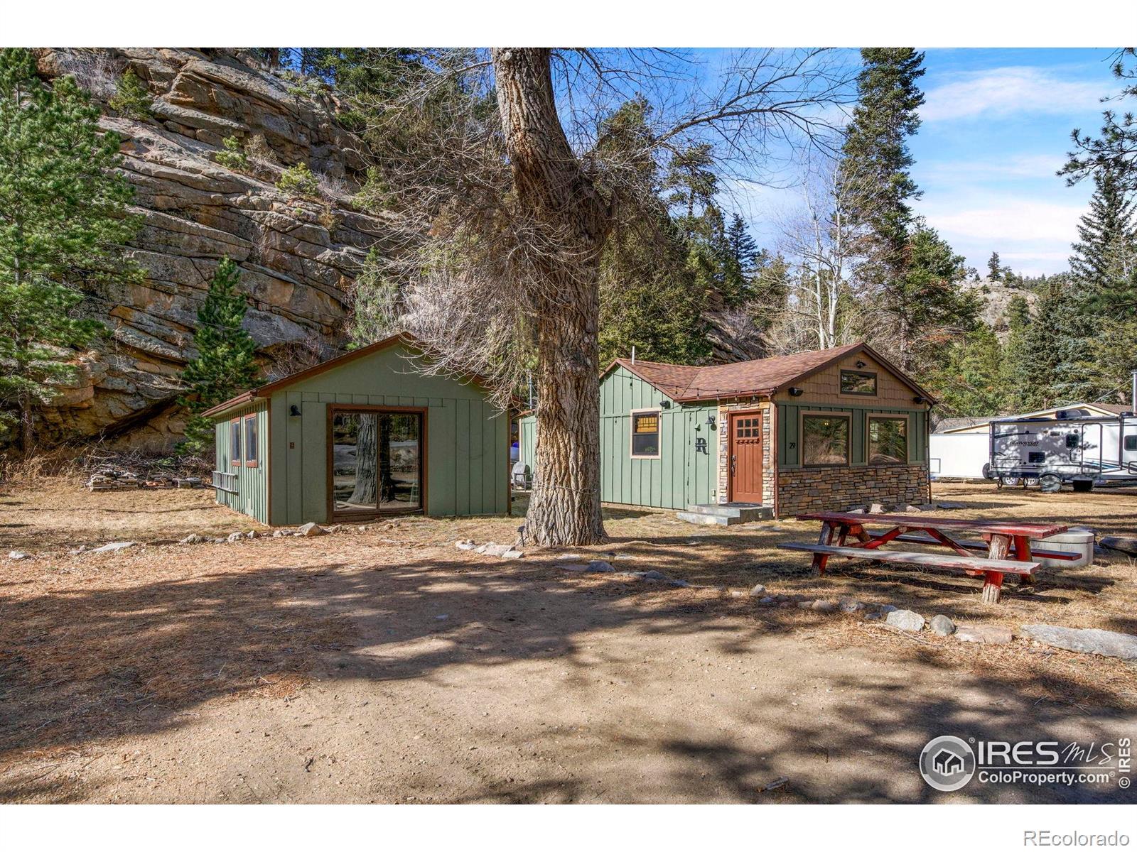 Enjoy the beauty of the Rocky Mountains and the trout filled Big Thompson River in this newly remodeled cabin situated just 1 mile from Estes Park. Located on a rare 2 1/2 lots and featuring a fully functioning modern kitchen with solid surface countertops, dishwasher, comfortable seating, large island, and beautiful scenic views. Outdoor features include additional storage, a fire pit, picnic table, and Adirondack chairs overlooking the tumbling river! Designed with quality, efficiency, and comfort in mind, the home blends upscale finishes with the tranquility of the river just steps from your door. Enjoy peaceful mornings and unforgettable wildlife encounters, all while relaxing in a beautifully updated "Pottery Barn" interior. The 3-season recreation room adds a flexible entertaining space perfect for unwinding. Energy-efficient construction keeps utilities low, thanks to a high-efficiency boiler and superior insulation. Additional features include a 2,000-gallon septic vault and a well-lit, easy-access crawl space for extra storage. A rare opportunity to own a fully remodeled riverfront sanctuary with modern efficiency and exceptional appeal just minutes to Estes. Being offered fully furnished.