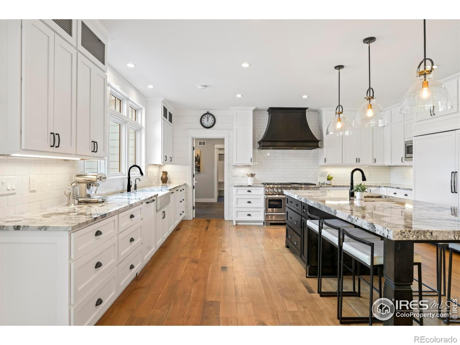 Tucked on over a half an acre in Boulder's prestigious Moores neighborhood, this masterfully designed estate built in 2018 offers the pinnacle of luxury living. At the heart of the residence is a designer kitchen showcasing top-tier finishes, expansive prep space, and seamless flow perfect for both intimate family living and large-scale entertaining. Seven spacious bedrooms featuring a sumptuous primary suite designed as a personal sanctuary with spa-like character. The home also offers two offices for remote work, a versatile flex room, and a lower level complete with a big-screen media room, sleek bar and wine cellar, and a dry heat sauna for elevated wellness. Step outside to your own private backyard oasis enclosed by 8-foot fencing and anchored by a swimming pool, hot tub, sport court, gas firepit, and built-in BBQ area. Additional amenities include a 4-car heated garage with an extra storage closet, a 10.5 kW solar array, in-floor heating, large garden shed, and a 4-stage whole-house water filtration system. This is a rare opportunity to own one of Boulder's most exceptional homes where performance, elegance, comfort, privacy and timeless design perfectly intertwine.
