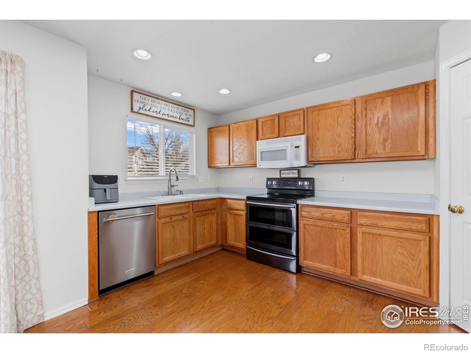 Welcome to this spacious 5-bedroom, 4-bath home nestled on a corner lot in desirable northwest Loveland. With a fully fenced yard and multiple living areas, this home offers comfort, functionality, and room to grow. The main level features formal living and dining rooms, perfect for entertaining, along with a generous family room centered around a cozy gas fireplace. The kitchen includes hardwood floors, stainless steel appliances, and convenient access to the backyard-ideal for indoor-outdoor living. Upstairs, the primary suite offers a peaceful retreat with an en suite bath. Three additional bedrooms and a large loft provide plenty of space for family, guests, or a home office. The finished basement expands your living options with a spacious rec room, three-quarter bath, and a private fifth bedroom-perfect for visitors or multi-generational living. With three distinct living areas-the living room, family room, and upstairs loft-this home offers flexibility for everyday living and entertaining. Conveniently located near parks, schools, and all that Loveland has to offer, this home combines space, style, and a sought-after location.