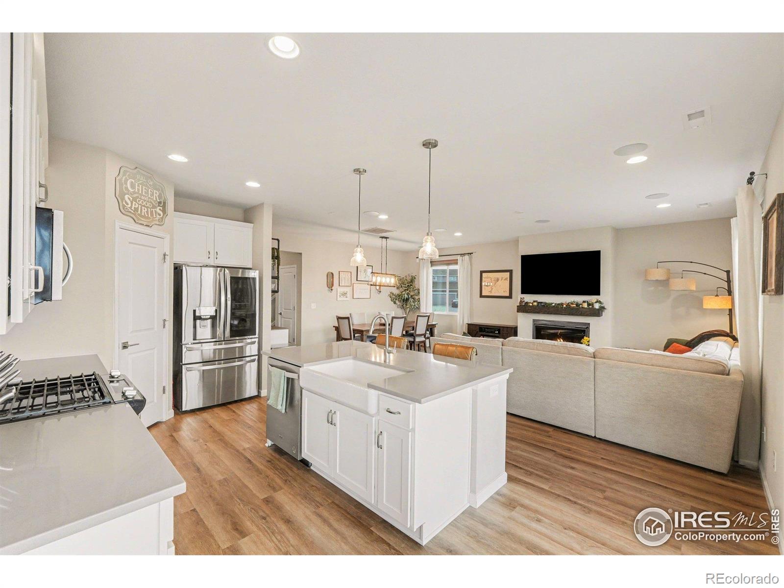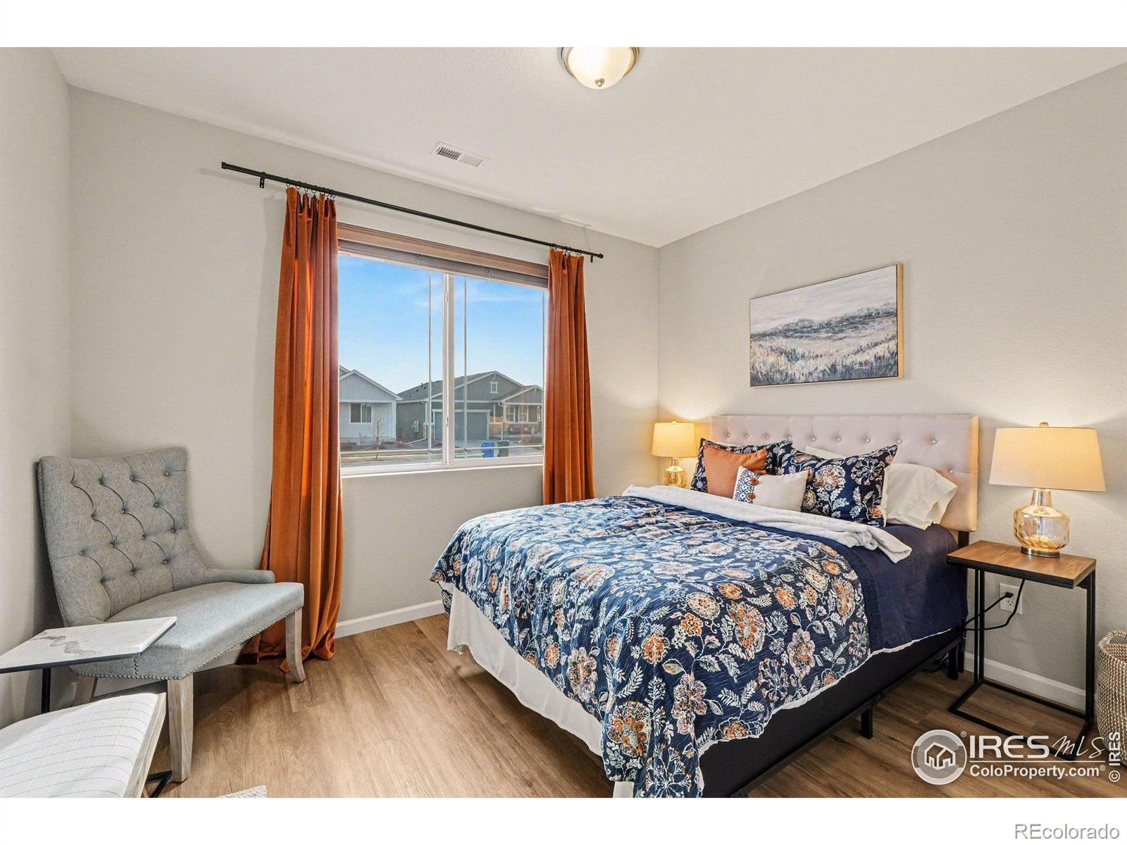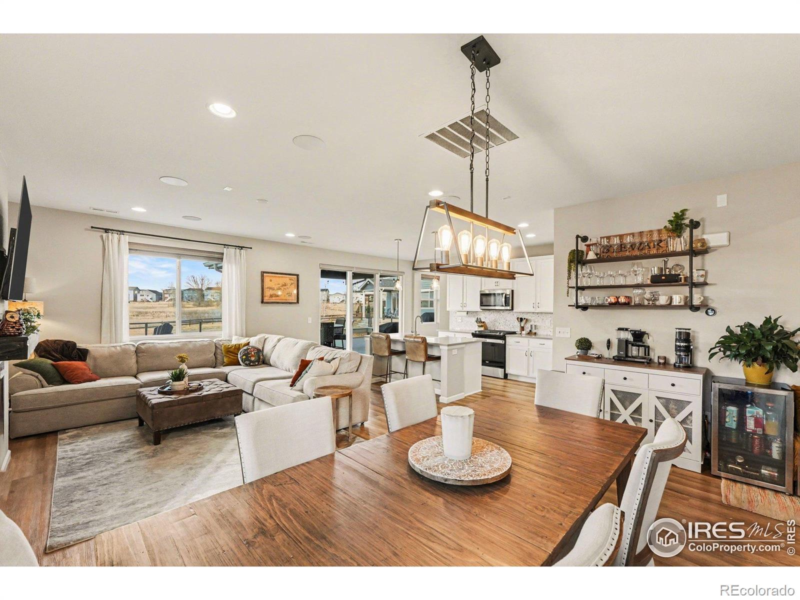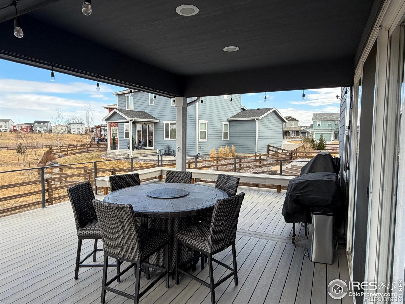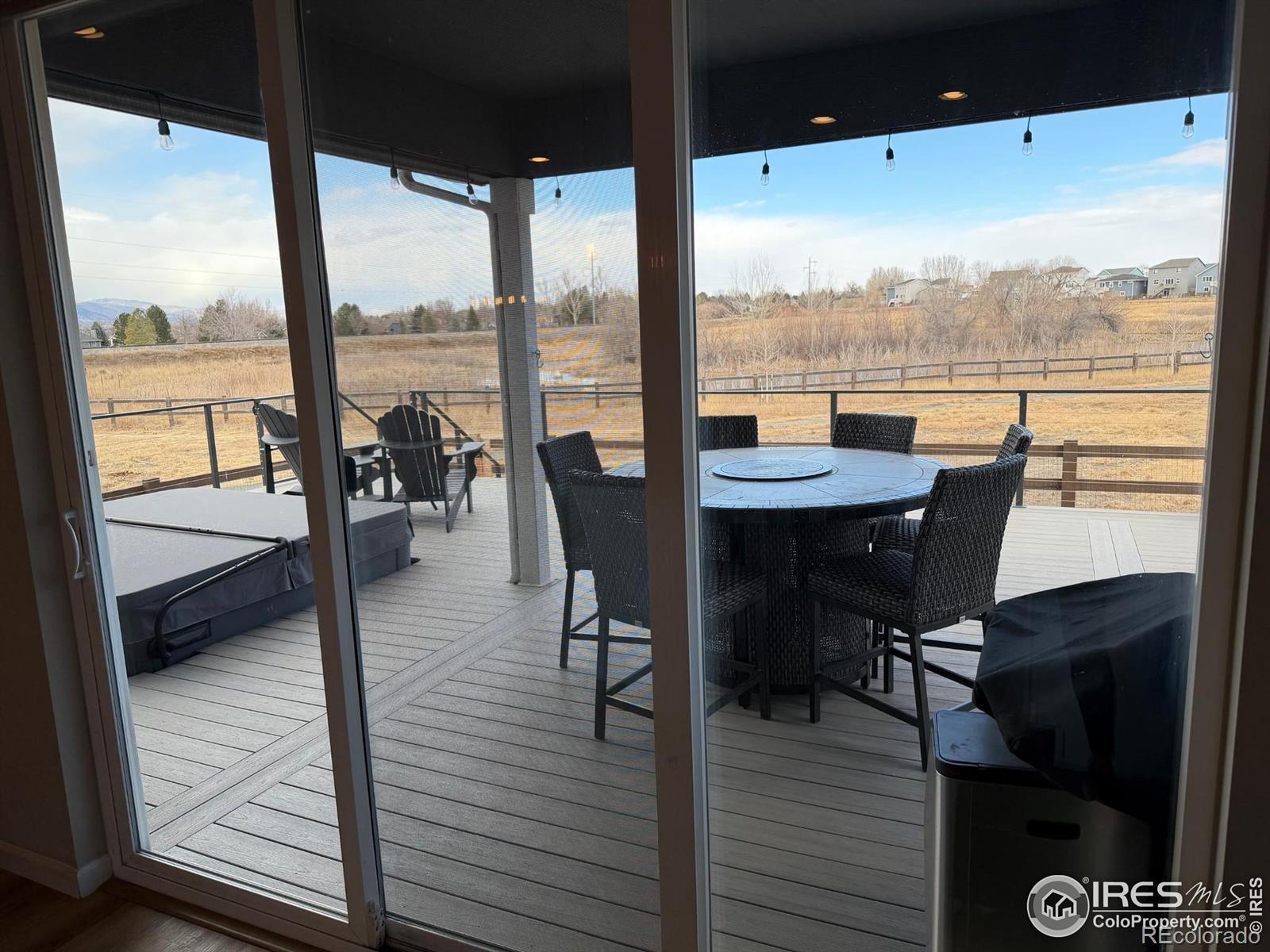 Experience unparalleled privacy and breathtaking natural beauty in this stunning two-story residence, perfectly situated on a quiet cul-de-sac. Low HOA at $49/mo and NO METRO TAX! This rare lot sides and backs directly to open space, offering a serene pond and sweeping panoramic mountain views that serve as the ultimate backdrop for Colorado living. The heart of the home is a bright, airy floor plan flooded with natural light from an abundance of windows, featuring premium upgrades like quartz countertops throughout, upgraded flooring, and a cozy gas fireplace. The gourmet kitchen is a chef's dream, showcasing upgraded 42" soft-close cabinetry, Gas range/oven, Quartz island and countertops, and a seamless flow into the living areas. Designed for versatility, the main level includes a dedicated bedroom and full bath-ideal for a guest suite, next-gen living, or a private home office. Upstairs, you'll find four additional bedrooms, large laundry room, Primary Suite boasts a huge Walk-in Closet, plus a generous loft, providing ample space for work and play. Outdoor entertaining is elevated to an art form on the extended covered deck, which features a built-in hot tub and two dedicated gas lines for your grill or fire pit. Modern conveniences abound, including a tankless hot water heater, central AC, and a massive 3-car tandem garage. Every detail has been considered in this meticulously maintained home; please see the documents tab for the floor plan and property videos. Garage is EV Charger ready.