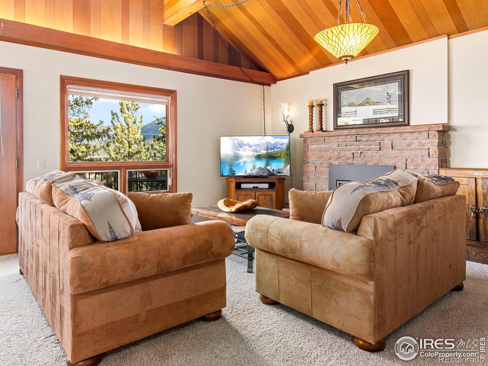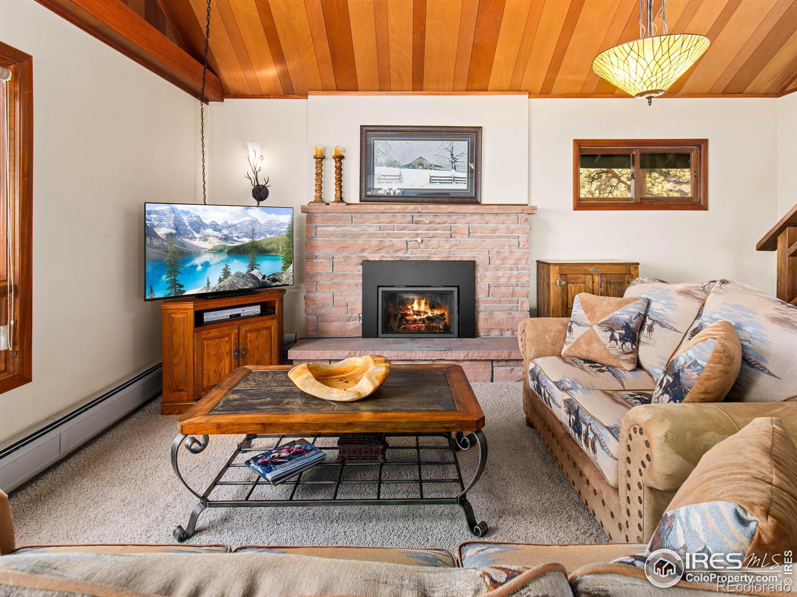 Escape to your own mountain retreat-fully updated, warm, and welcoming. This fully furnished, turn key home includes four bedrooms, three bathrooms, dramatic vaulted wood-beamed ceilings, and three fireplaces that create an inviting alpine ambiance. Offering an open floor plan and main level living. Bonus living spaces include a family room, rec room and a sunroom filled with natural light with a private hot tub for relaxation after a day in Rocky Mountain National Park. Beautifully updated kitchen has stainless steel appliances including a gas cooktop and double oven. The primary suite is complimented by a new lavish private bath with antique claw foot soaking tub and tiled walk in shower. Additional three bedrooms plus two remodeled bathrooms including 2nd en suite and spacious family room make up the lower level. The loft's beautiful wood walls and ceilings add natural character and versatility offering a cozy retreat perfect for an office, reading nook or extra sleeping quarters. Enjoy abundant wildlife on a beautifully wooded one acre lot full of rock outcroppings located on Prospect Mountain. Cherish mountain views from the deck out front and delight in outdoor dining on a private covered second deck out back with an awesome view of "the thumb". A detached two-car garage adds convenience and storage, all just minutes from downtown Estes Park. Circular driveway allows you to enter the home from all levels. Whether you're looking for a permanent residence or a vacation retreat, this property is sure to exceed your expectations.