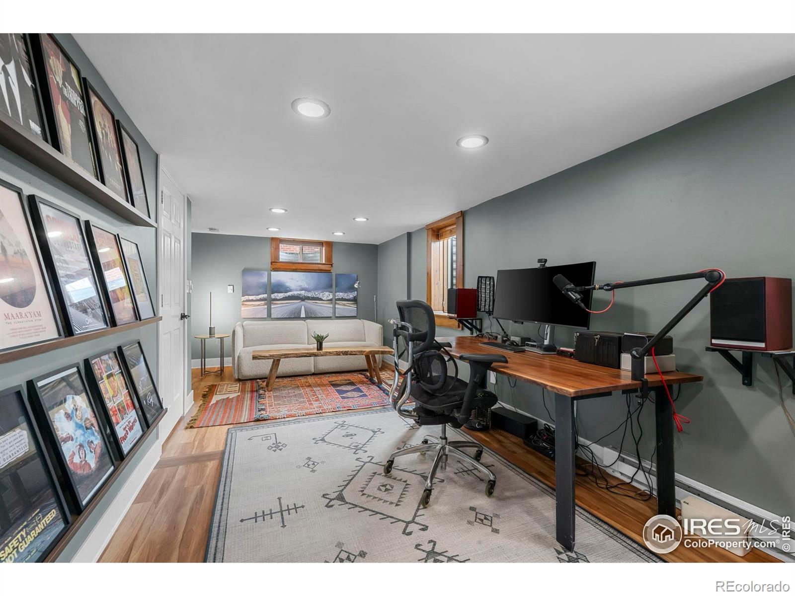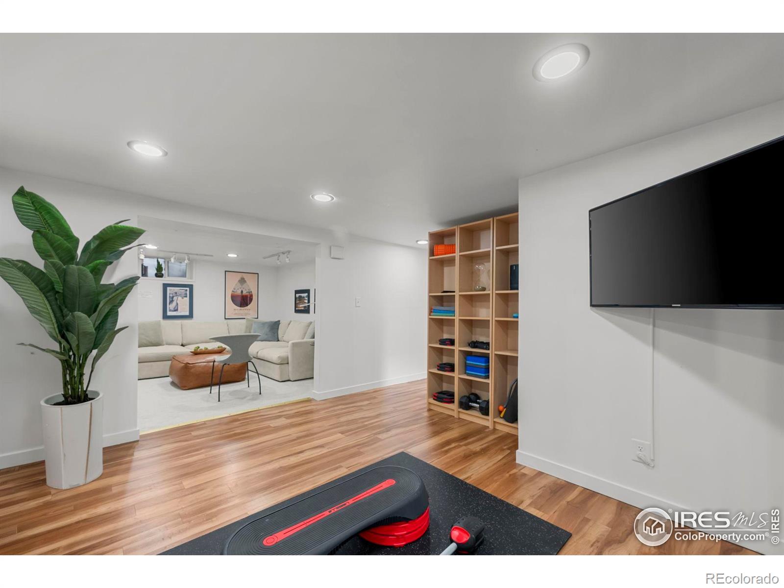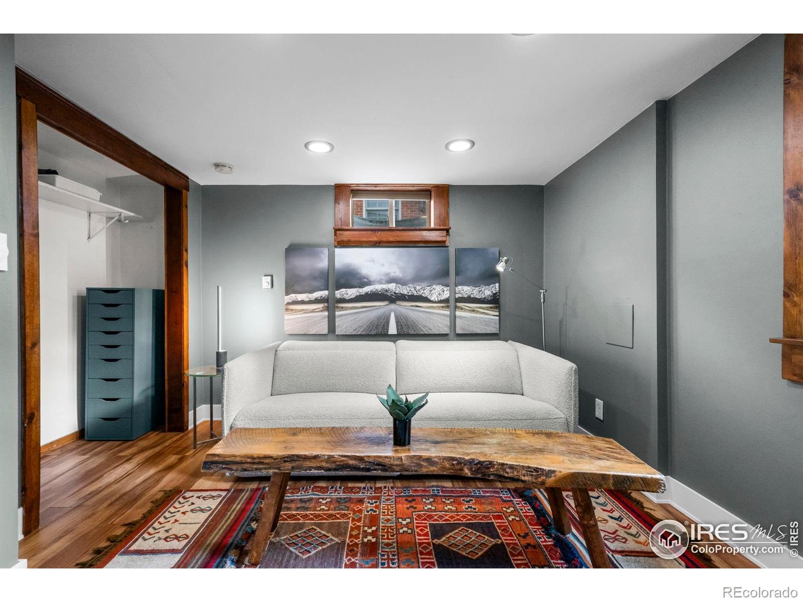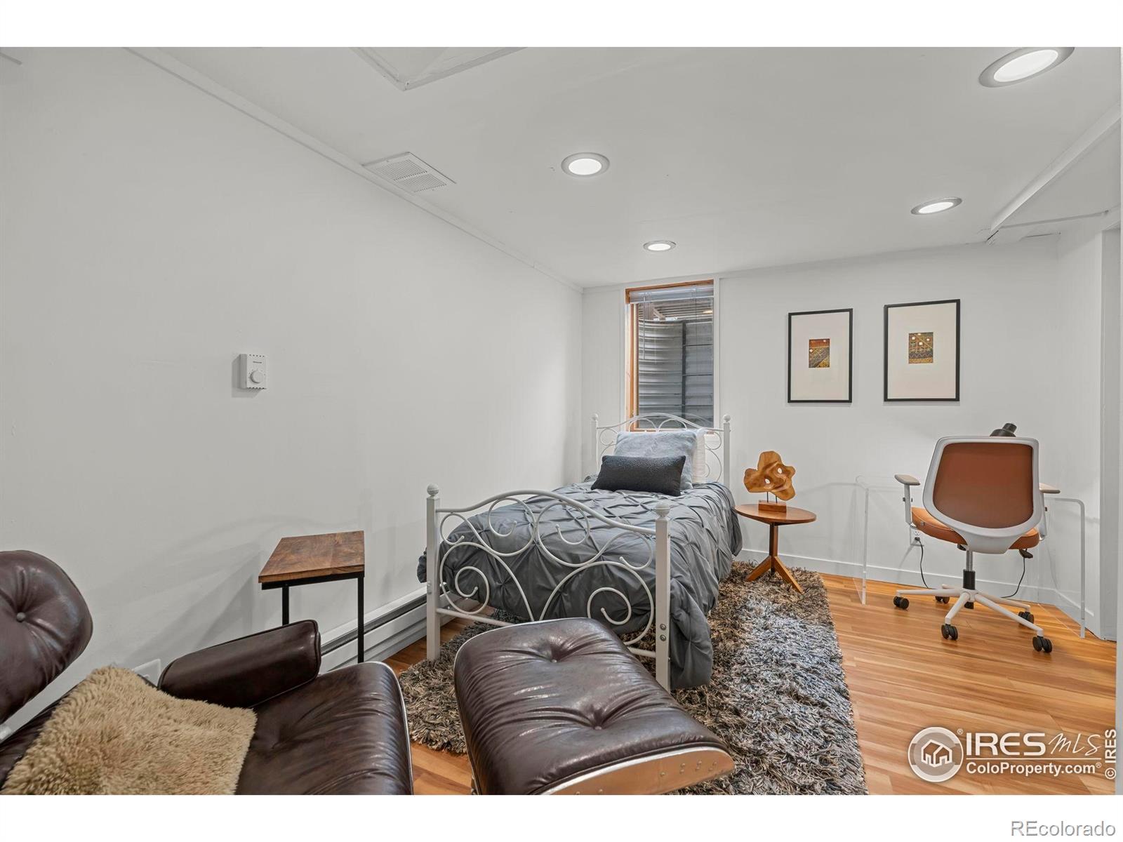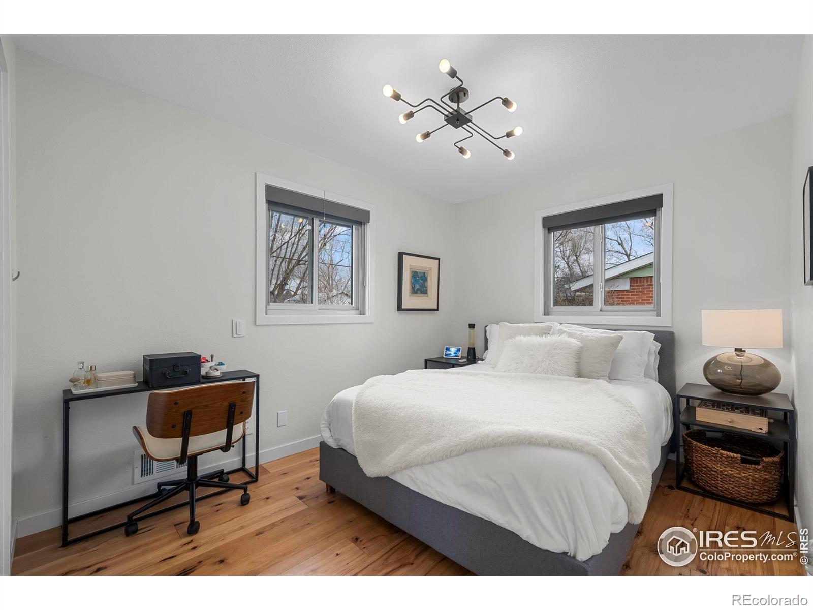 SHOWINGS START SAT, FEB. 21st! Love Where You Live in this beautifully updated mid-century modern, ranch-style home, offering exceptional value in Boulder. With striking modern curb appeal featuring a sleek black brick exterior and new front and garage doors, this home makes a memorable first impression. Perfectly situated on one of the neighborhood's premier lots, the property backs to Martin Park and the Bear Creek Path, showcasing stunning west-facing Flatiron views and just a short walk to top-rated Creekside Elementary. Inside, the extensively renovated main-level shines with new hickory wood flooring & a thoughtfully redesigned chef's kitchen complete with rich walnut-toned soft-close cabinetry, quartz countertops, center island with seating, and high-end appliances including a Bosch induction cooktop and Samsung Smart Refrigerator. The inviting living room features a stylish electric fireplace and custom designer lighting thru-out. Three well-sized bedrooms on the main-level, along with an expanded and beautifully updated full bath offering a double-sink vanity & additional storage. Step outside to a fully fenced backyard retreat with a spacious flagstone patio - perfect for relaxing or entertaining while enjoying the views. The fully finished basement adds valuable living space, including a family room, flexible exercise/bonus room, powder bath, 4th bedroom, a spacious work from home space/5th bedroom, and updated bath with double sinks and walk-in shower. Additional updates include a newer roof and windows. Unbeatable location within walking distance to Martin Park, Creekside Elementary, Under the Sun, Southern Sun Brewery, Whole Foods, King Soopers, Sweet Cow, and more. Easy access to Pearl Street, CU Boulder, and a convenient commute to Denver. Don't miss this opportunity to enjoy the very best of Boulder living!