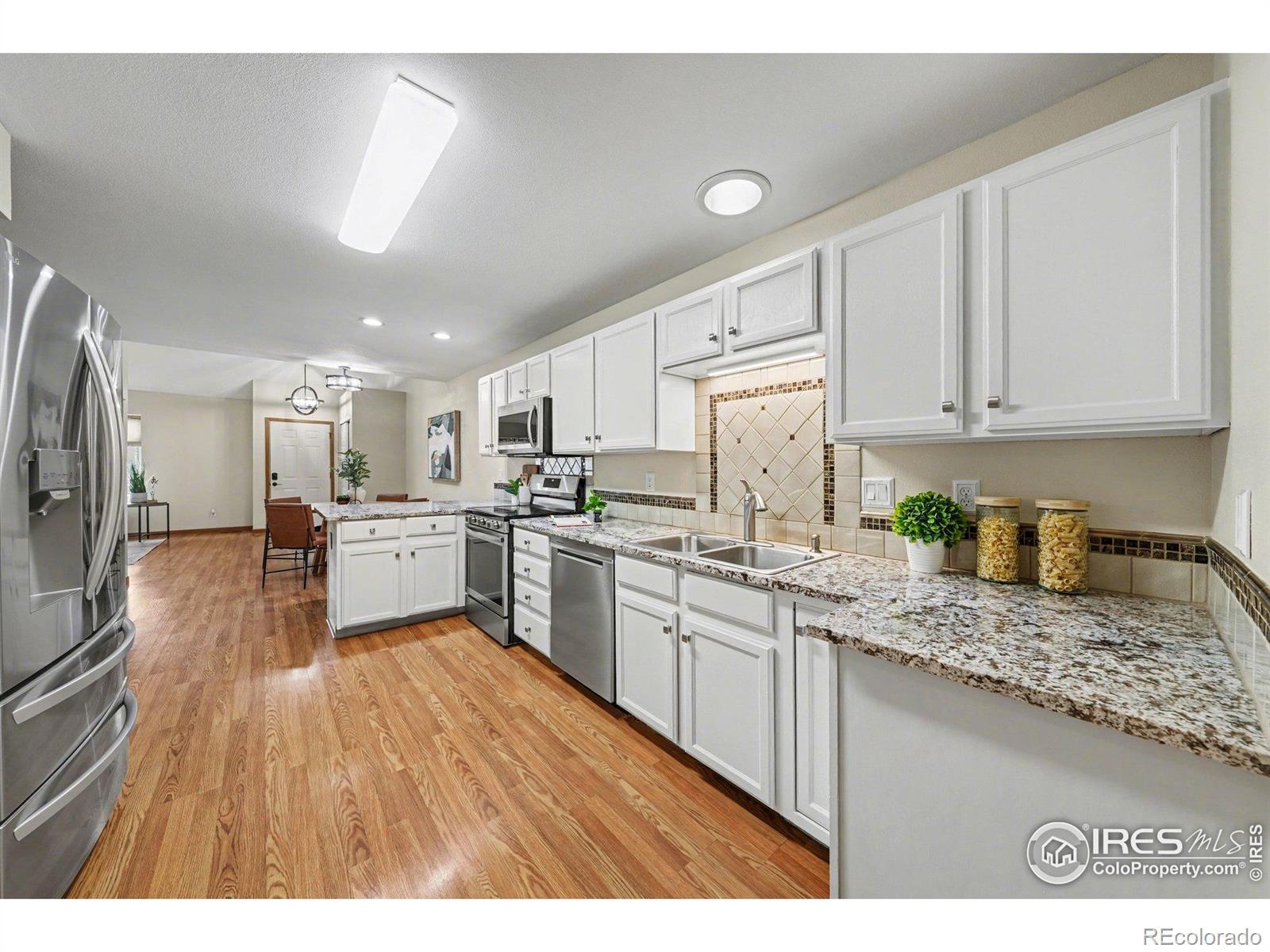 Beautiful 4 bedroom and 4 bath paired home that is a minute walk to Spring Canyon Park and surrounding open space....truly an amazing location! Home has been updated throughout and all appliances are newer including the hot water heater and all newer Anderson windows. Large main floor primary bedroom with luxury bath, main floor also has a 2nd bedroom/office, upper floor houses the 3rd bedroom with bath (also includes a loft area), and the 4th bedroom is in the basement with a full bath as well....the home has ample space and feels spacious throughout. Much of the lighting has been upgraded and newer ceiling fans. Main floor has Laminate flooring throughout and a beautiful modern kitchen. Basement has a very large rec/movie room for all of your toys/games and you can easily entertain with the wet bar. Basement includes the 4th bedroom with a full bath and a large finished storage space as well. Home has a great patio/courtyard between the garage and the house for evening dinners or just hanging out in the wonderful weather. Large garage with 220 volt...bring your EV! If you are looking for an updated, low maintenance and well-cared home this is the one....just look at the pictures. Spring Canyon Park's amenities include huge ball fields, dog park, splash pad, basketball, multiple playgrounds, volleyball, fitness course, horseshoe pits, tennis courts, pickleball courts, mtn bike trails, skate park, trails, lakes and ponds and just beautiful landscaping throughout! Come see this great home!