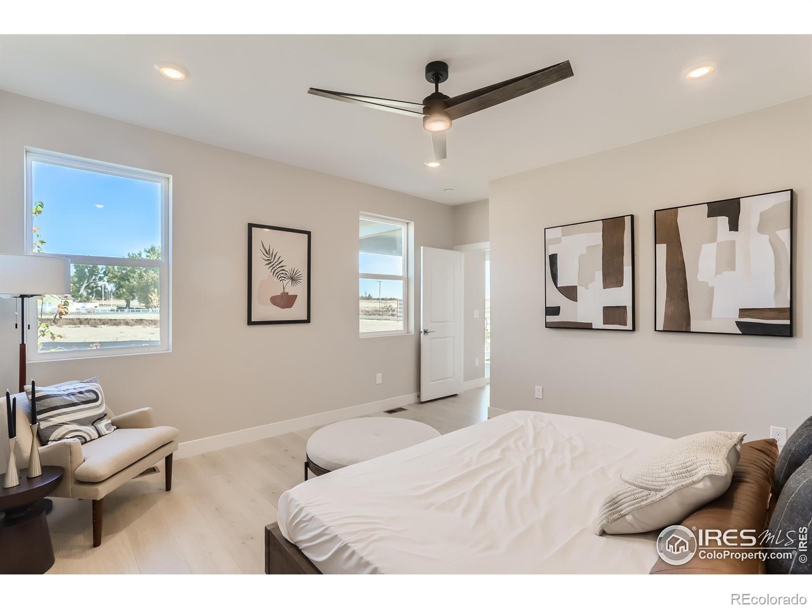 Rare 4-bedroom ranch that backs to open space with no neighbors behind, offering exceptional privacy and uninterrupted views-perfectly enjoyed from the covered patio. The open-concept floor plan is ideal for both everyday living and entertaining, anchored by a gourmet kitchen featuring a 36" gas range with designer hood, double wall ovens, quartz countertops, and a large center island with pendant lighting. Abundant cabinet space and thoughtful finishes make this kitchen as functional as it is stylish. The spacious primary suite provides a relaxing retreat with a walk-in closet, dual vanity, and tile flooring in the primary bathroom. Three additional bedrooms offer flexibility for guests, a home office, or multigenerational living. A large laundry room with tile flooring adds convenience and extra storage. Located in Fort Collins, residents enjoy access to one of Colorado's most desirable cities, known for its vibrant Old Town, award-winning dining and breweries, miles of hiking and biking trails, nearby golf courses, and proximity to Colorado State University. Easy access to I-25 makes commuting simple while still enjoying a community-focused, outdoor-oriented lifestyle. This single level living home combines privacy, modern finishes, and a prime Fort Collins location; -a rare opportunity in today's market. Images are of similar homes or digitally staged.