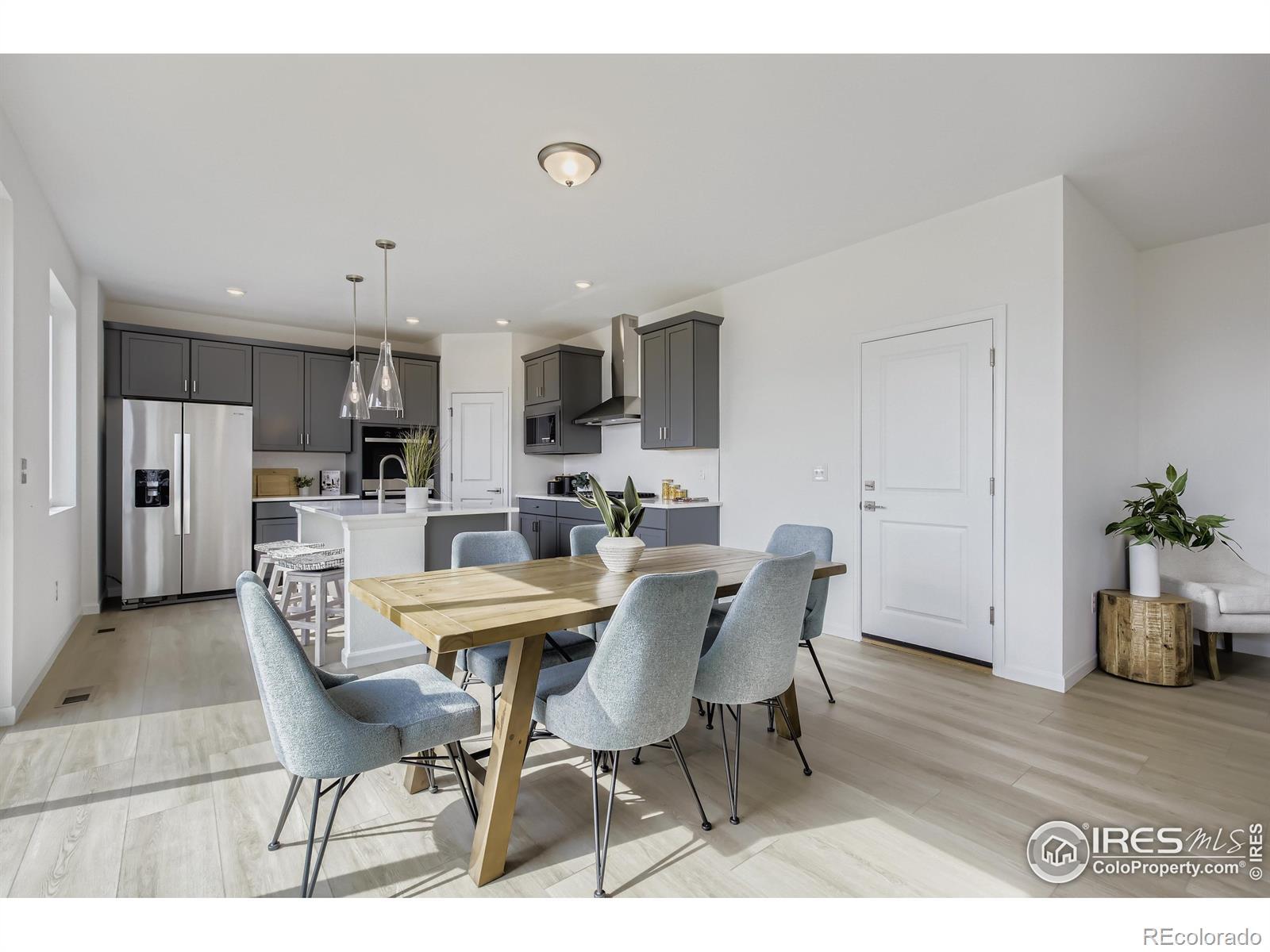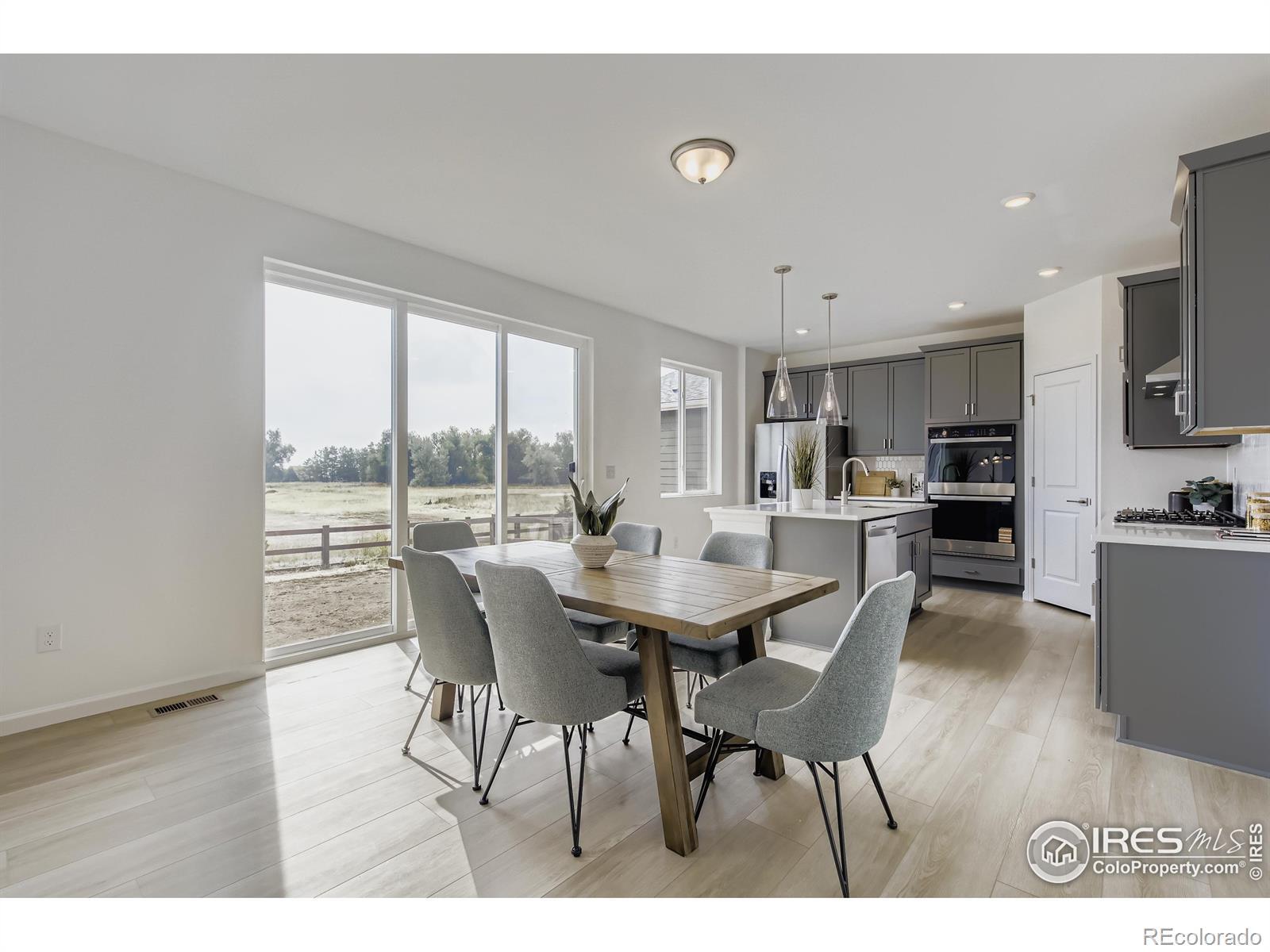 March Completion! Beautifully designed 3-bedroom home that backs to open space, offering privacy from the covered patio, perfect for outdoor dining or relaxing Colorado evenings. Inside, you'll find a thoughtfully designed open-concept layout highlighted by luxury vinyl plank flooring throughout the main living, dining, and kitchen areas. The gourmet kitchen is a true showstopper, featuring a 36" gas range with designer hood, double wall ovens, quartz countertops, and a glass mosaic tile backsplash. A large center kitchen island with pendant lighting provides additional prep space and seating, while the oversized pantry ensures ample storage. Matte black finishes throughout add a modern, upscale touch. Upstairs, a versatile loft offers additional living space, ideal for a home office, media room, or play area. The primary suite is a private retreat, complete with a massive walk-in closet and a spa-like four-piece primary bathroom featuring dual sinks, tile flooring, and modern finishes. Located just minutes from Old Town Fort Collins, residents enjoy easy access to award-winning restaurants, breweries, golf, shopping, parks, and miles of scenic trails. Fort Collins is known for its vibrant lifestyle, strong sense of community, and proximity to Colorado State University, with quick access to I-25 for commuting. Images are of similar homes or digitally staged.