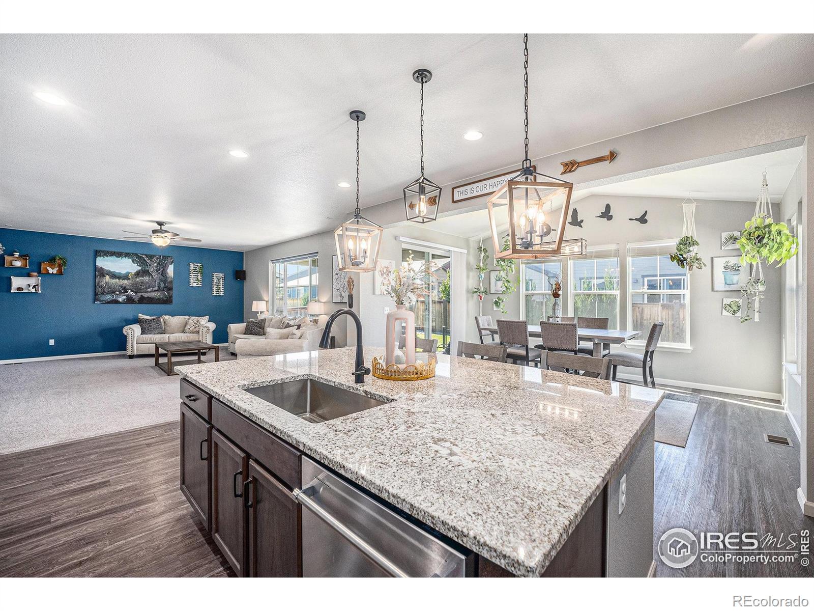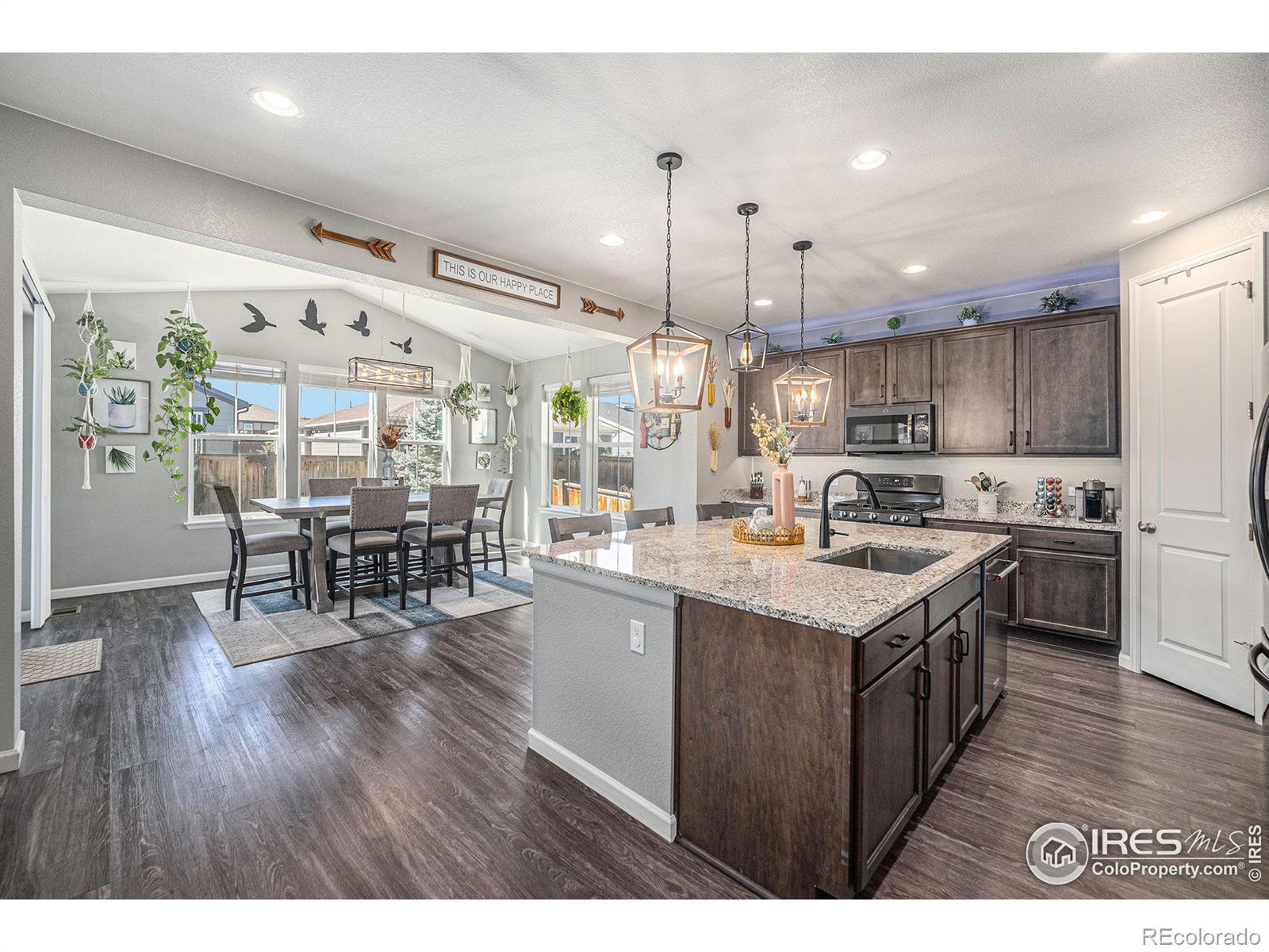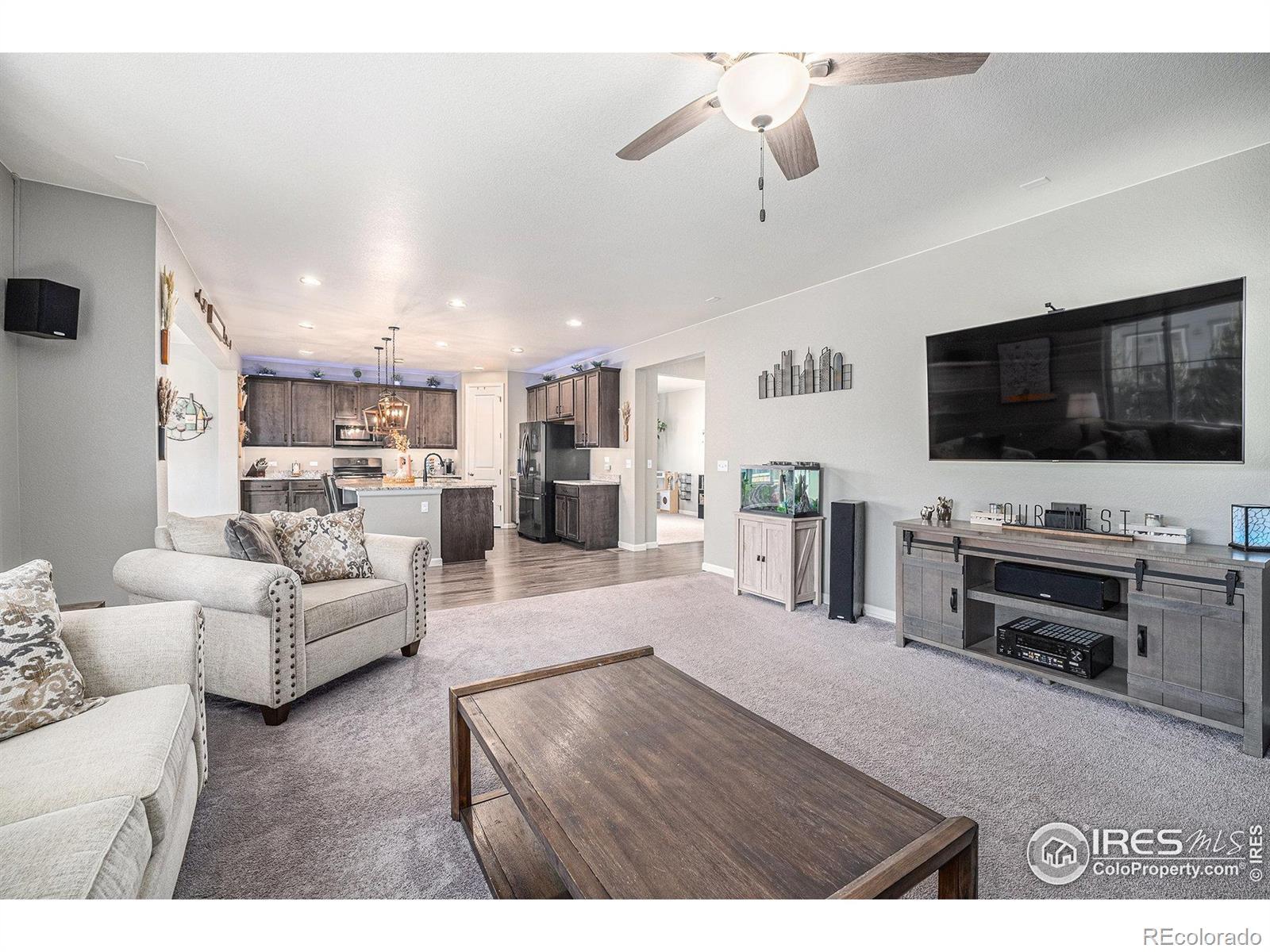 This beautifully maintained, move-in ready ranch-style home offers elevated living with tons of custom upgrades, functionality and an exceptional location-the desirable Harvest Junction Neighborhood. Inside, you'll find a beautifully bright interior with a layout designed for everyday living and effortless entertaining. The spacious main level features inviting gathering areas and a well-appointed kitchen with generous cabinetry and prep space, making both daily meals and weekend hosting stress-free. Large windows bring in abundant sunshine, creating a warm and welcoming atmosphere throughout. Main level bedrooms offer flexibility for guests, a home office, or growing households. The main level primary suite provides a peaceful retreat with ample closet space and lux ensuite bathroom for added appeal. Head to the finished basement for an oasis getaway where you'll find tons of flex space, a home theatre, bedroom, plus 3/4 bathroom! Step outside to a gorgeous covered concrete patio and fully fenced backyard-perfect for gardening, relaxing with pets or summer barbecues. Enhancing the home's curb appeal and year-round ambiance are professionally installed Govee Permanent Outdoor Lights, offering customizable, app-controlled exterior lighting for holidays, game days, or elegant everyday accent lighting-all at the touch of a button. What truly sets this home apart are it's many custom upgrades and additions along with plenty of access to lifestyle amenities. Enjoy close proximity to the St. Vrain Greenway and nearby parks for walking, biking, and outdoor recreation. Harvest Junction shopping and everyday conveniences are just moments away, offering groceries, retail, and dining options. You're also just a short bike ride or drive to downtown Longmont's vibrant Main Street, known for its local restaurants, breweries, coffee shops, and community events. This home is truly a standout opportunity in today's market. Schedule your private showing to experience it for yourself.