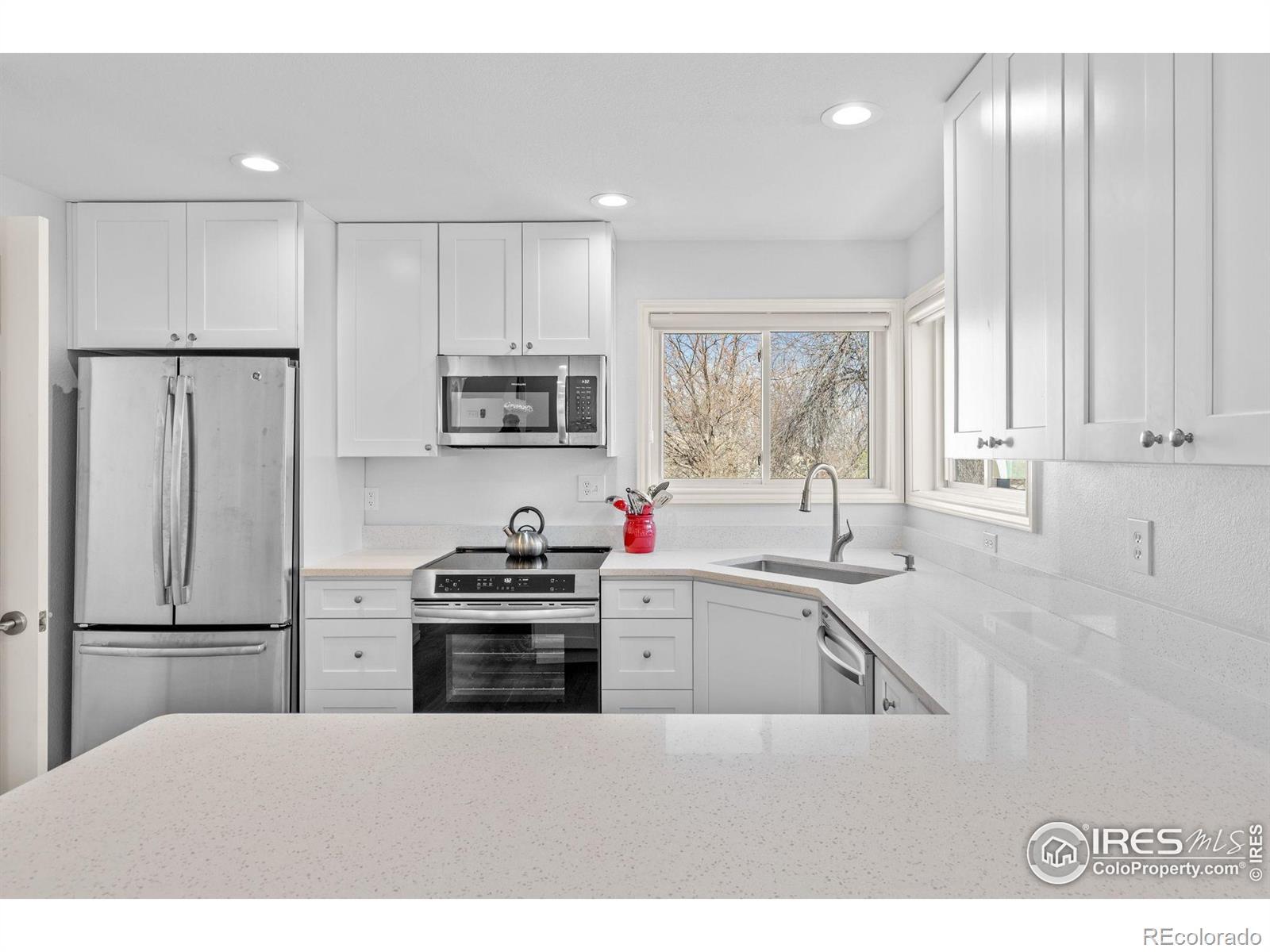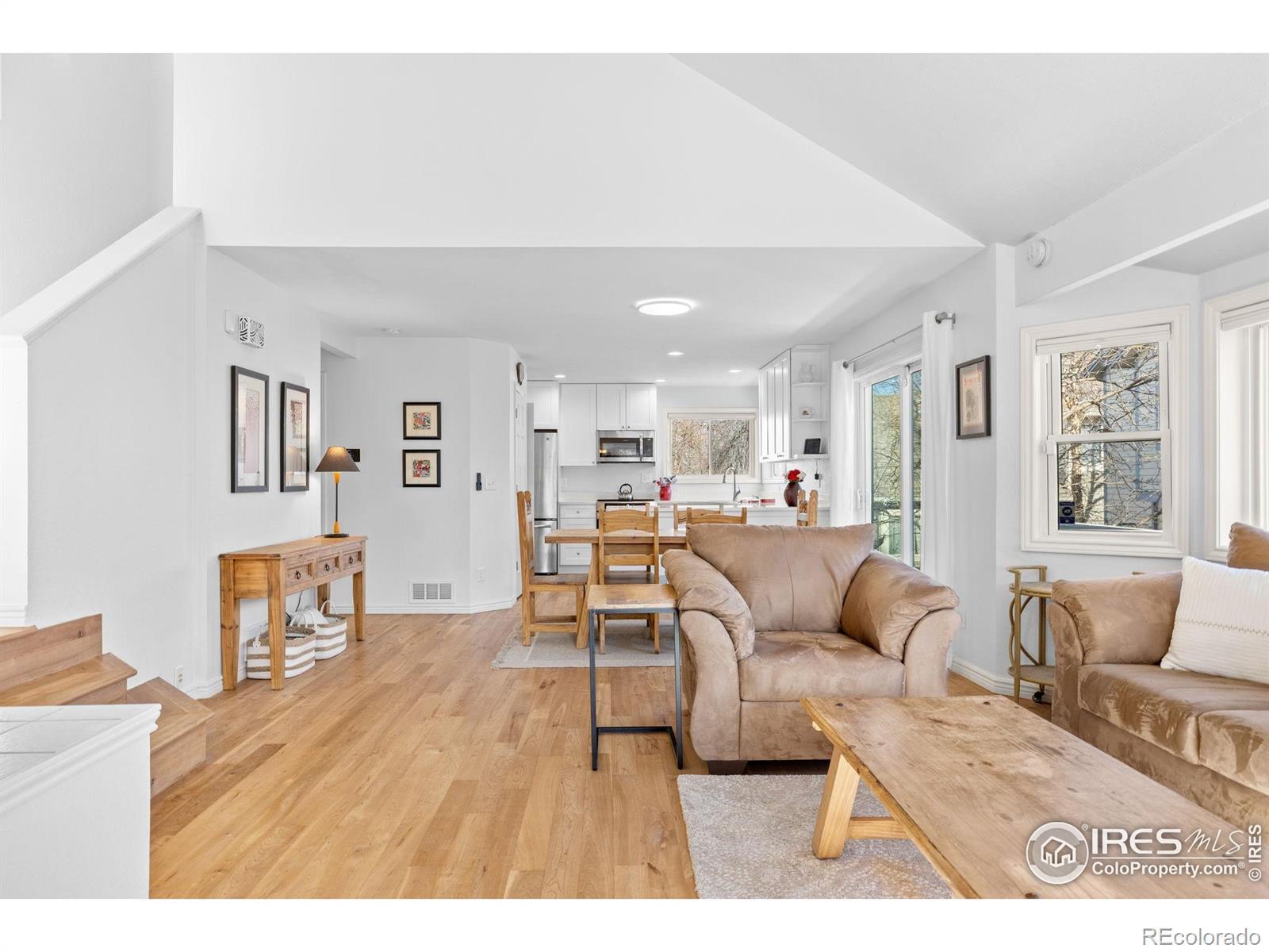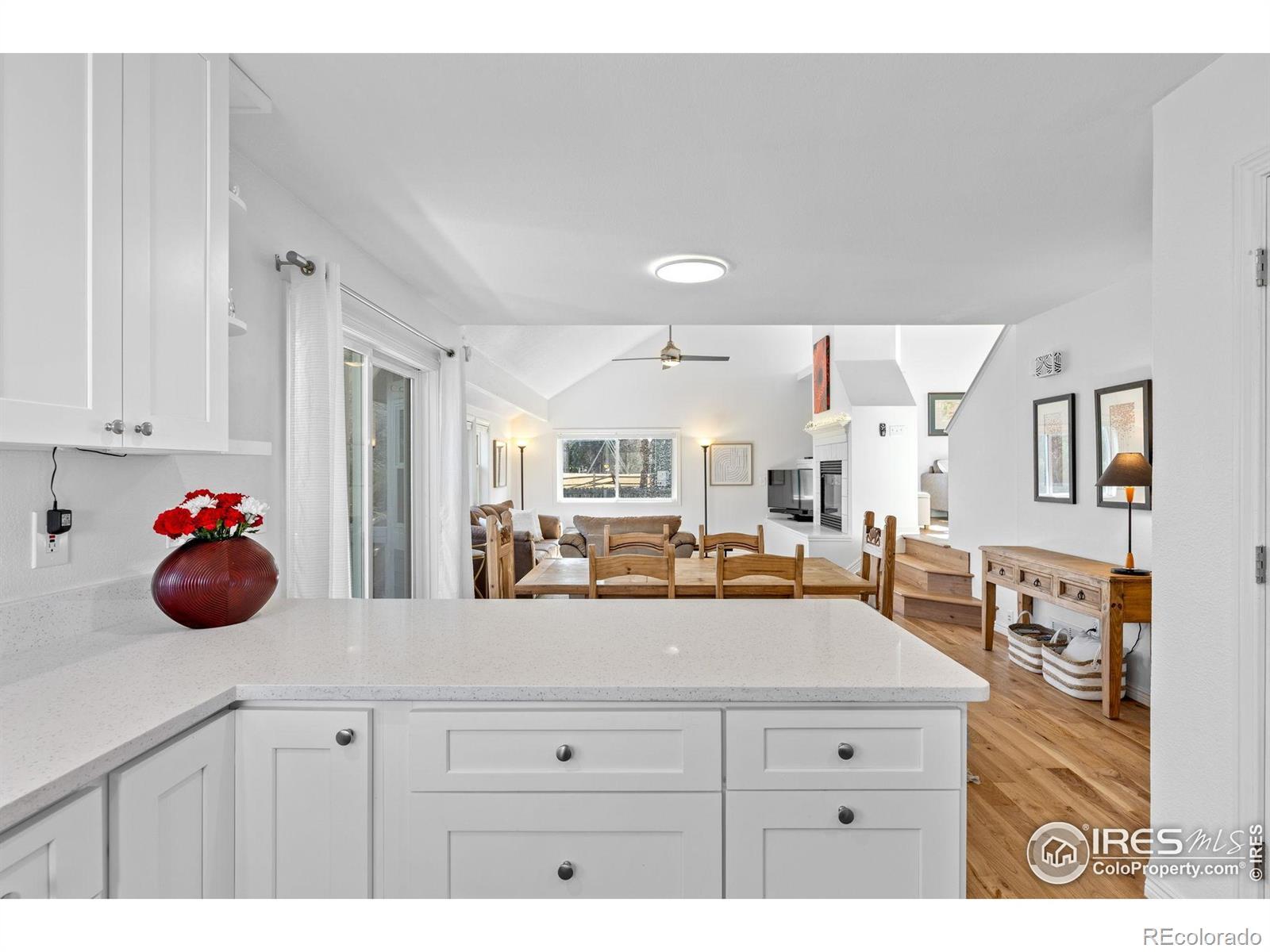 Experience the effortless sophistication of this beautifully reimagined Gunbarrel residence, where modern design meets turnkey ease. From the moment you arrive, impeccable curb appeal sets the stage - fresh exterior paint, a new roof, and sealed driveway offer a crisp, confident welcome. Inside, natural light pours into a dramatic vaulted great room, where soaring ceilings and refinished hardwood floors create warmth and scale. A striking gas fireplace anchors the space, adding both architectural presence and everyday comfort. The fully remodeled kitchen is a true centerpiece, appointed with sleek custom cabinetry, quartz countertops, and premium Samsung appliances - including a high-performance induction range with integrated air-fryer functionality - blending innovation with clean, contemporary style. A thoughtfully designed layout places all three bedrooms on one level, creating seamless livability. The primary suite is a serene retreat, defined by vaulted ceilings, natural light, and an updated ensuite featuring dual vanities and a spa-inspired rainfall shower. Beyond the visible finishes, the home reflects meticulous stewardship. A new Class 4 impact-resistant roof, fresh interior paint, designer window coverings, updated LED lighting, smart-home integration, serviced HVAC, and a professionally sealed garage floor ensure both beauty and peace of mind. Just steps from the community park, playground, and scenic LOBO Trail and ideally situated between Boulder and Longmont, this residence offers the rare opportunity to enjoy a truly "like-new" home in an established neighborhood - where every detail has been thoughtfully elevated and expertly handled.