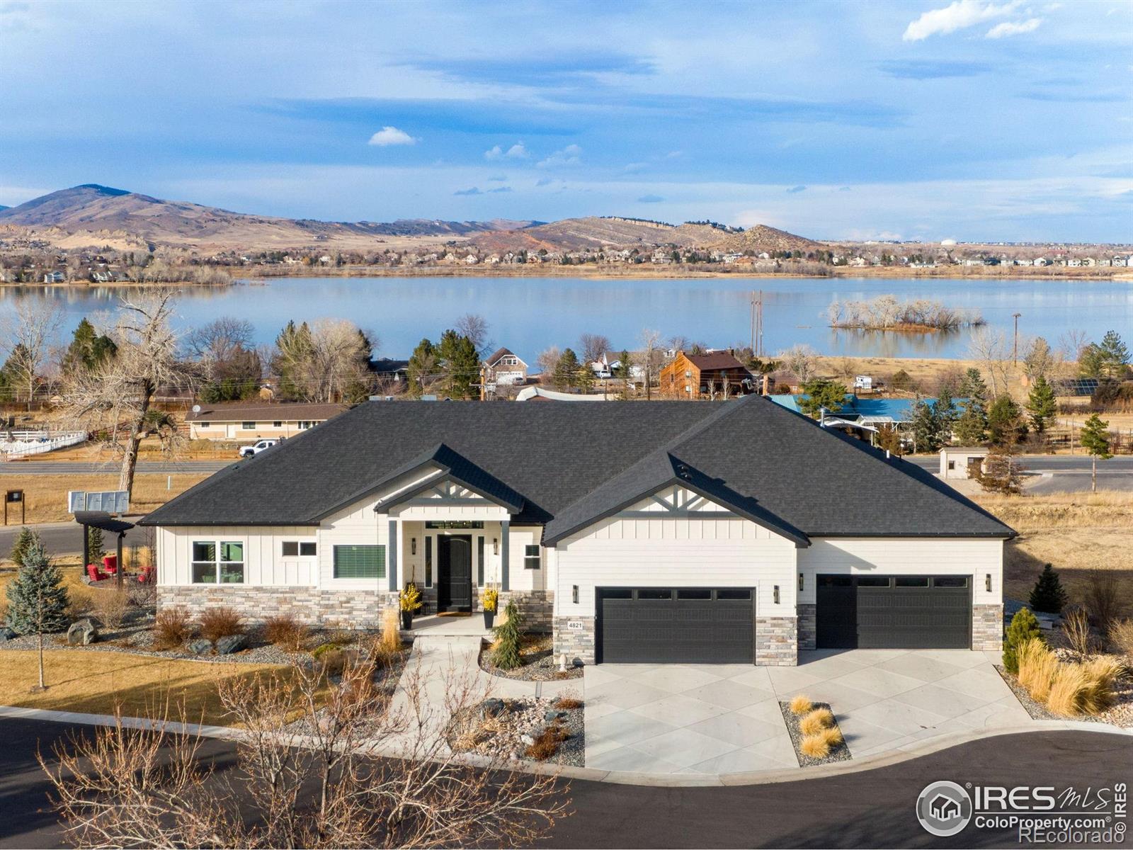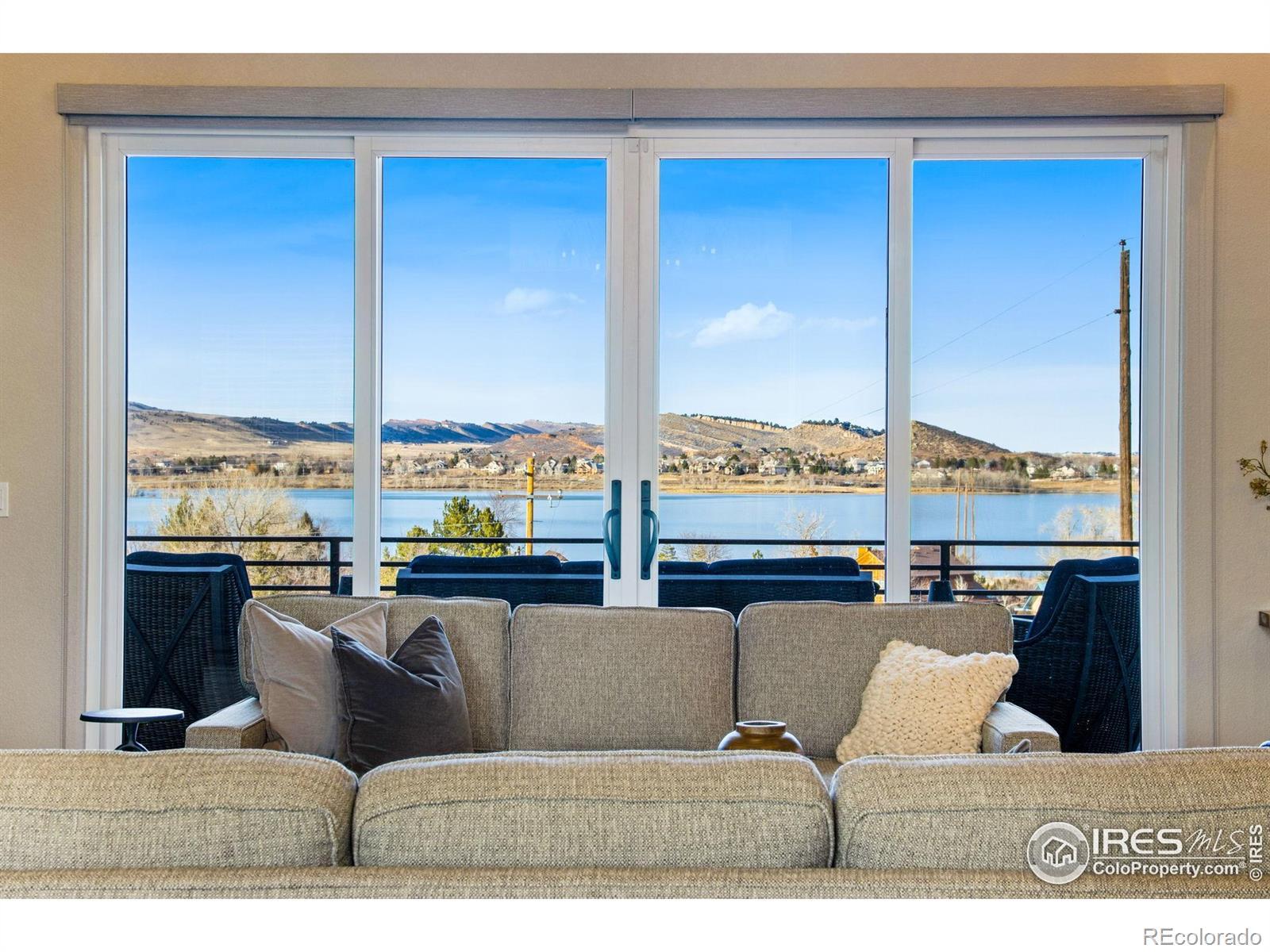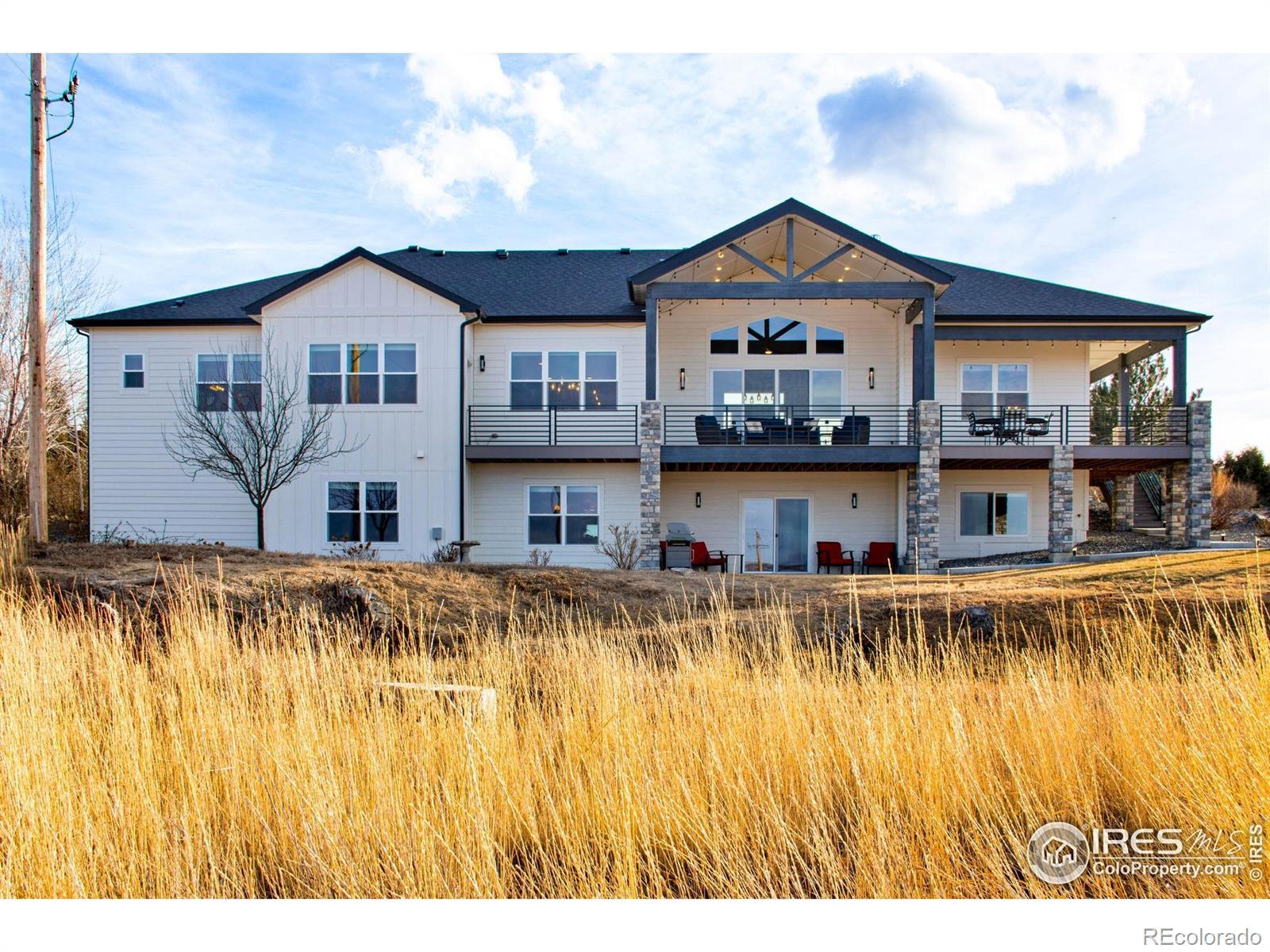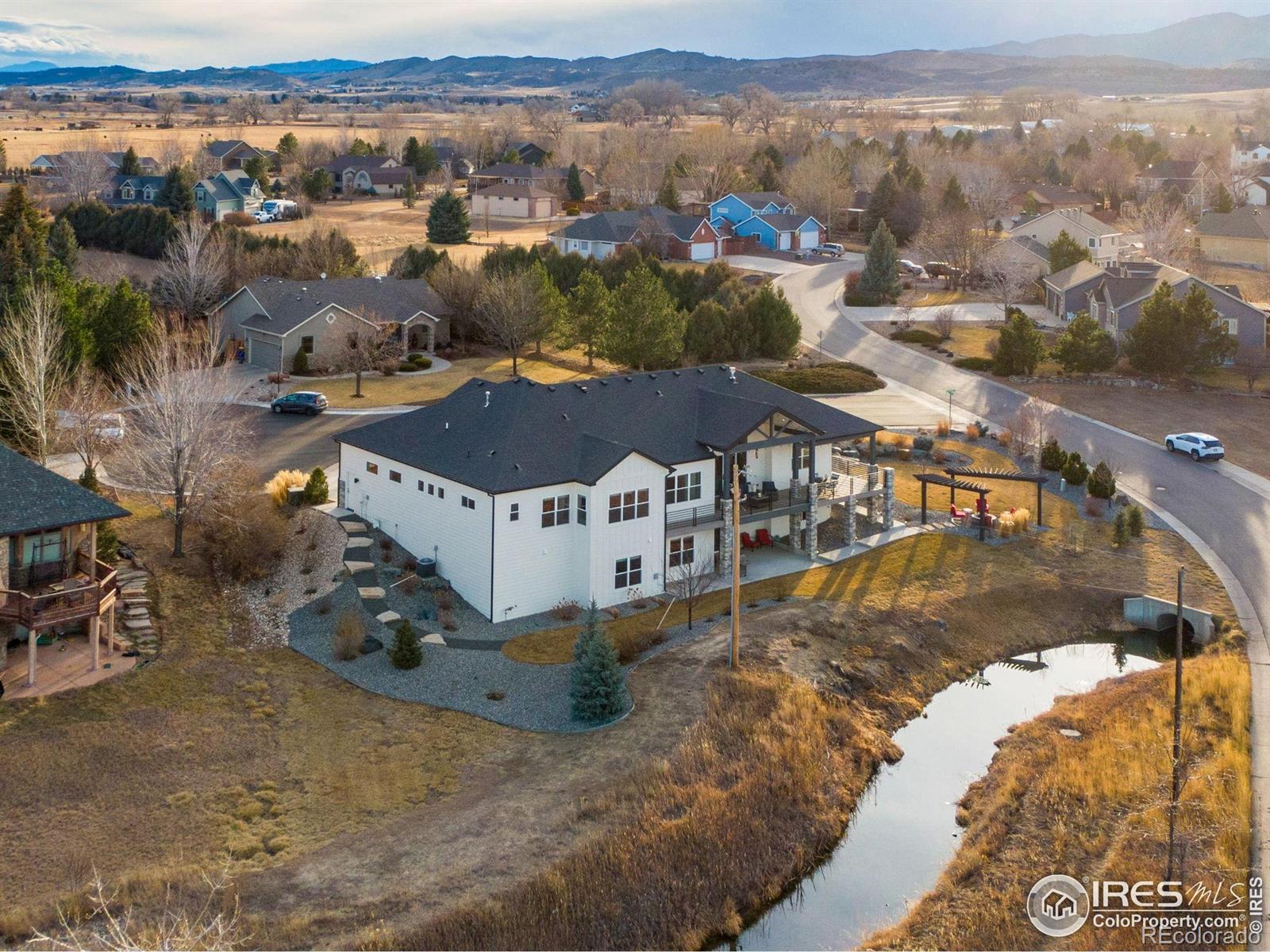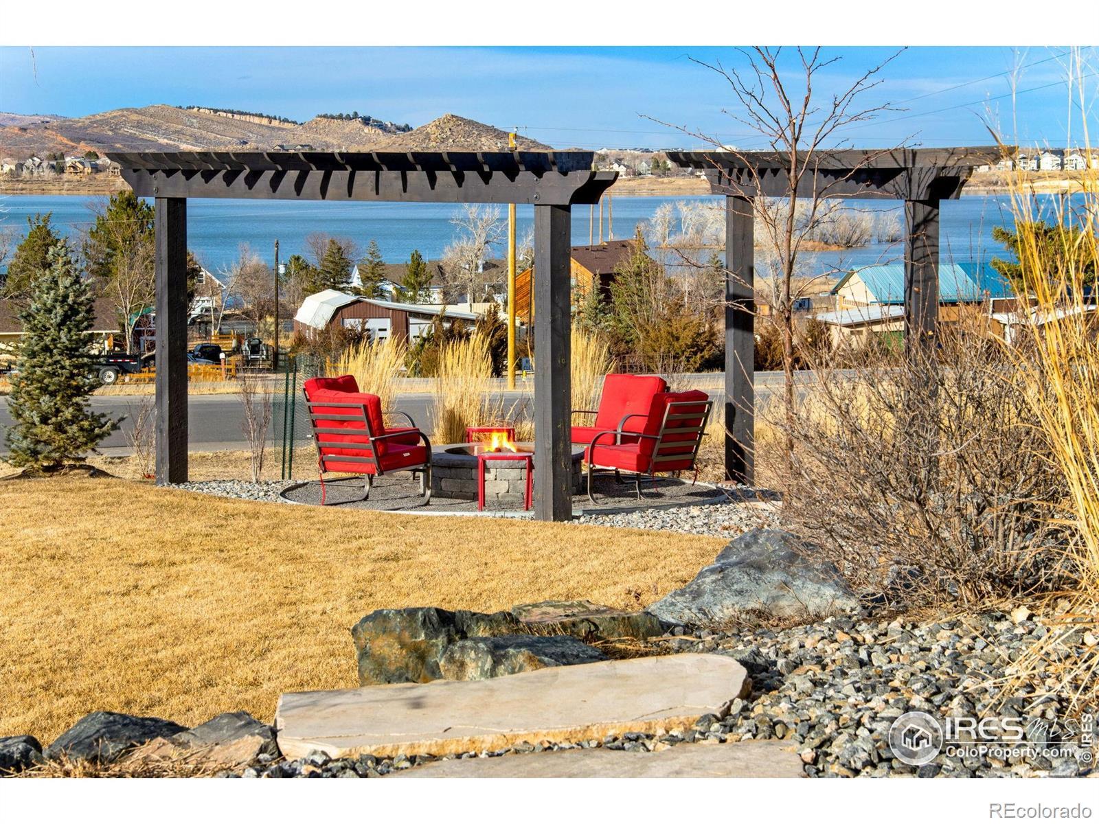 Open House Sat 21st and Sun 22nd, 12-3PM. Come see why Loveland, CO is frequently voted as one of the best places to live or retire in America. Known as the City of Love, Loveland is the gateway to Estes Park and Rocky Mountain National Park, and offers outstanding restaurants, entertainment, breweries, community festivities, trails, parks, and recreation. Incredible Boedecker Lake and Rocky Mountain views. This home offers luxury living at its finest and you can enjoy nature and wildlife from nearly every window. This custom-built ranch style property offers something for everyone with over 5,400 total square feet. 5 beds, 5 baths and an oversized 4 car finished garage with southern exposure for plenty of natural snow melt. The main floor features a split floor plan with an expansive primary bedroom taking the entire east wing. Both guest bedrooms are spacious and feature private baths and patio access. The gourmet kitchen features a walk-in pantry, stainless steel appliances, 5-burner gas range, double ovens, pot-filler, granite slab countertops and a center island with breakfast bar. Large dining area overlooks the open space and lake. The primary suite with retreat features a large walk-in closet plus a 5-piece luxury bath with oversized shower and freestanding clawfoot tub. The family room offers spectacular views, vaulted ceilings, and a gas fireplace with floor to ceiling stone. The walk-out basement features 9' ceilings, 2 additional bedrooms (one currently used as an office), media corner, billiard room, wet bar, and plenty of storage. The oversized covered and uncovered patio features Trex decking, iron railing, and landscape lights. Additional features include central A/C, 2 40-gallon water heaters, active radon system, wood-burning fire-pit with pergola, sprinkler and drip system, hardwood floors, high-end light fixtures, humidifier, and so much more. For a full list of features, floor plan, or to schedule a showing, please contact the brokers.