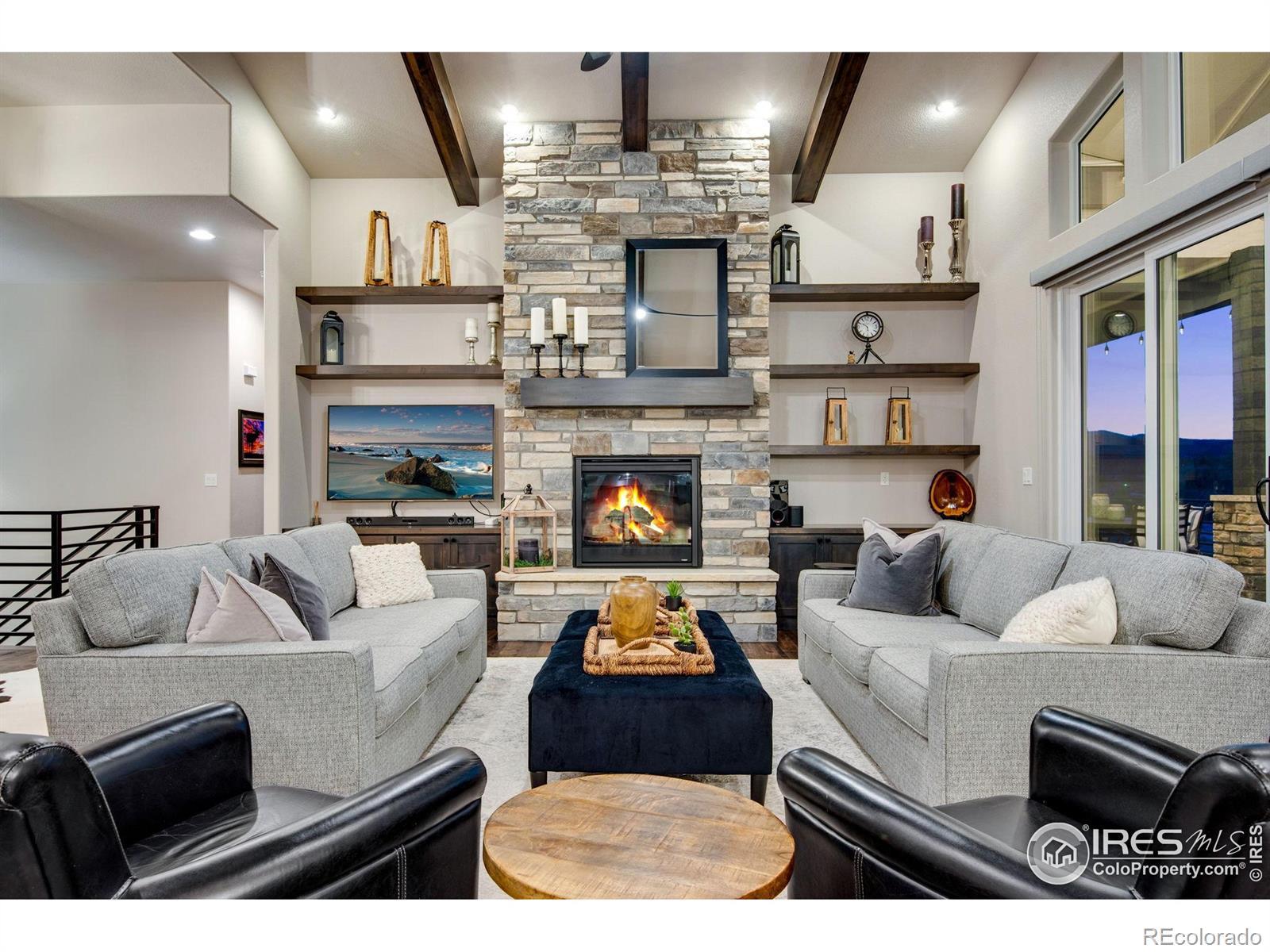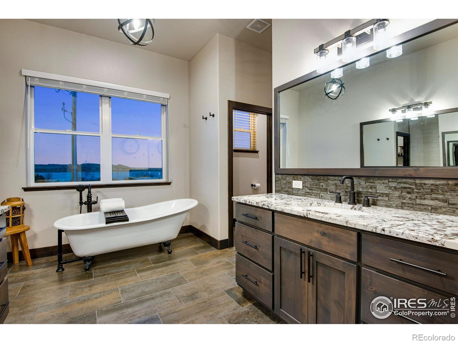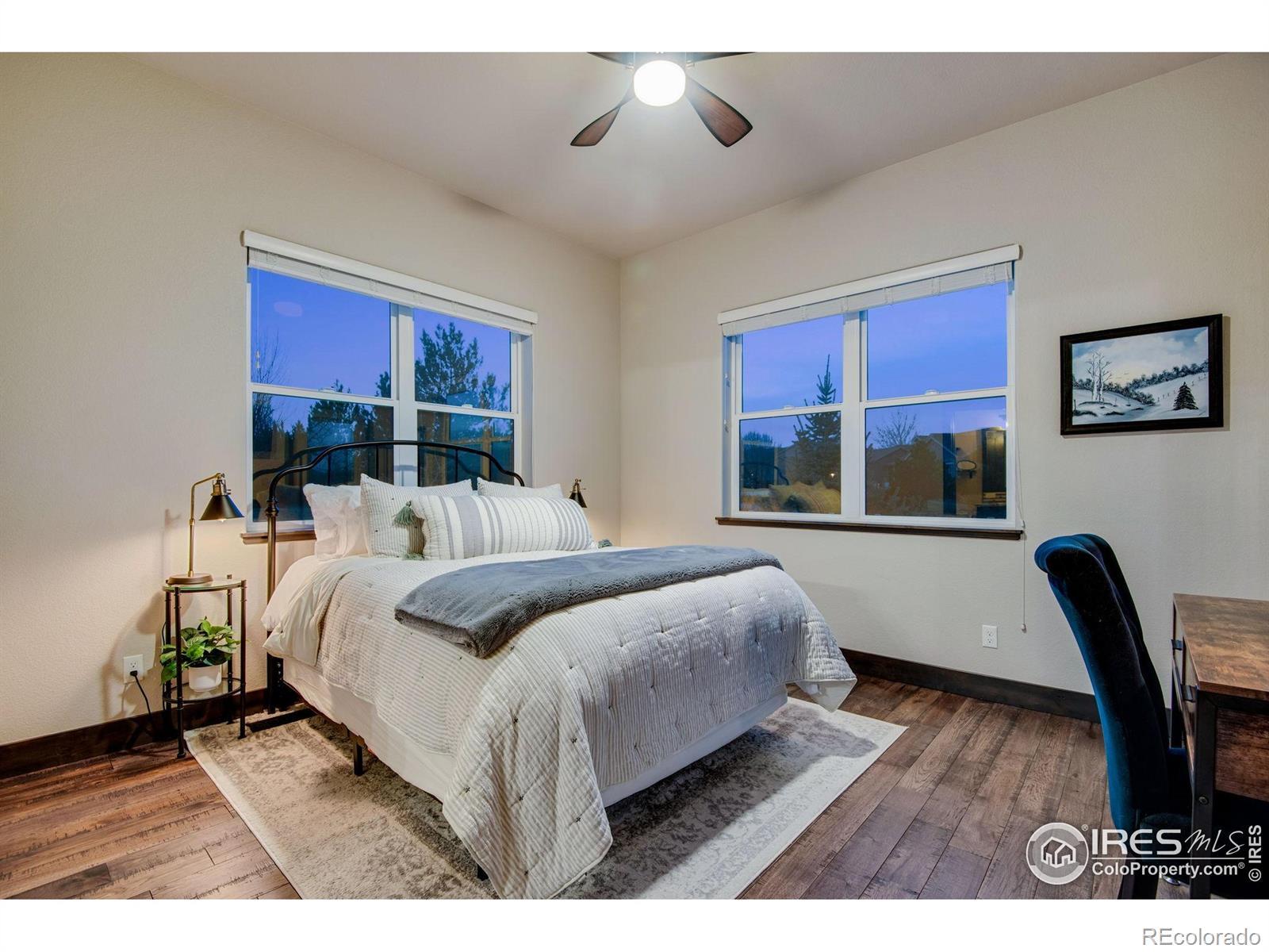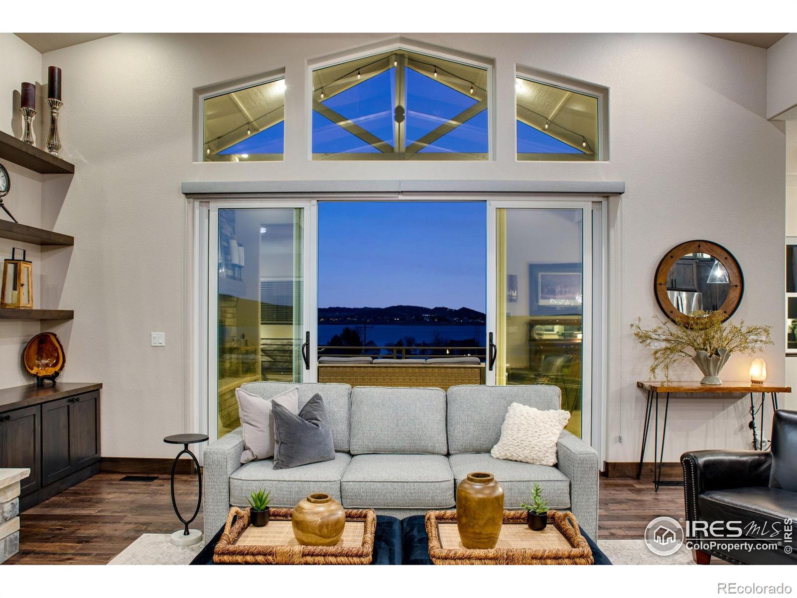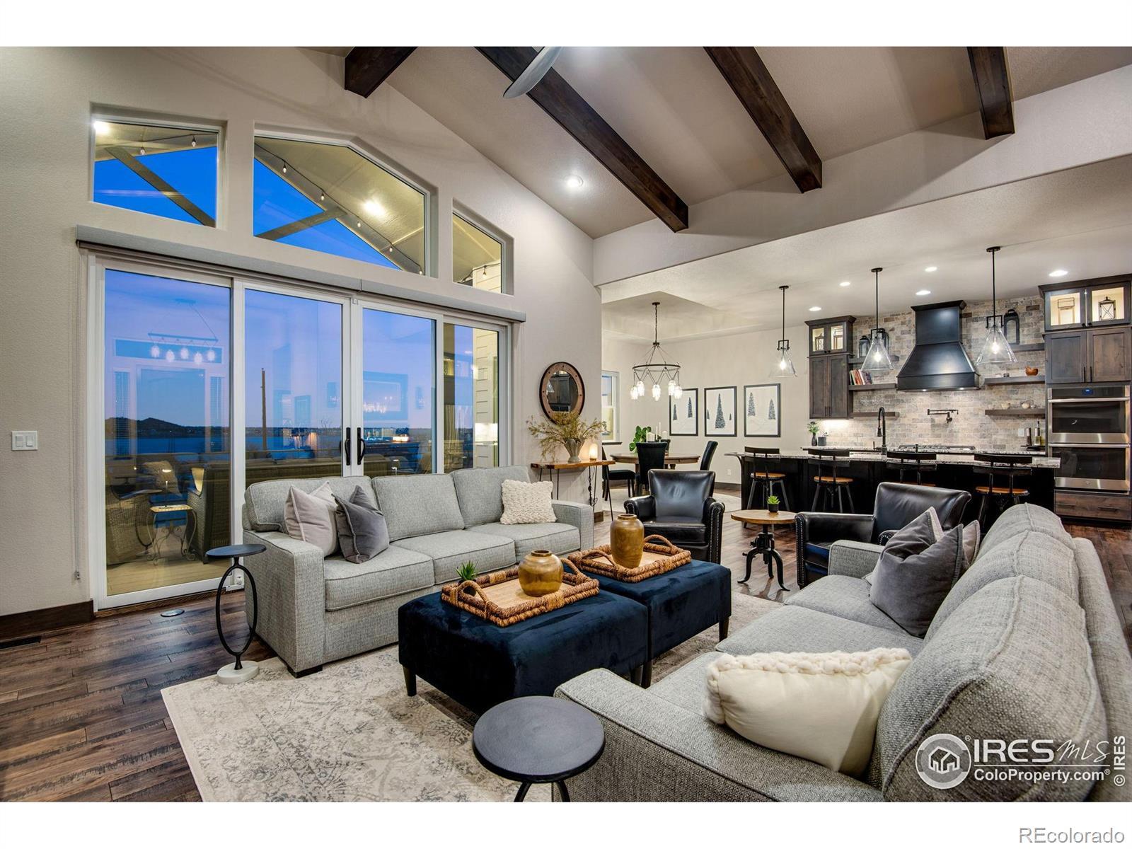 Open House Sat 21st and Sun 22nd, 12-3PM. Come see why Loveland, CO is frequently voted as one of the best places to live or retire in America. Known as the City of Love, Loveland is the gateway to Estes Park and Rocky Mountain National Park, and offers outstanding restaurants, entertainment, breweries, community festivities, trails, parks, and recreation. Incredible Boedecker Lake and Rocky Mountain views. This home offers luxury living at its finest and you can enjoy nature and wildlife from nearly every window. This custom-built ranch style property offers something for everyone with over 5,400 total square feet. 5 beds, 5 baths and an oversized 4 car finished garage with southern exposure for plenty of natural snow melt. The main floor features a split floor plan with an expansive primary bedroom taking the entire east wing. Both guest bedrooms are spacious and feature private baths and patio access. The gourmet kitchen features a walk-in pantry, stainless steel appliances, 5-burner gas range, double ovens, pot-filler, granite slab countertops and a center island with breakfast bar. Large dining area overlooks the open space and lake. The primary suite with retreat features a large walk-in closet plus a 5-piece luxury bath with oversized shower and freestanding clawfoot tub. The family room offers spectacular views, vaulted ceilings, and a gas fireplace with floor to ceiling stone. The walk-out basement features 9' ceilings, 2 additional bedrooms (one currently used as an office), media corner, billiard room, wet bar, and plenty of storage. The oversized covered and uncovered patio features Trex decking, iron railing, and landscape lights. Additional features include central A/C, 2 40-gallon water heaters, active radon system, wood-burning fire-pit with pergola, sprinkler and drip system, hardwood floors, high-end light fixtures, humidifier, and so much more. For a full list of features, floor plan, or to schedule a showing, please contact the brokers.
