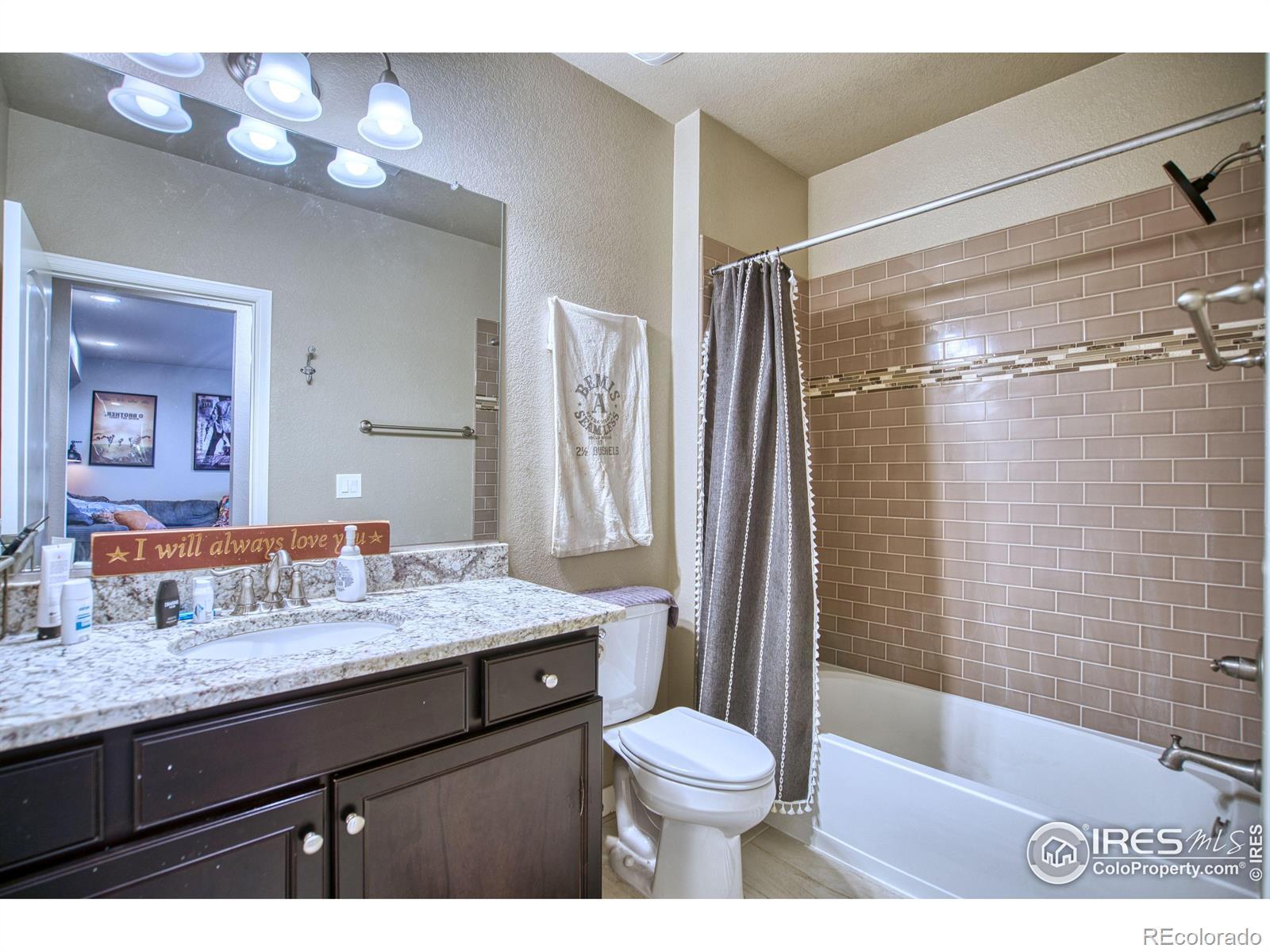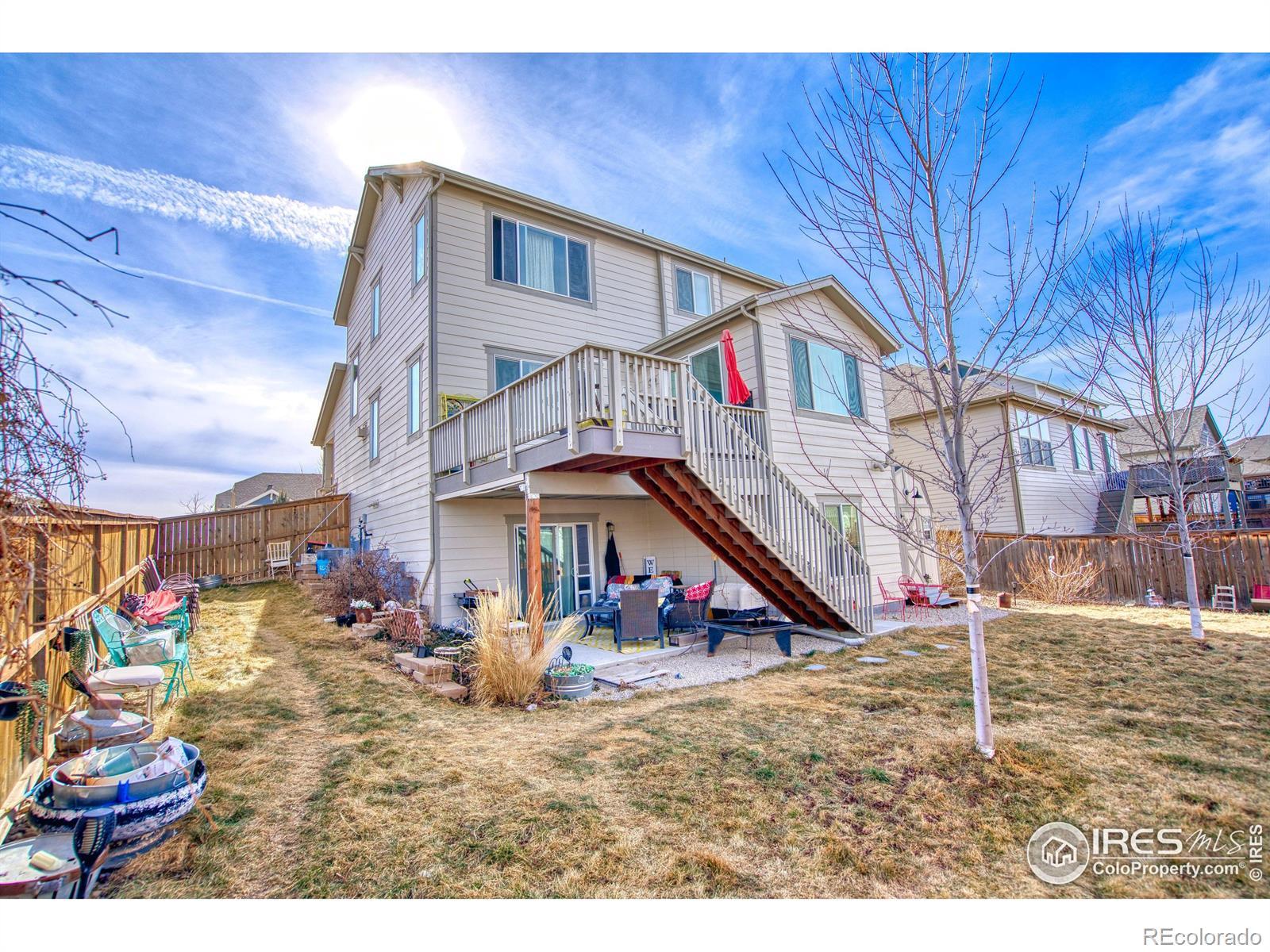Welcome to 810 Ranchhand Drive, a stunningly maintained home in one of Berthoud's most sought-after neighborhoods. Bathed in natural light, this residence boasts an open, flowing layout perfect for everyday living & entertaining. Step inside to a soaring 2-story entry, gorgeous manufactured wood flooring on the main level & wooden banisters w/elegant iron spindles leading to the upper story. The generous great room is a showstopper, featuring a cozy gas fireplace with dramatic stacked rock surround. The gourmet kitchen is a chef's dream, offering espresso cabinets, granite counters, stainless steel appliances, farm sink, subway tile backsplash, electric cooktop & wall oven, huge walk-in pantry & convenient nook office--ideal for work-from-home or staying organized. Dining room w/vaulted ceiling sets the scene for memorable gatherings, while a mud room at the garage entry & main-level powder room add convenience. Upstairs, a versatile loft, laundry room w/tub sink, full hall bath, & 2 additional bedrooms complement the luxurious primary suite, complete with a 5-piece spa-like bath featuring double sinks, granite counters, a double shower stall, soaking tub, large walk-in closet & linen closet. Walk-out basement provides a generous recreation room, spacious 4th bedroom, full bath & direct access to the securely fenced backyard. Step outside to a lower patio & huge Trex deck w/breathtaking mountain views--perfect for relaxing, entertaining, or dining al fresco. A 3-car tandem garage offers ample storage & parking. Ideally located near parks, trails, schools, restaurants & charming downtown Berthoud, with easy access to Loveland & Longmont via US 287 or I-25, this move-in-ready home is your gateway to the ultimate Colorado lifestyle!