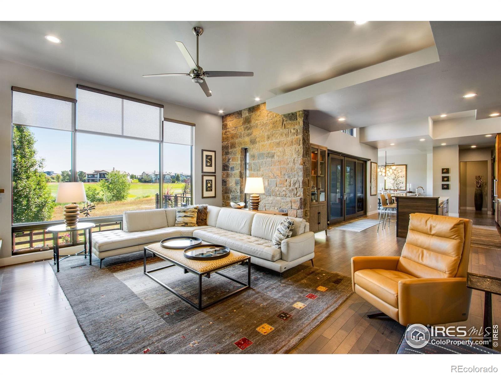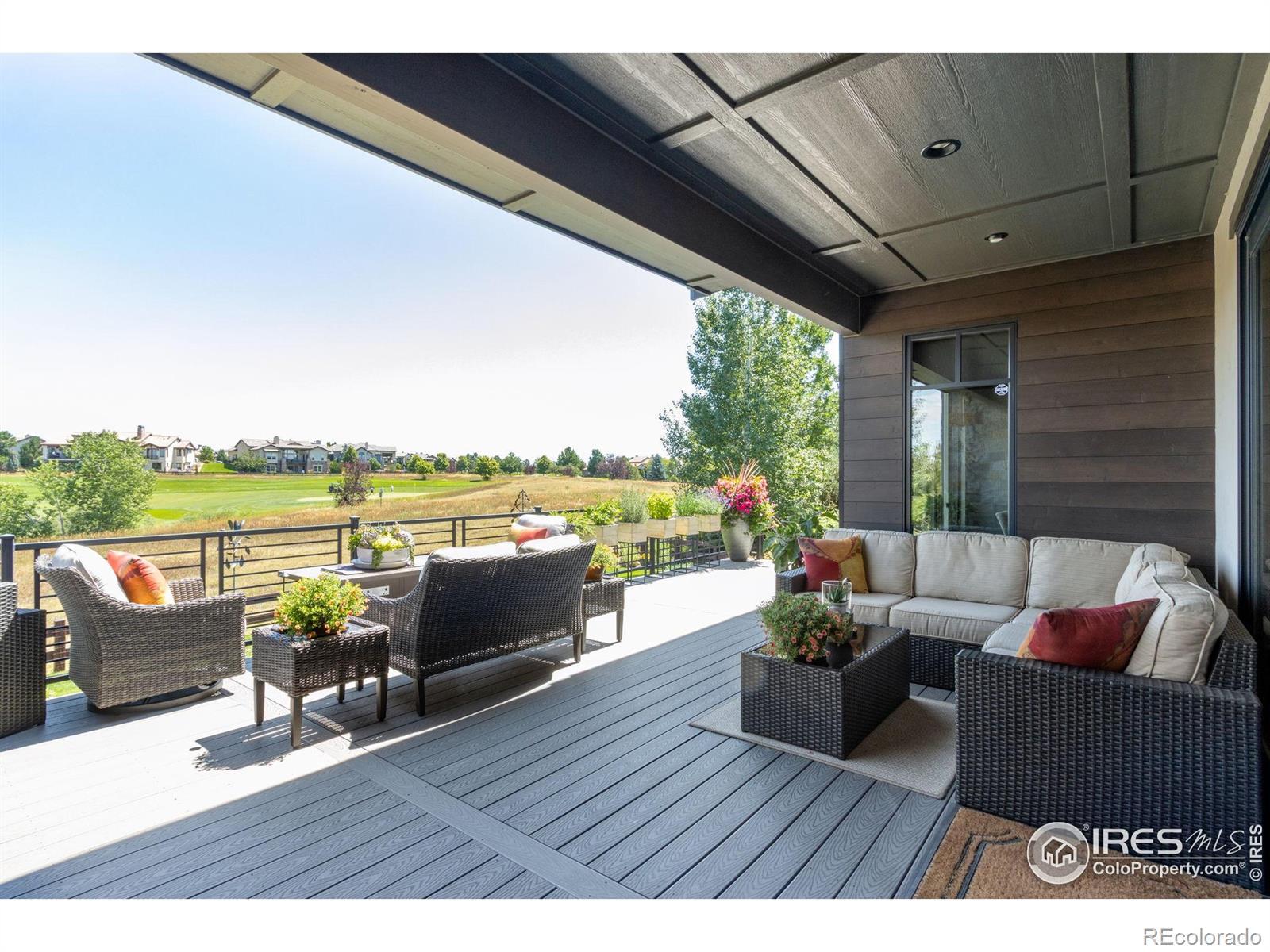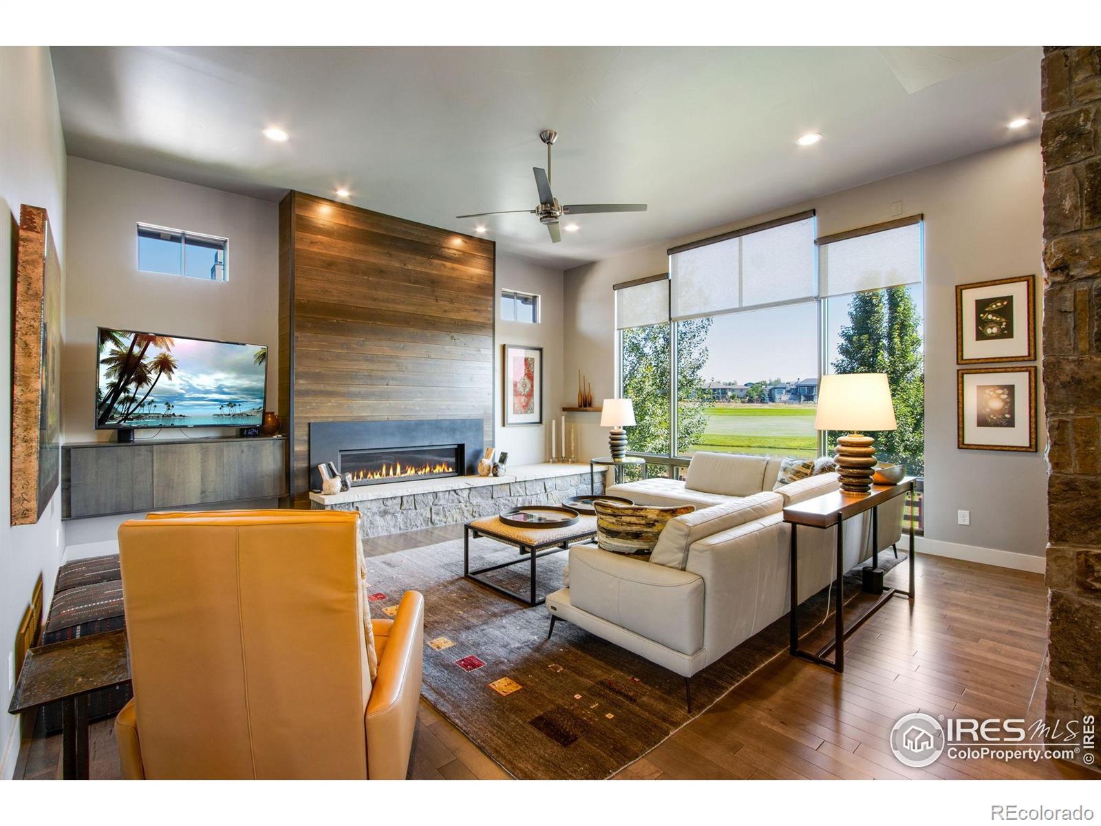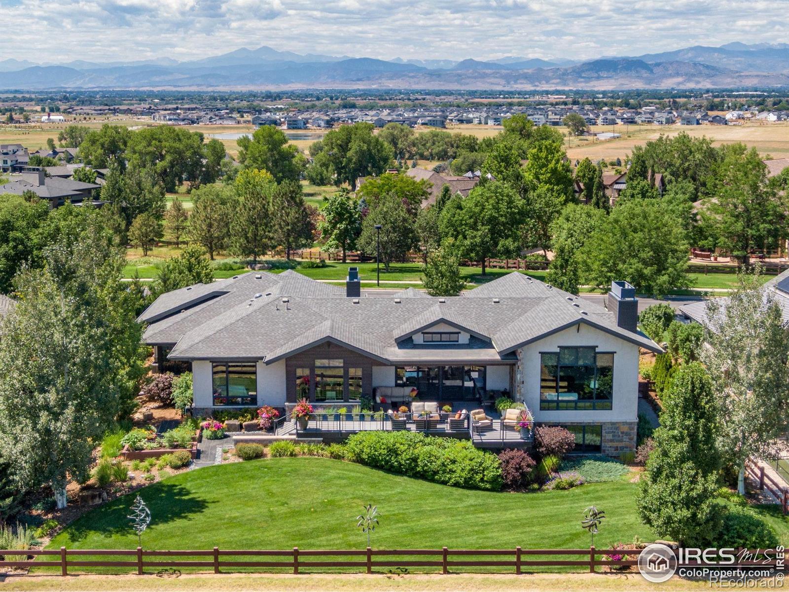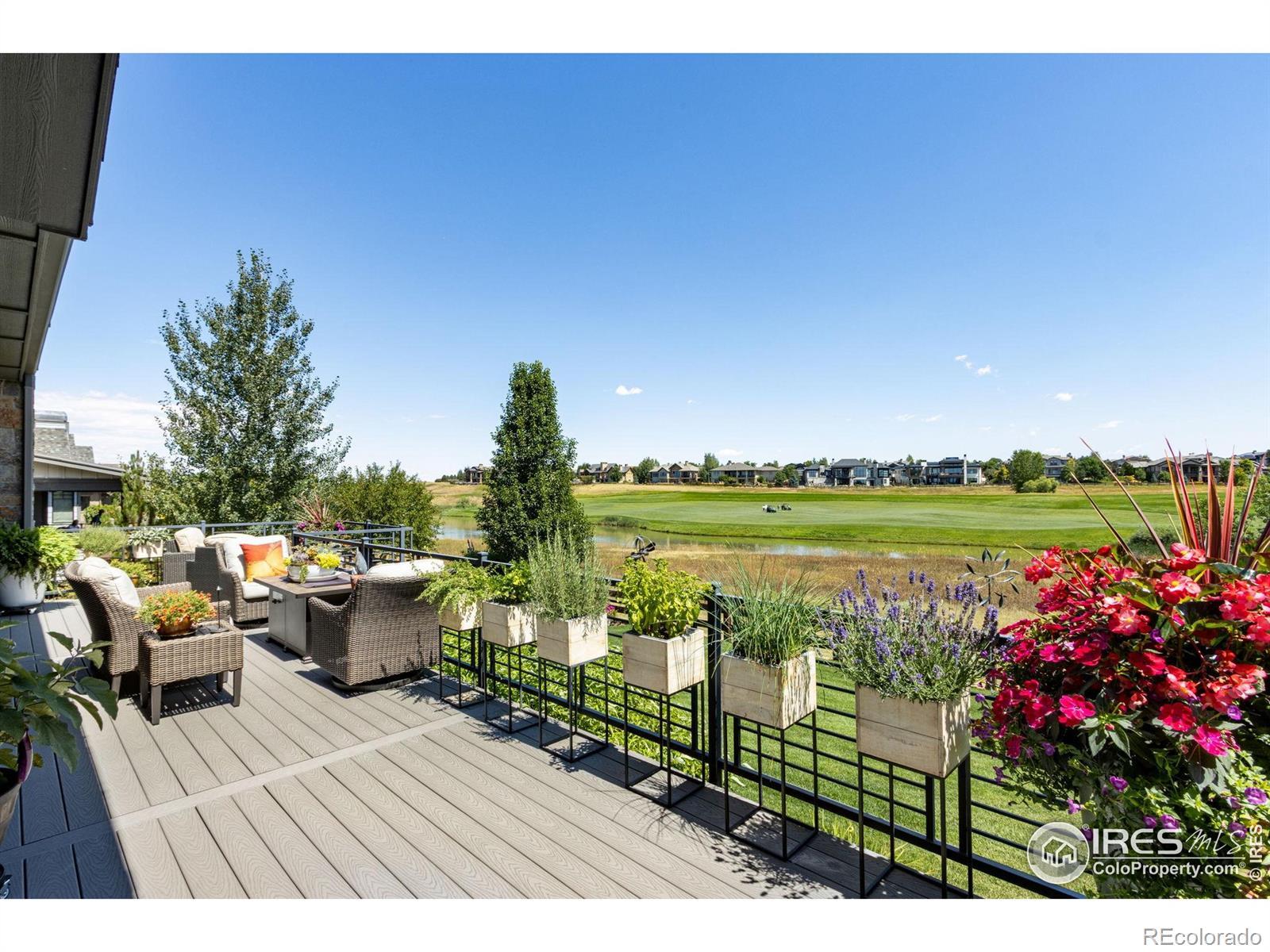 A Magnificent Contemporary Custom on a spectacular lot. Located on the golf course overlooking the Lake. Beautiful courtyard and covered decks. Through the front window is your Longs Peak mountain view. Courtyard includes water feature, fireplace and privacy. Watch the golfers and peaceful pond in the back overlooking green space. Custom features list is expansive. 2 wet bars, 4 beds plus study, oversized garage. An unmatched style of living!!!!!!