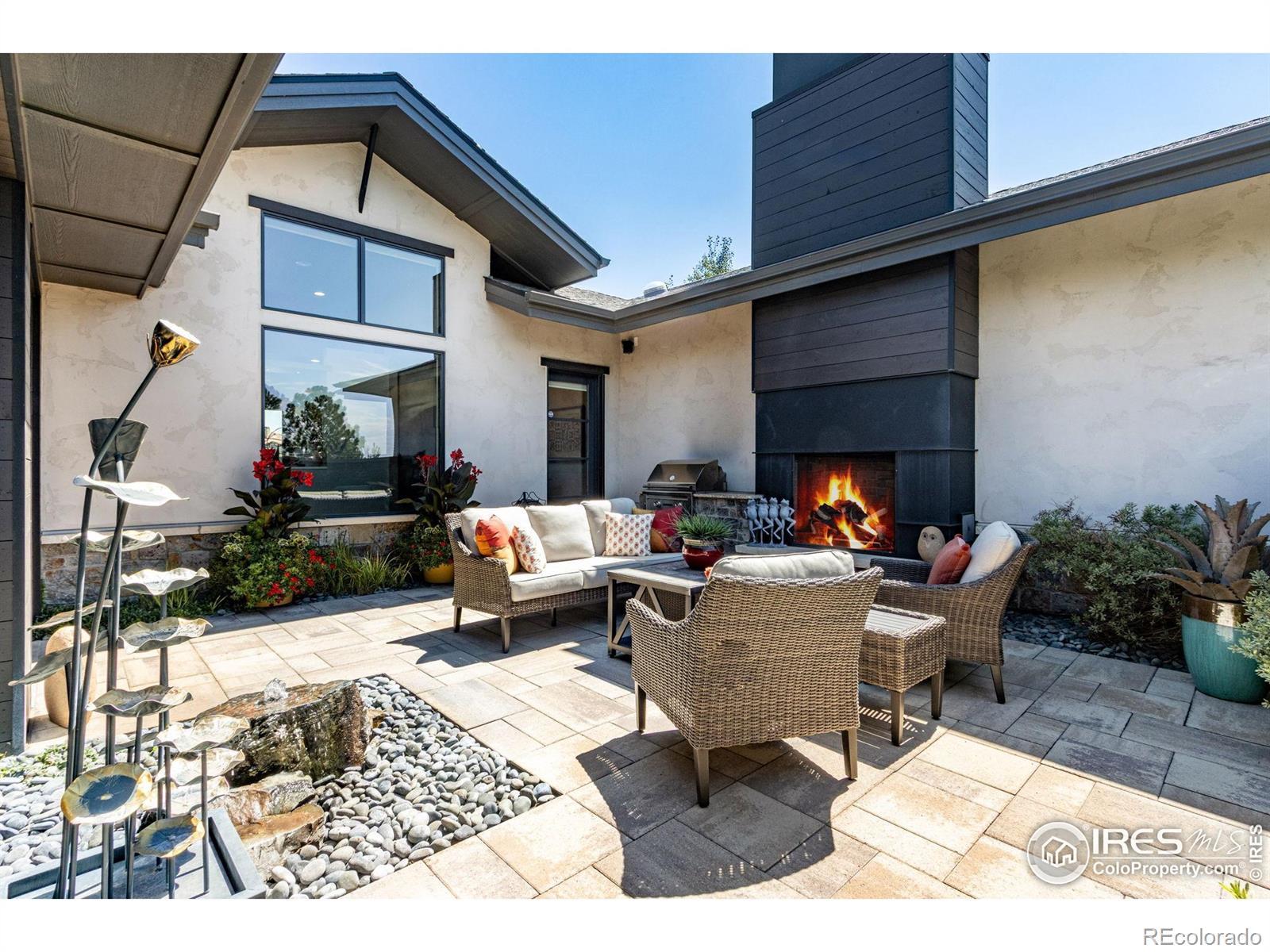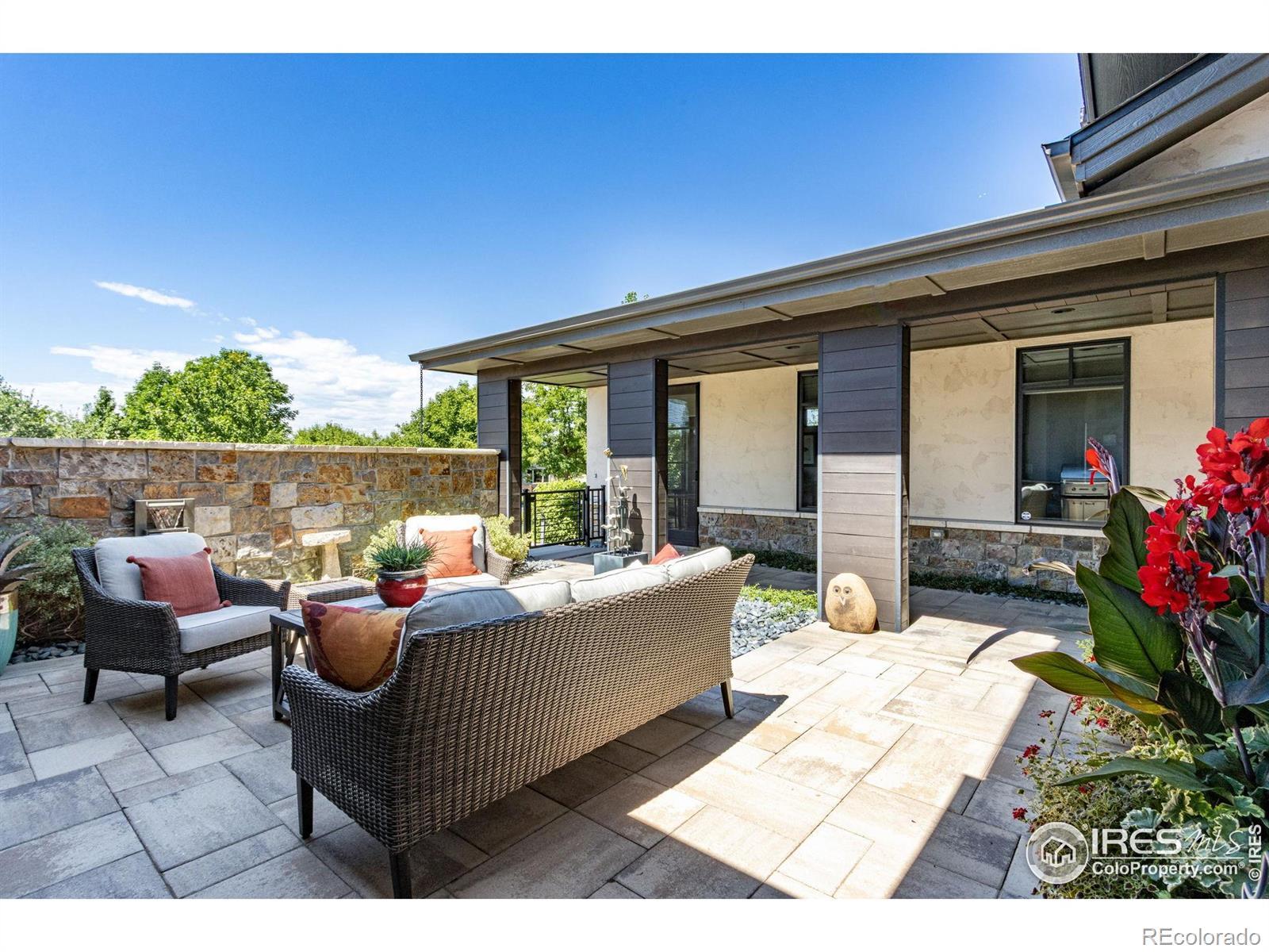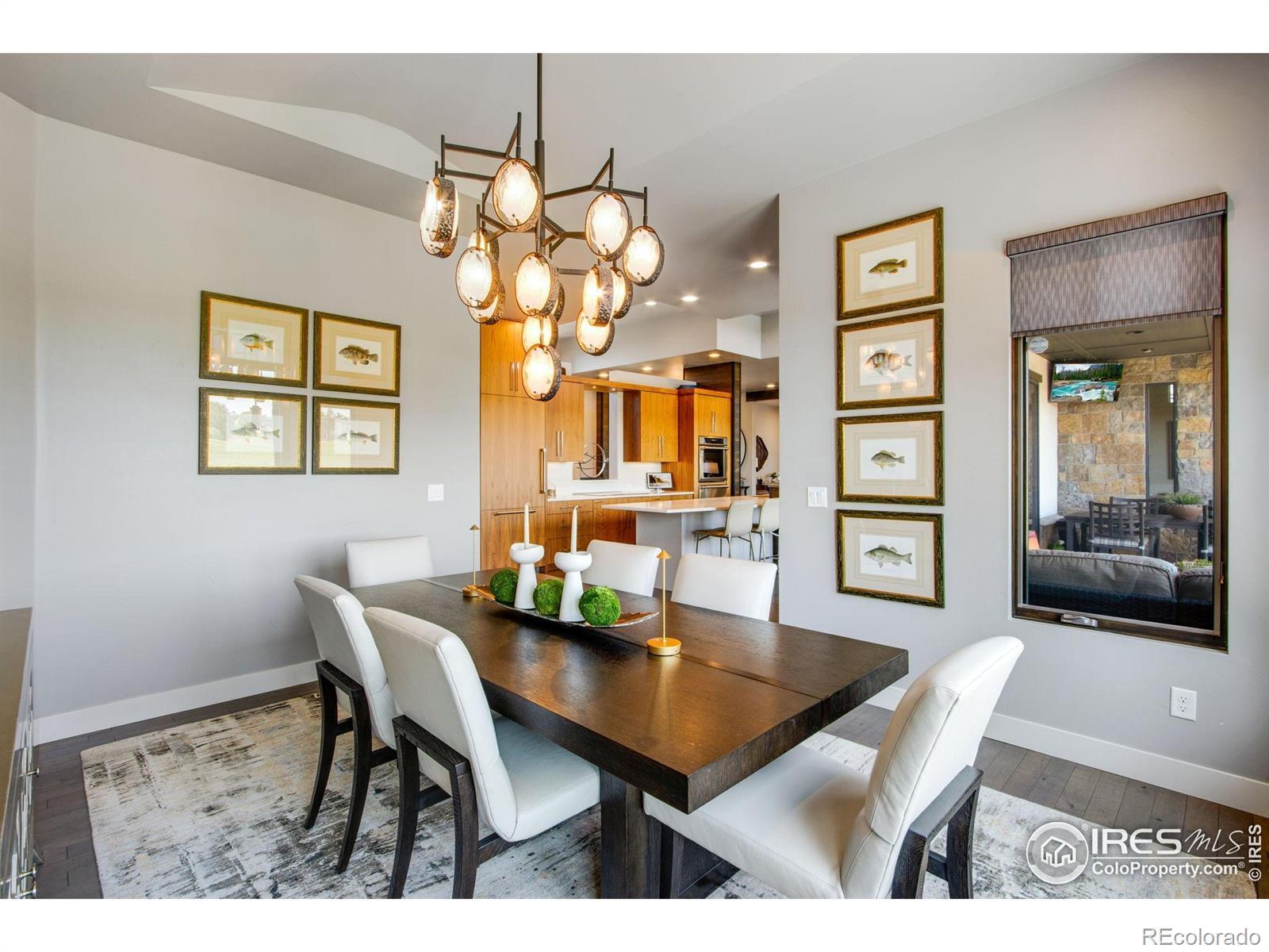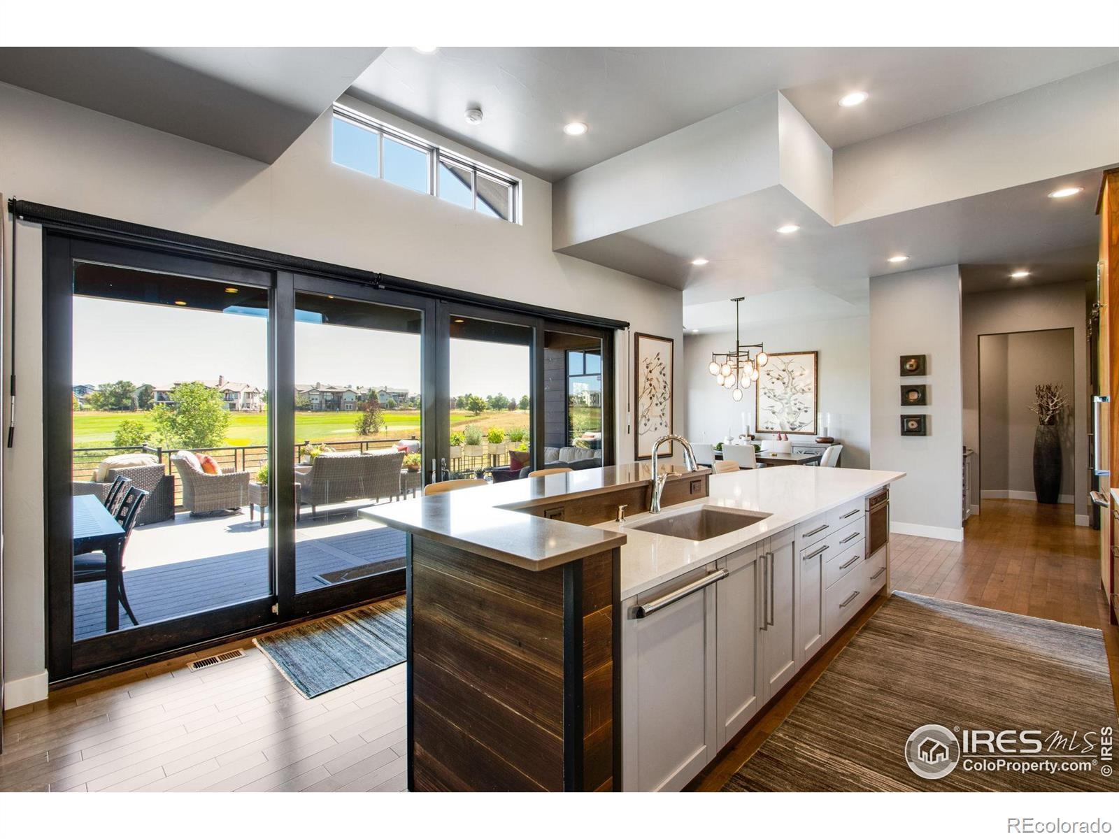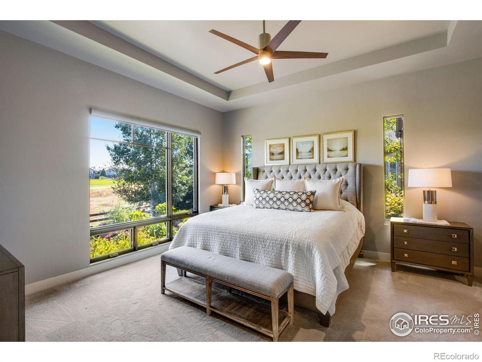 A Magnificent Contemporary Custom on a spectacular lot. Located on the golf course overlooking the Lake. Beautiful courtyard and covered decks. Through the front window is your Longs Peak mountain view. Courtyard includes water feature, fireplace and privacy. Watch the golfers and peaceful pond in the back overlooking green space. Custom features list is expansive. 2 wet bars, 4 beds plus study, oversized garage. An unmatched style of living!!!!!!