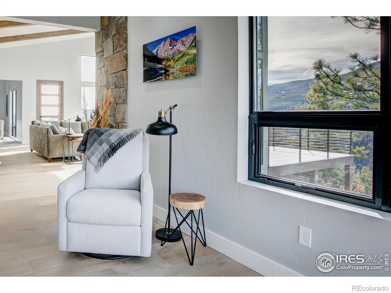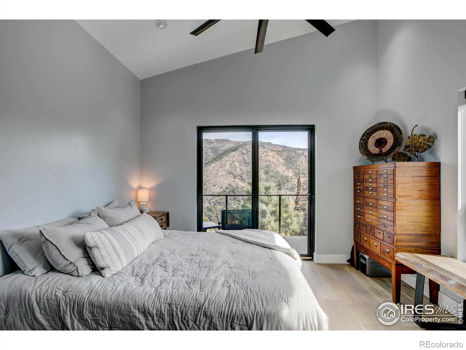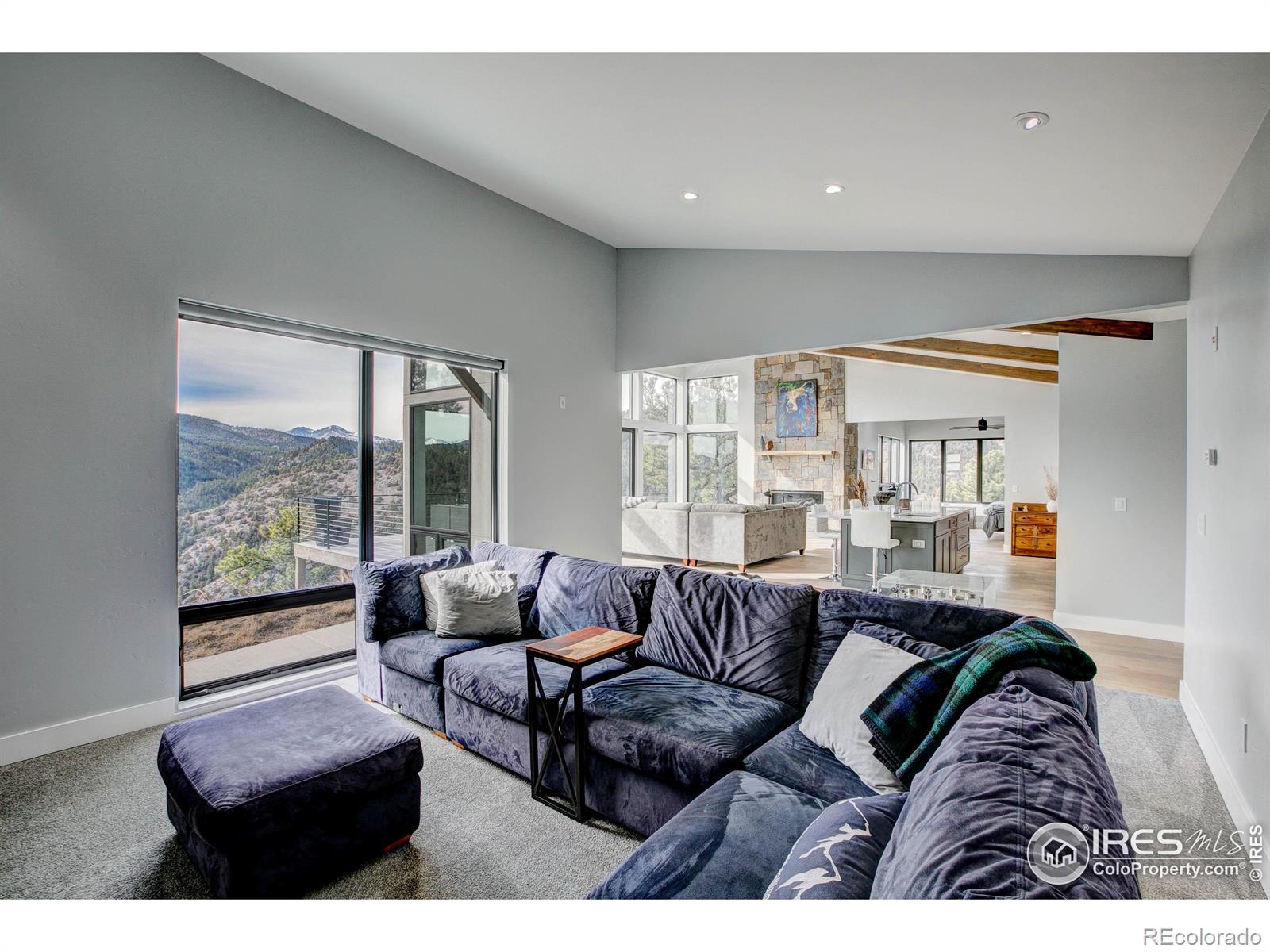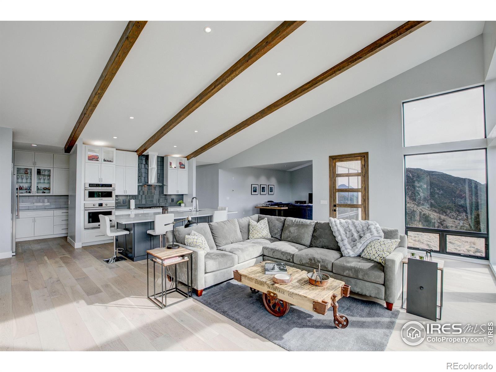 Modern Mountain Masterpiece 1068 Elkridge Drive. Perched on a private 6-acre lot in Glen Haven, this exceptional contemporary retreat offers a rare blend of luxury, sustainability, and breathtaking natural beauty. Designed to frame panoramic views of Longs Peak and Rocky Mountain National Park, this architectural gem is a true sanctuary in the mountains. Step inside to a light-filled open floor plan featuring soaring 16-foot ceilings with rustic wood beams and elegant White Oak hardwood floors. Expansive south-facing windows maximize passive solar efficiency, providing natural warmth in winter and cool comfort in summer. Floor-to-ceiling Pella windows showcase 360 sweeping views of rugged rock outcroppings, ancient pines, and surrounding peaks. Outdoor living is equally impressive with a spacious front deck, private rear patio with spa, and a balcony off the guest suite-perfect for relaxation and entertaining. The chef's kitchen offers luxury cabinetry, quartz countertops, premium appliances, and a large butler's pantry. The primary suite includes a generous walk-in closet with custom built-ins, while spa-inspired bathrooms feature custom tile and high-end fixtures. A dedicated laundry room with built-in workspace and energy-efficient LED lighting enhance everyday living. Superior mechanical systems include a 5-zone radiant heating system and tankless water heater. The impressive 4-car heated garage features an RV-height door, workshop space, and abundant attic storage. Additional highlights include a paved parking pad, advanced water treatment system, exterior stucco finish and low-maintenance natural landscaping. Located minutes from Roosevelt National Forest and Rocky Mountain National Park trailheads, this remarkable property offers unmatched access to Colorado's wilderness while delivering modern luxury and comfort. Situated in the quiet community of Glen Haven Colorado, 15 minutes from Estes Park and Rocky Mountain National Park