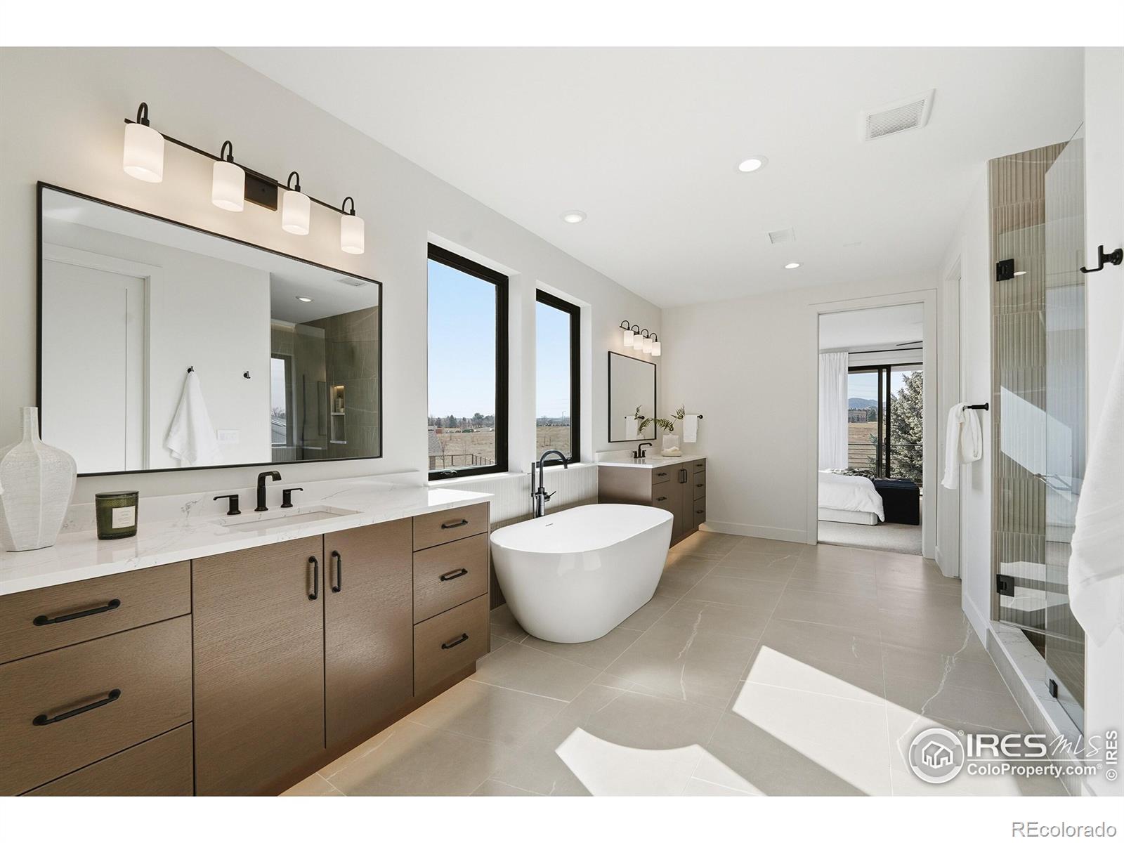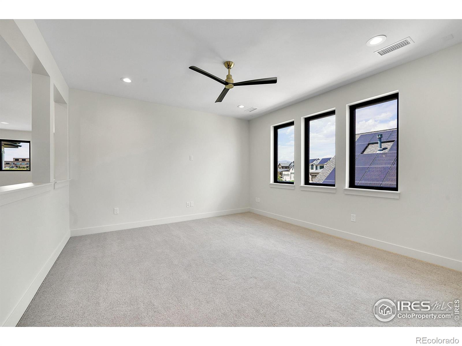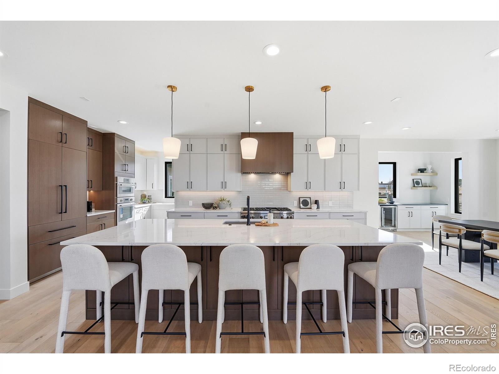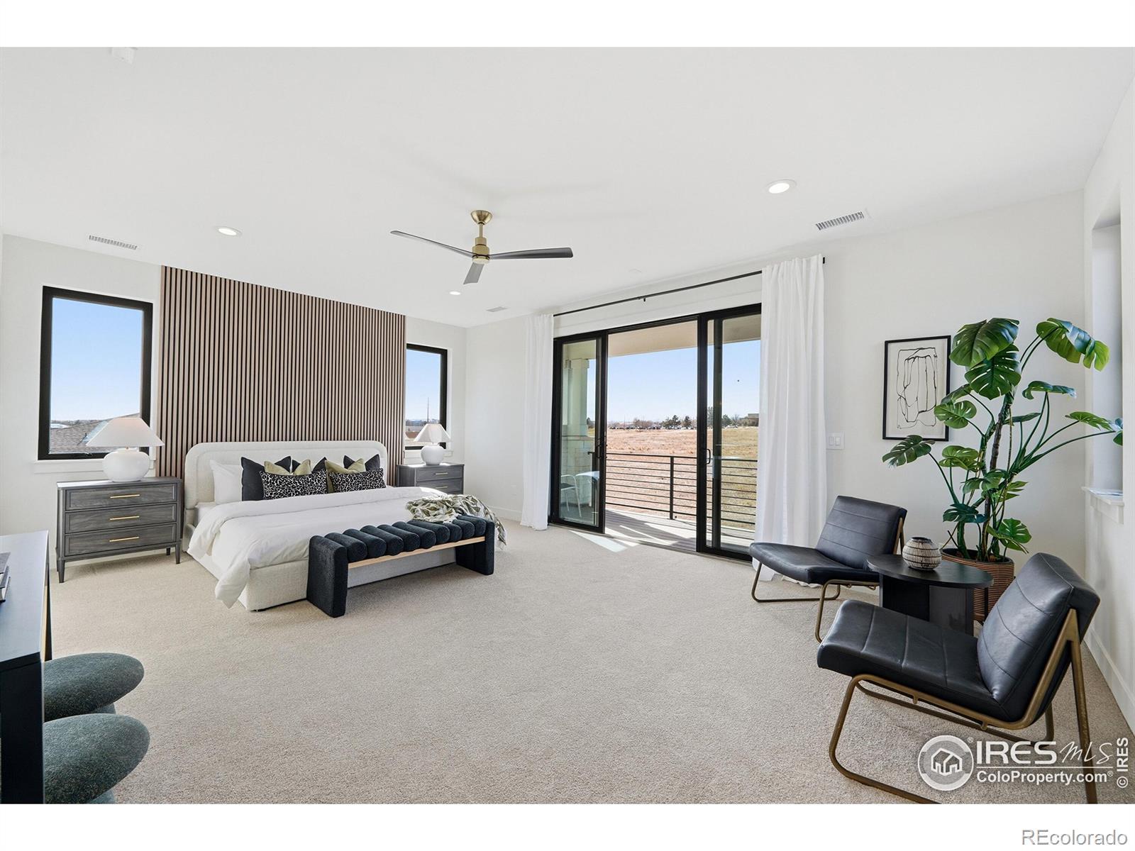 Entertainer's delight perched on a premier .25-acre lot in the coveted Coal Creek Ranch golf course community, this exceptional custom-built home offers refined luxury, thoughtful design, open space and views of the Flatirons. A dramatic 20-foot ceiling welcomes you into the expansive great room, highlighted by a premium 60" linear fireplace usable year-round and a stunning custom staircase. A 16-foot sliding door opens to an oversized covered patio, creating seamless indoor-outdoor living ideal for entertaining. The gourmet kitchen features a supersized island, floor-to-ceiling painted cherry and rift oak cabinetry, and Smart Thermador appliances including an integrated refrigerator/freezer, 48" gas range w/ griddle and 4 ovens. A prep kitchen with a 2nd sink and dishwasher, butler's pantry, and dedicated serving area ensure effortless hosting and seamless flow to the dining space. The main floor study and 5th bedroom could also be used as a multi-gen space. Upstairs, the luxurious primary suite offers a private southwest-facing balcony and a spa-inspired bath with a freestanding soaking tub, dual-head walk-in shower, and two walk-in closets. Four additional ensuite bedrooms provide privacy and comfort for family and guests. Built for efficiency and longevity, the home includes dual Lennox HVAC systems, dual tankless water heaters, interior wall and floor soundproofing, insulated concrete basement floor, Andersen Low-E and HeatLock casement windows and doors, a fire-hardened stone and James Hardie exterior, and a Class IV impact-resistant roof. Two insulated, finished garages include a 24.5-foot-deep bay with a 10-foot-high door for a Sprinter or RV. Both offer 220V outlets and 600 amp service. Enjoy proximity to Coal Creek Golf Course, open space trails, neighborhood pool and tennis courts, the Relish Pickleball Club, Harper Lake, and Downtown Louisville, with easy access to Boulder and Denver. Louisville has been voted the #1 City in the US by Forbes many times!